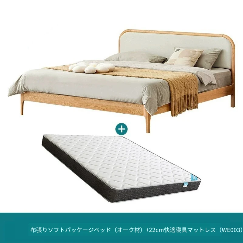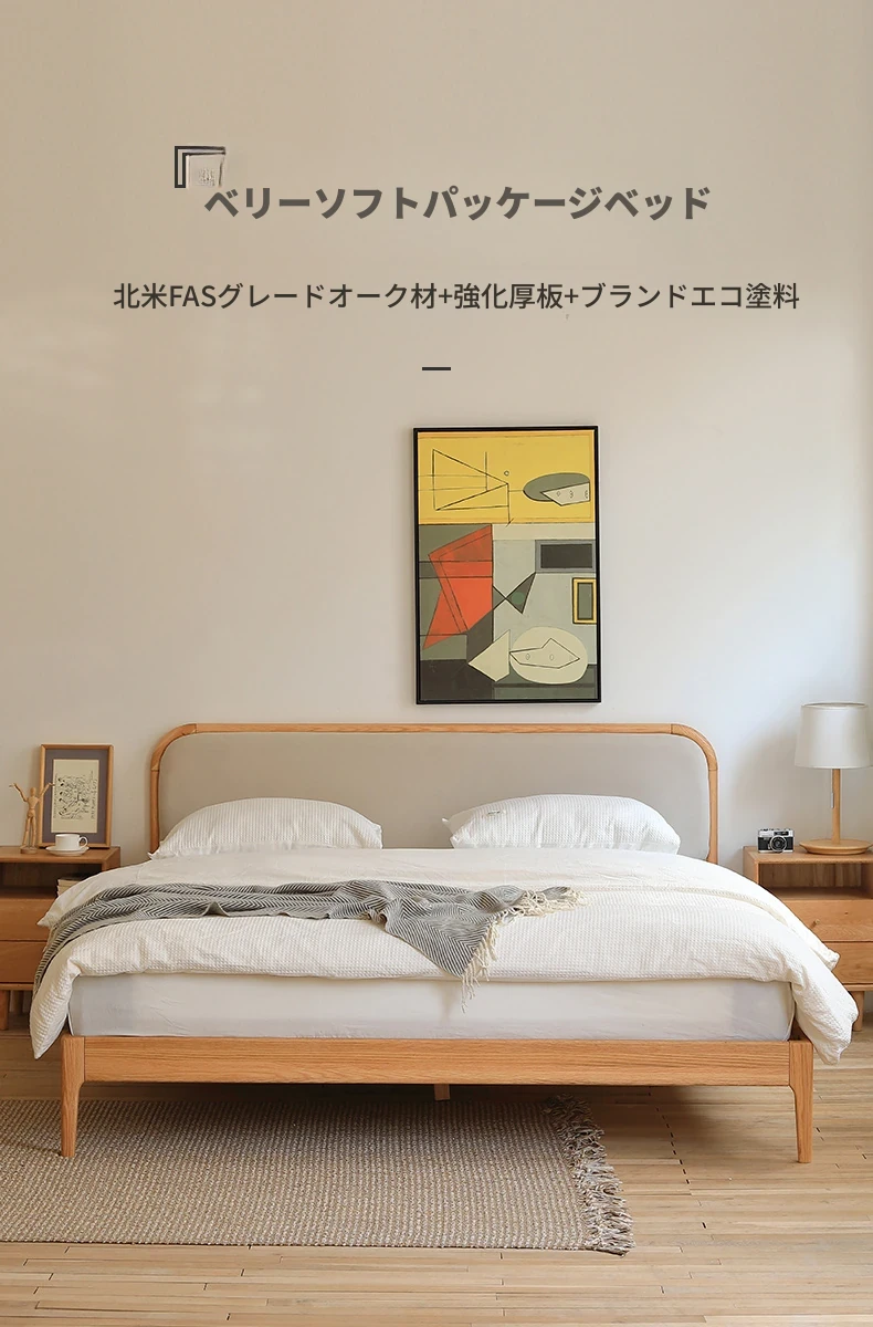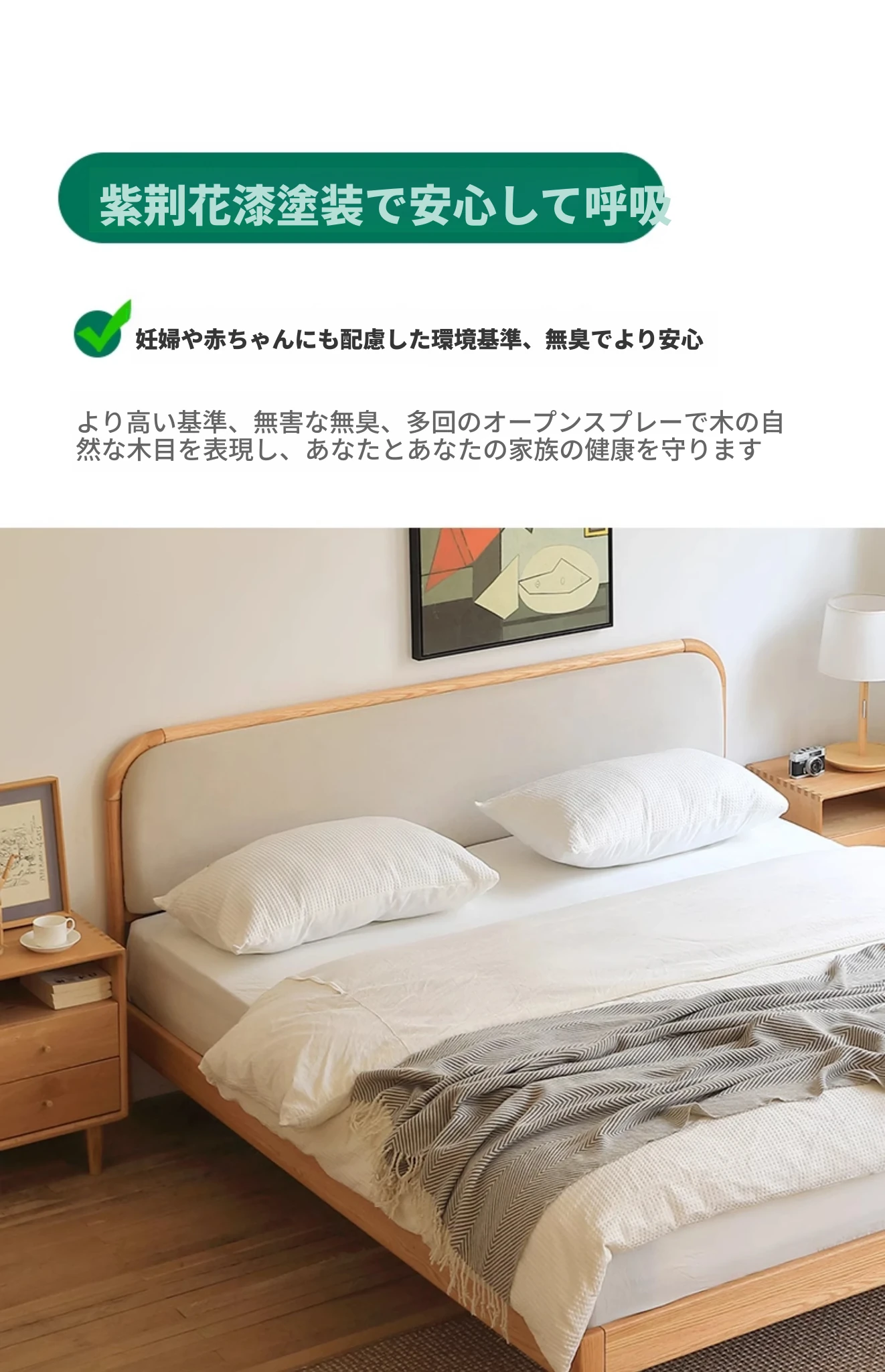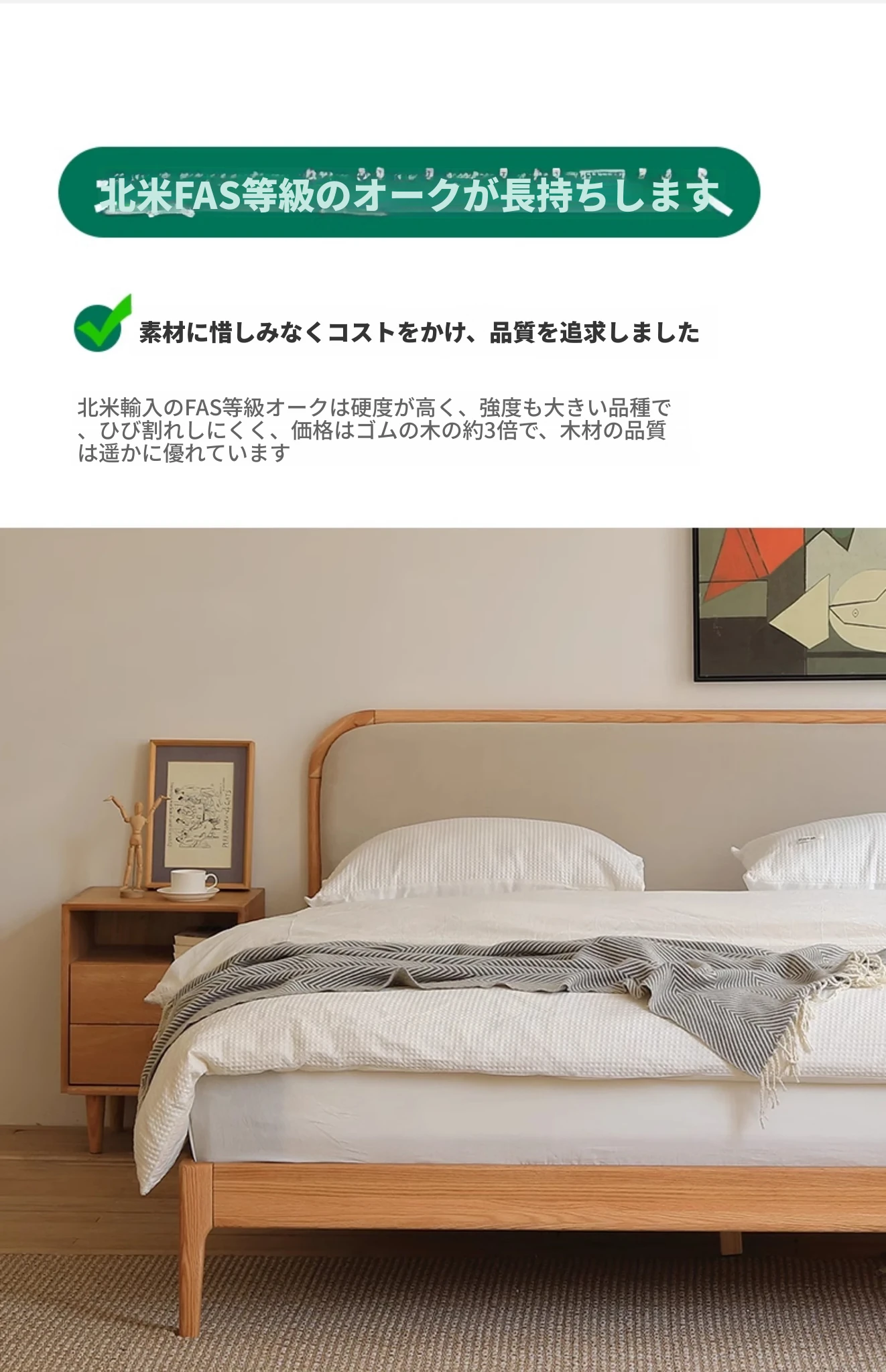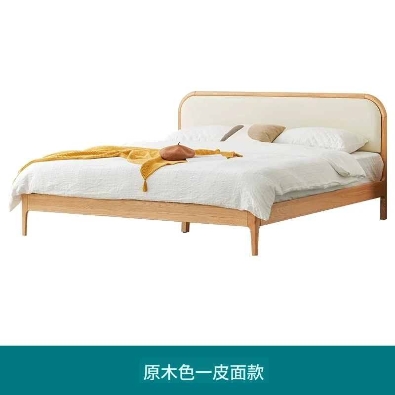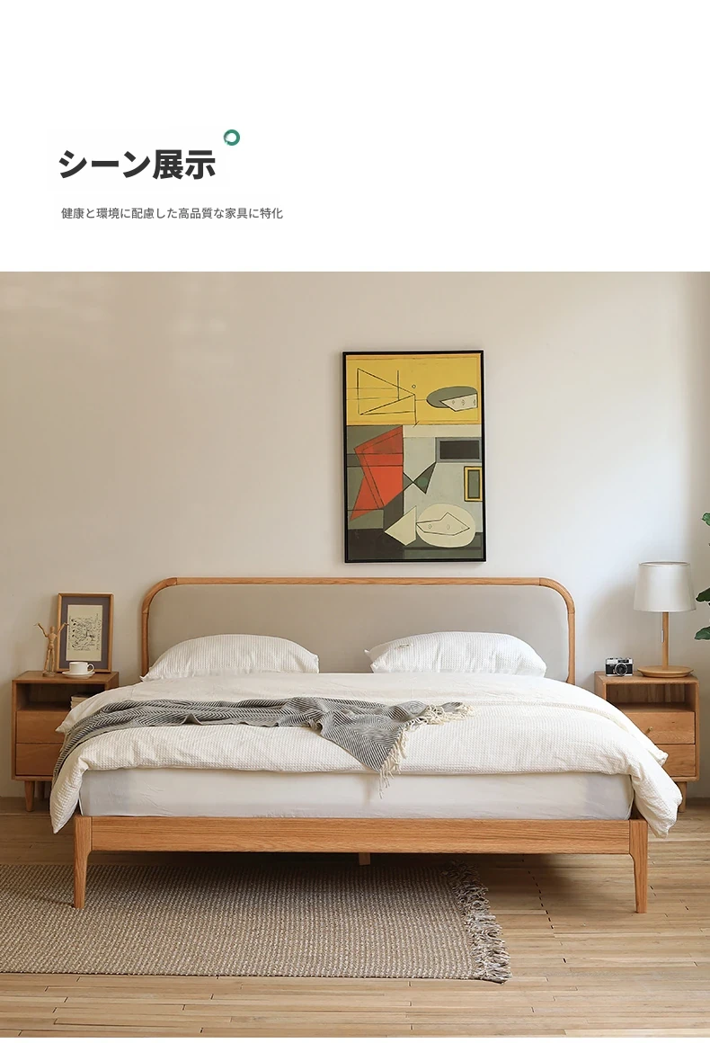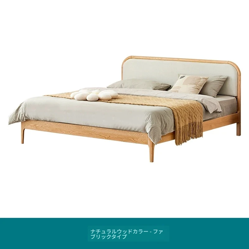 北欧風の無垢材ベッド - 1.5m・1.8mのダブルサイズ、大人のためのソフトパッケージベッド。シンプルでスタイリッシュなデザイン、ナチュラルオーク素材を使用した日本の原木スタイルの寝室用ベッド。心地よい眠りを提供します!