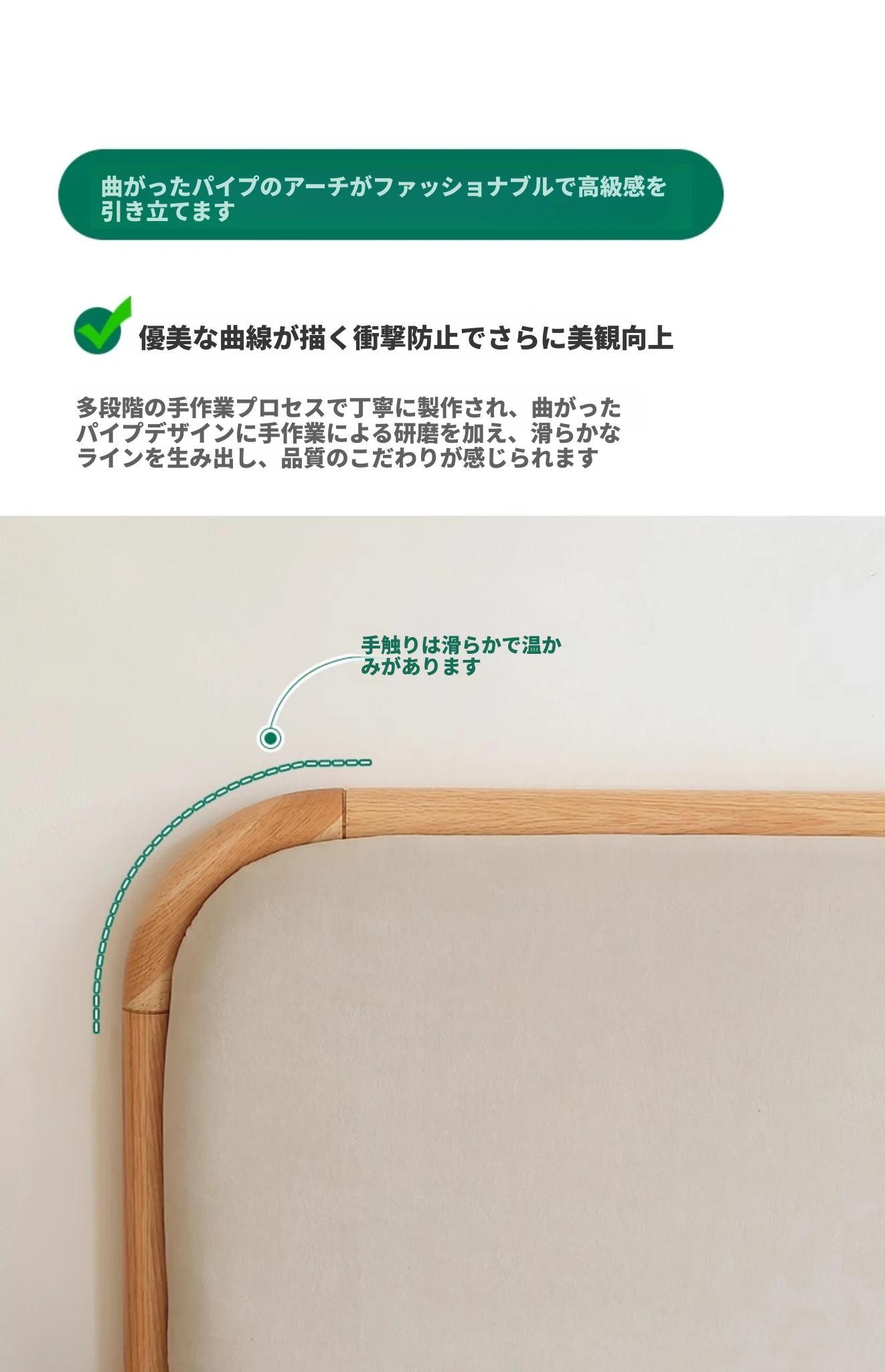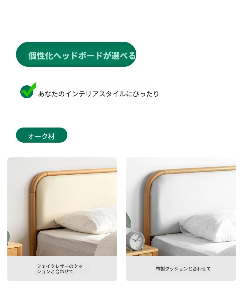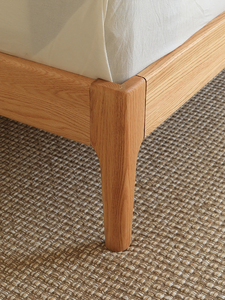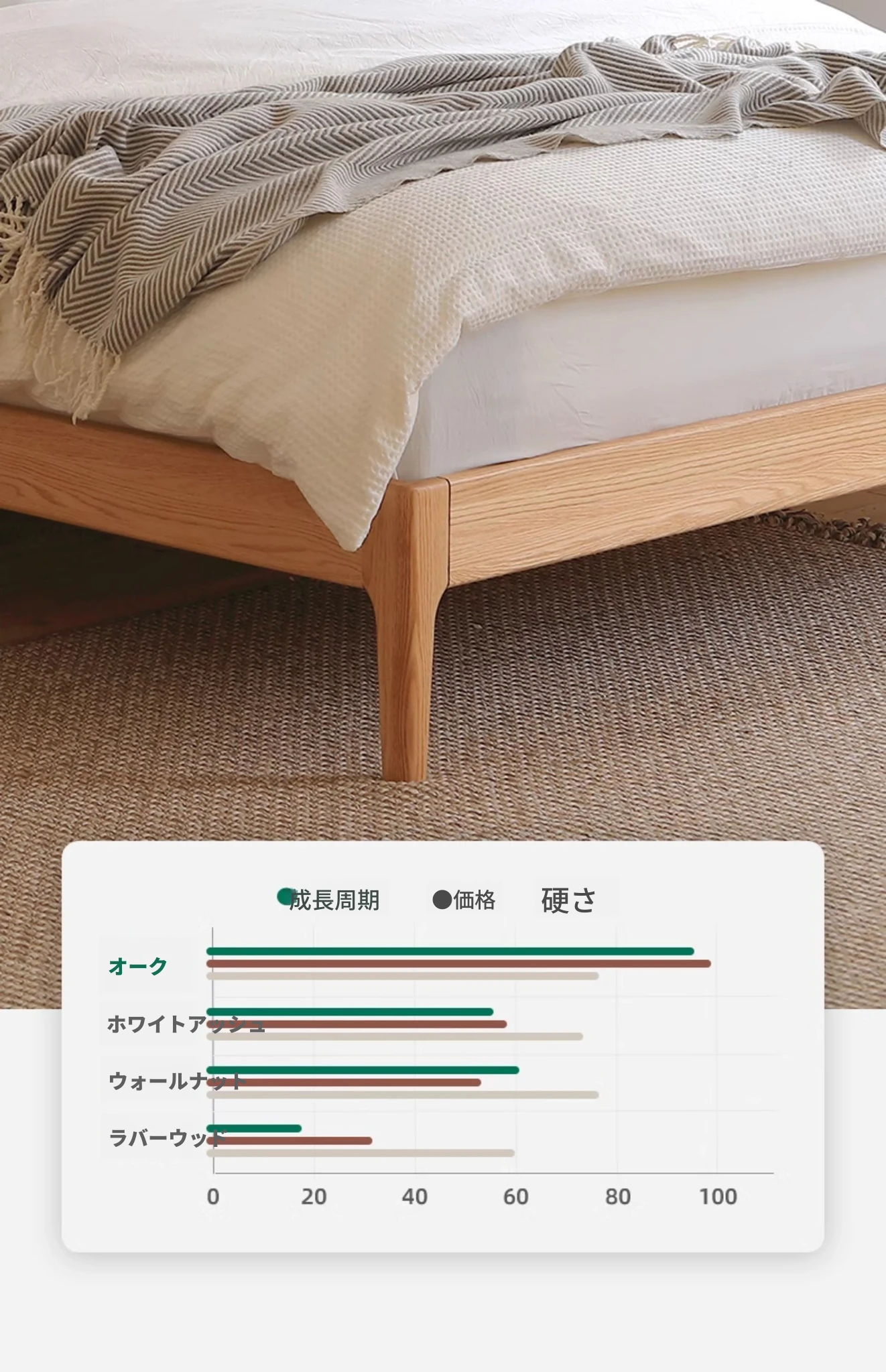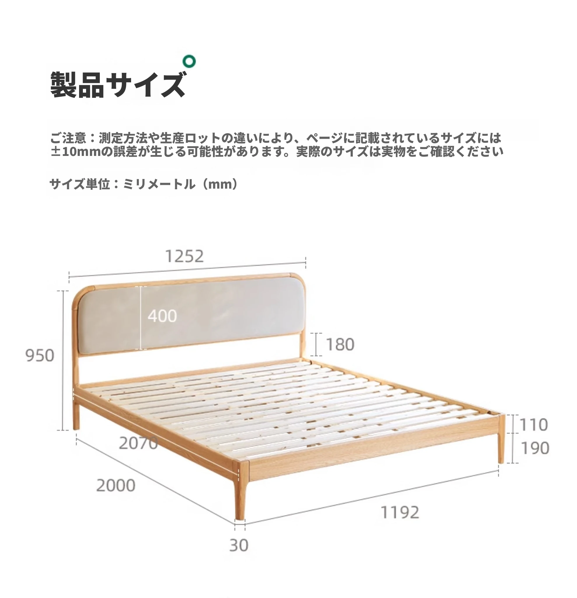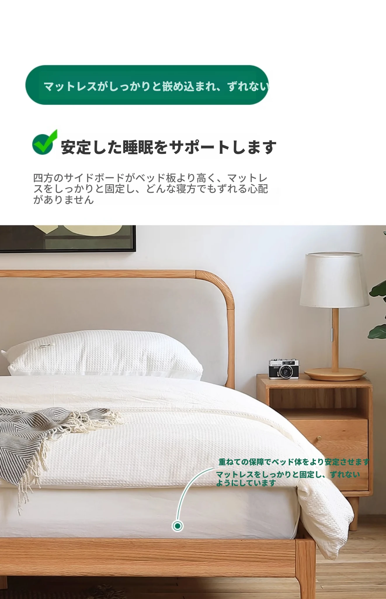 北欧風の無垢材ベッド - 1.5m・1.8mのダブルサイズ、大人のためのソフトパッケージベッド。シンプルでスタイリッシュなデザイン、ナチュラルオーク素材を使用した日本の原木スタイルの寝室用ベッド。心地よい眠りを提供します!