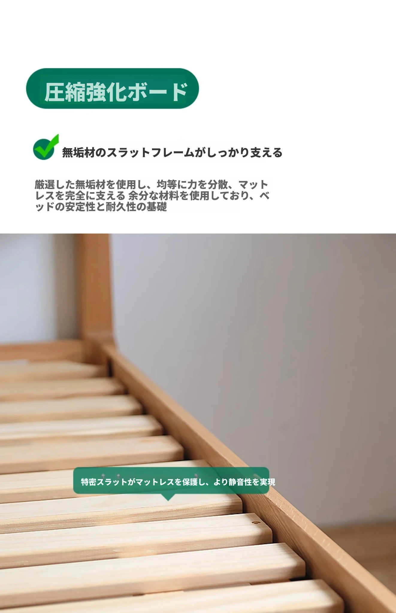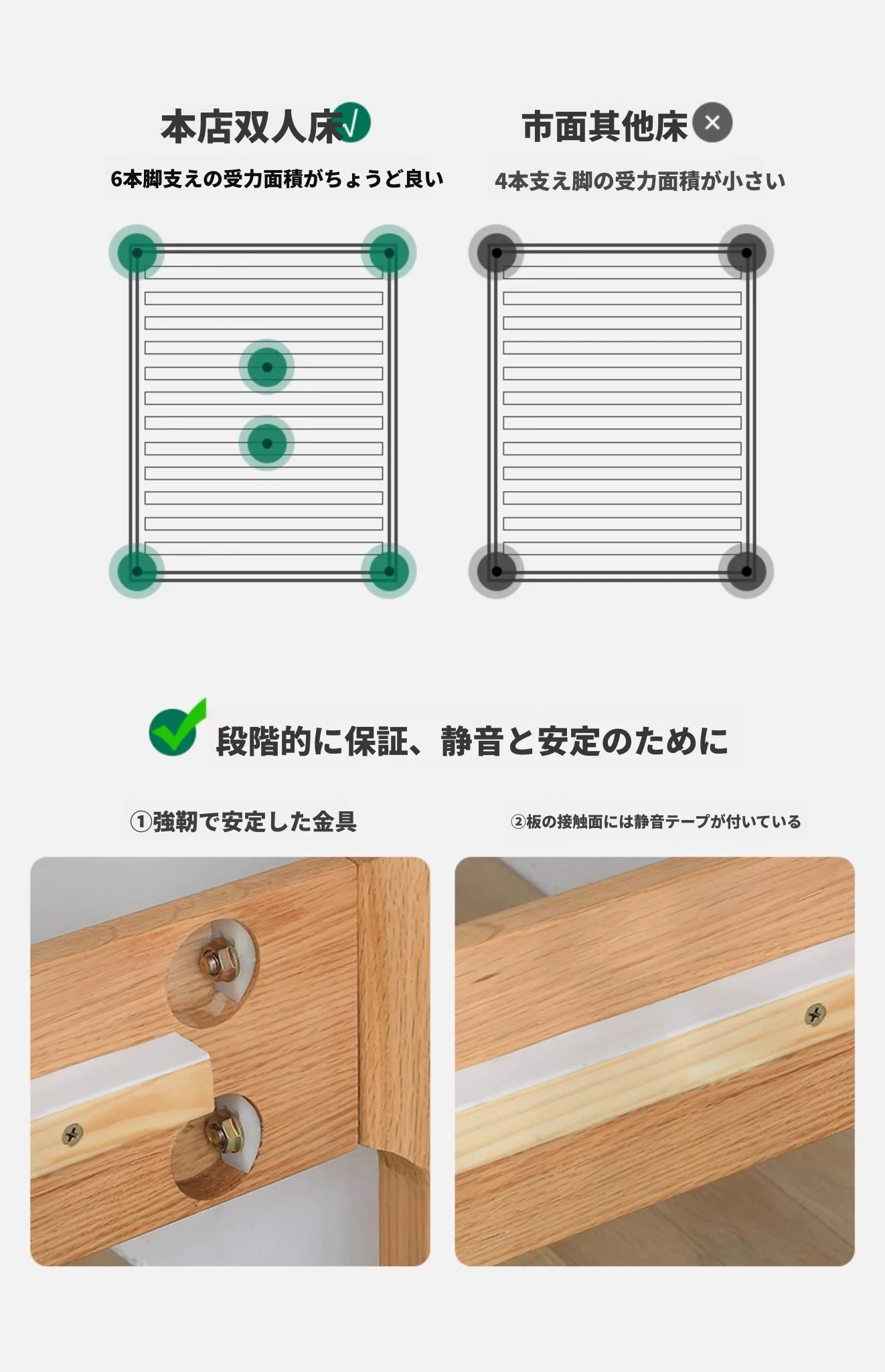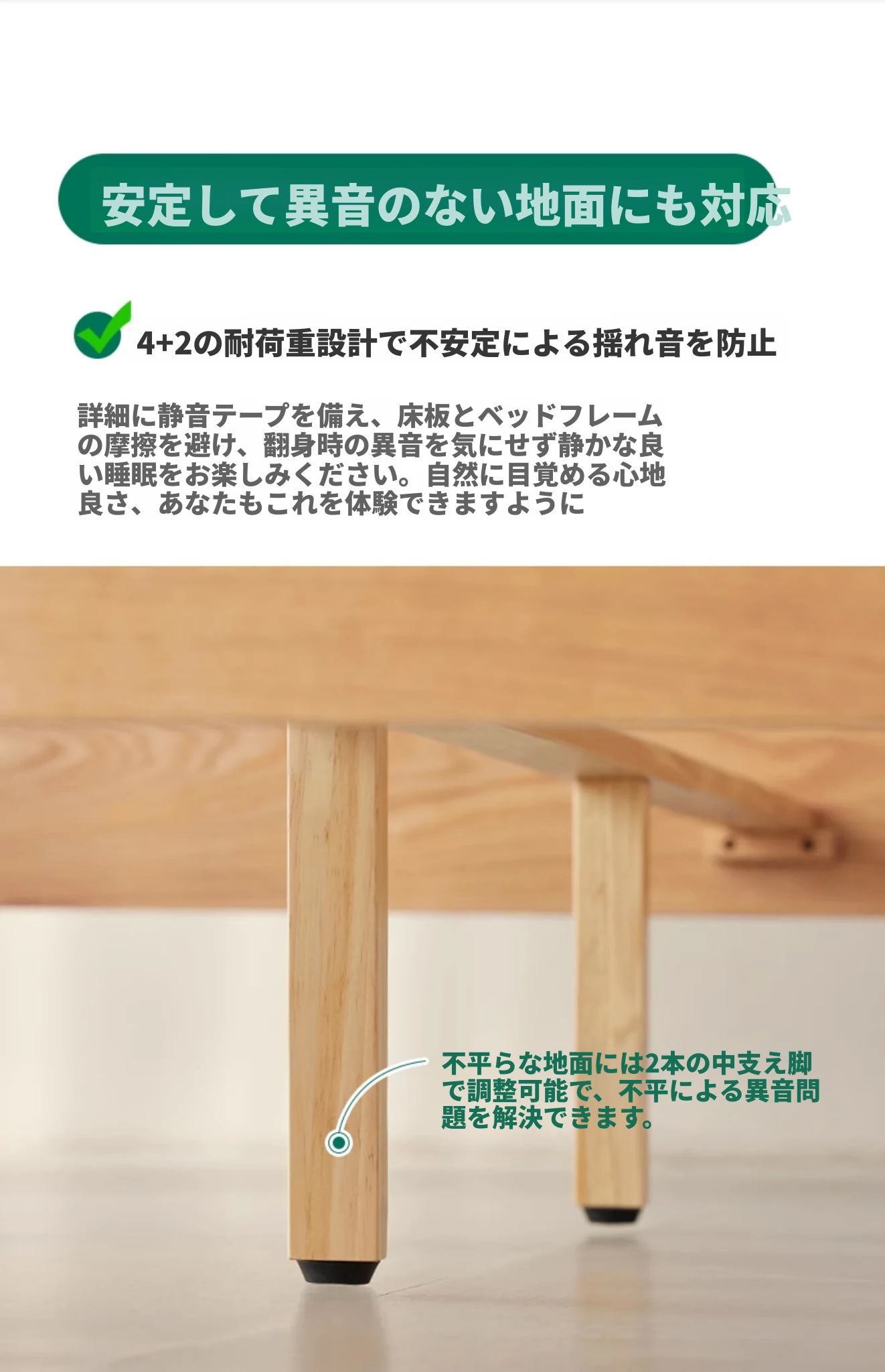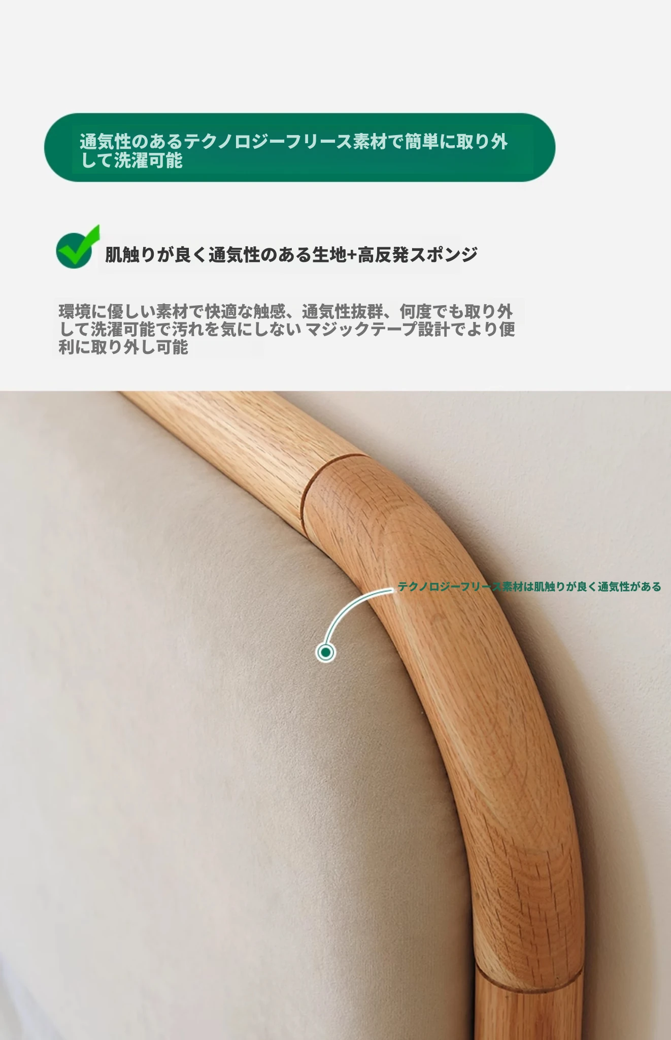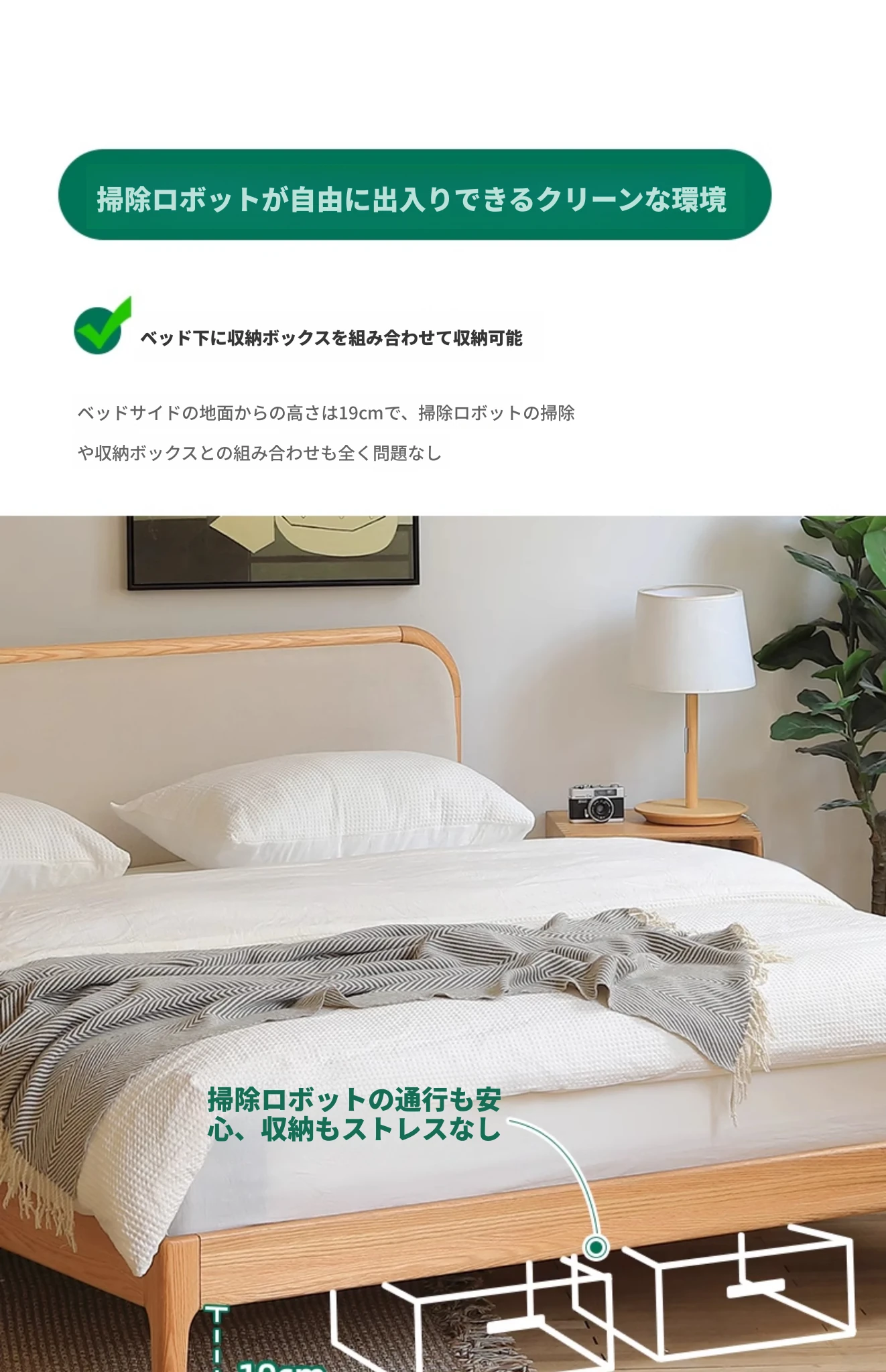 北欧風の無垢材ベッド - 1.5m・1.8mのダブルサイズ、大人のためのソフトパッケージベッド。シンプルでスタイリッシュなデザイン、ナチュラルオーク素材を使用した日本の原木スタイルの寝室用ベッド。心地よい眠りを提供します!