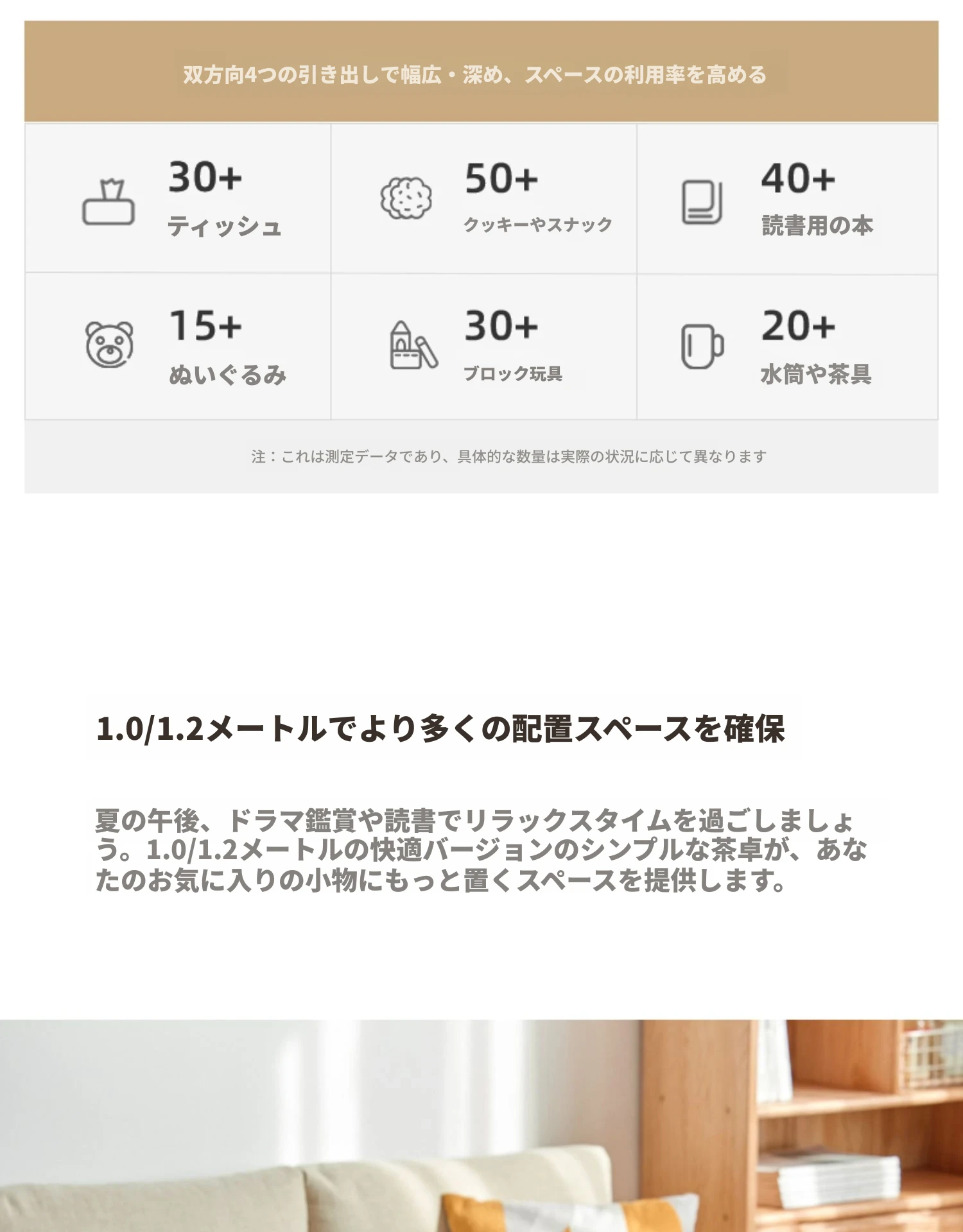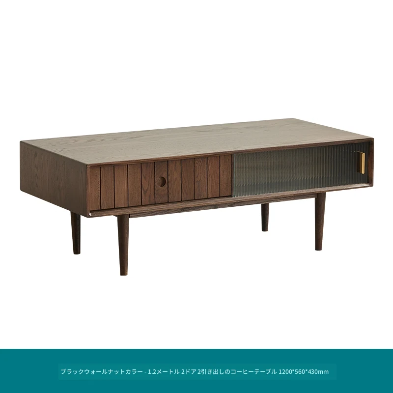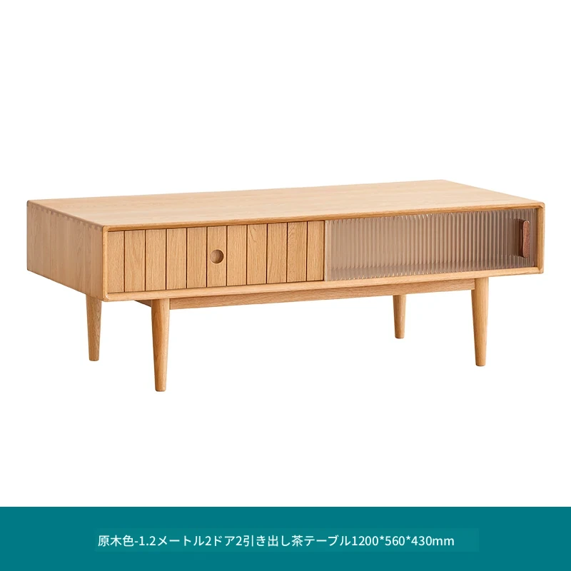 原木色-1.2メートルのコーヒーテーブル2ドア2引き出し 1200*560*430mm