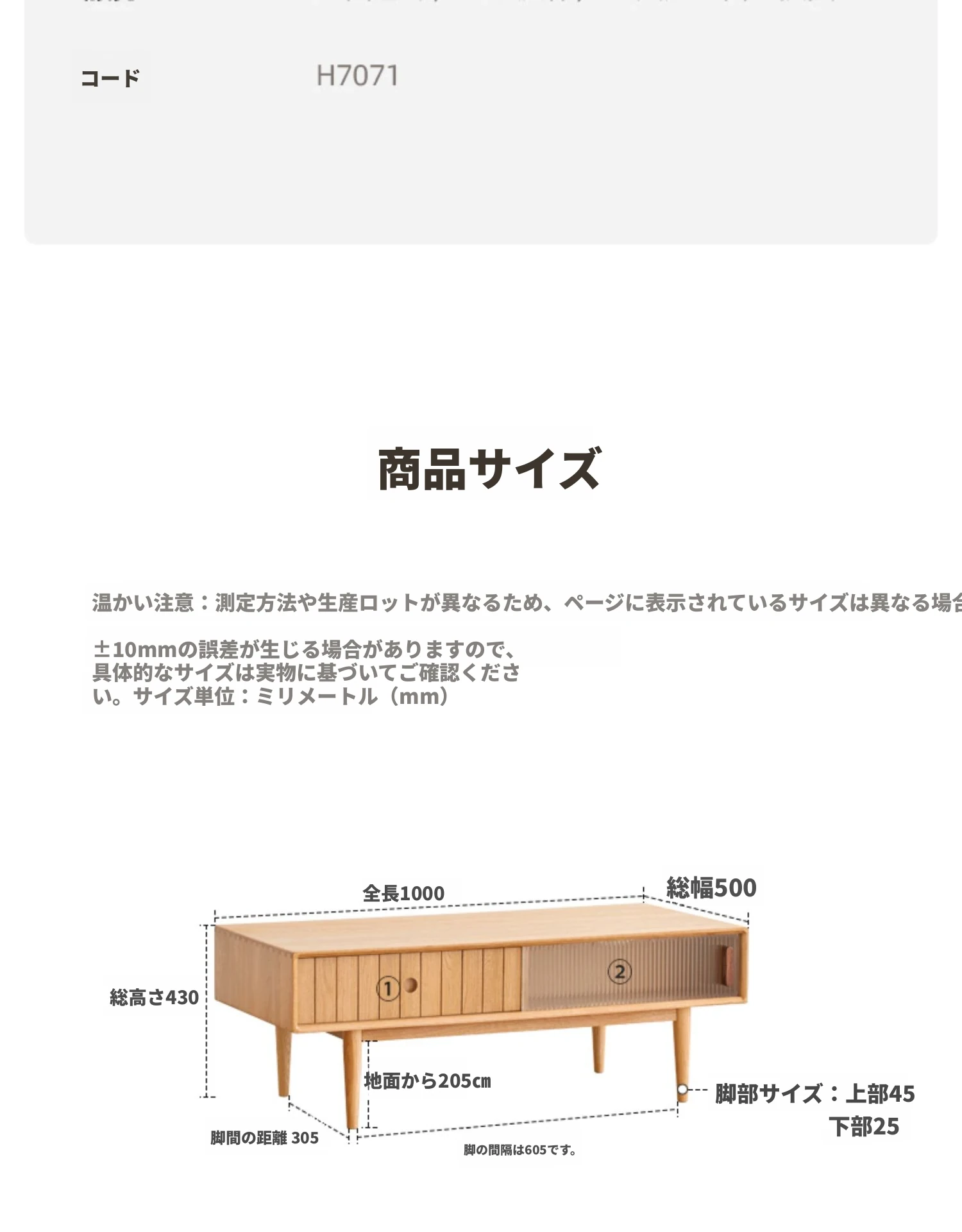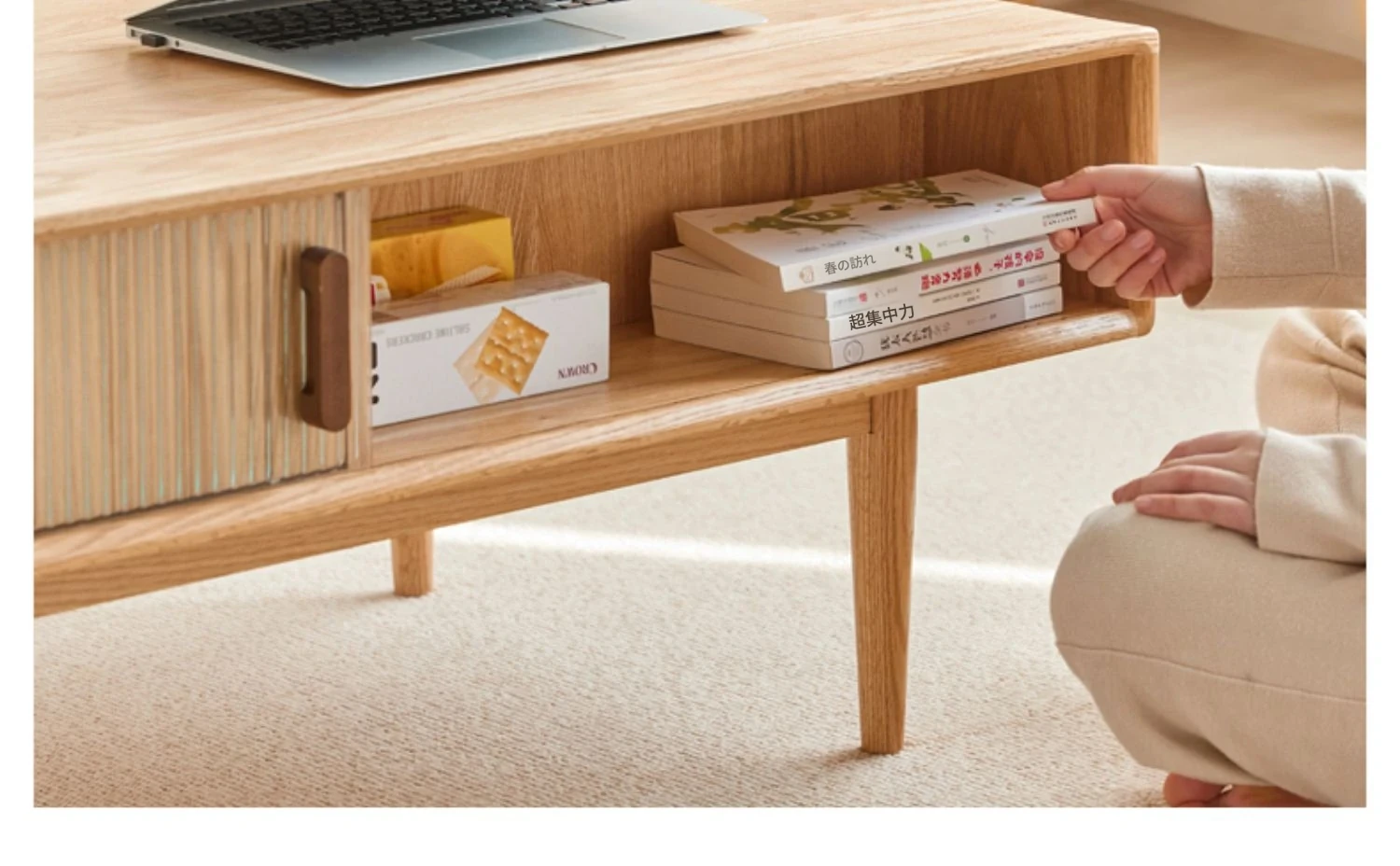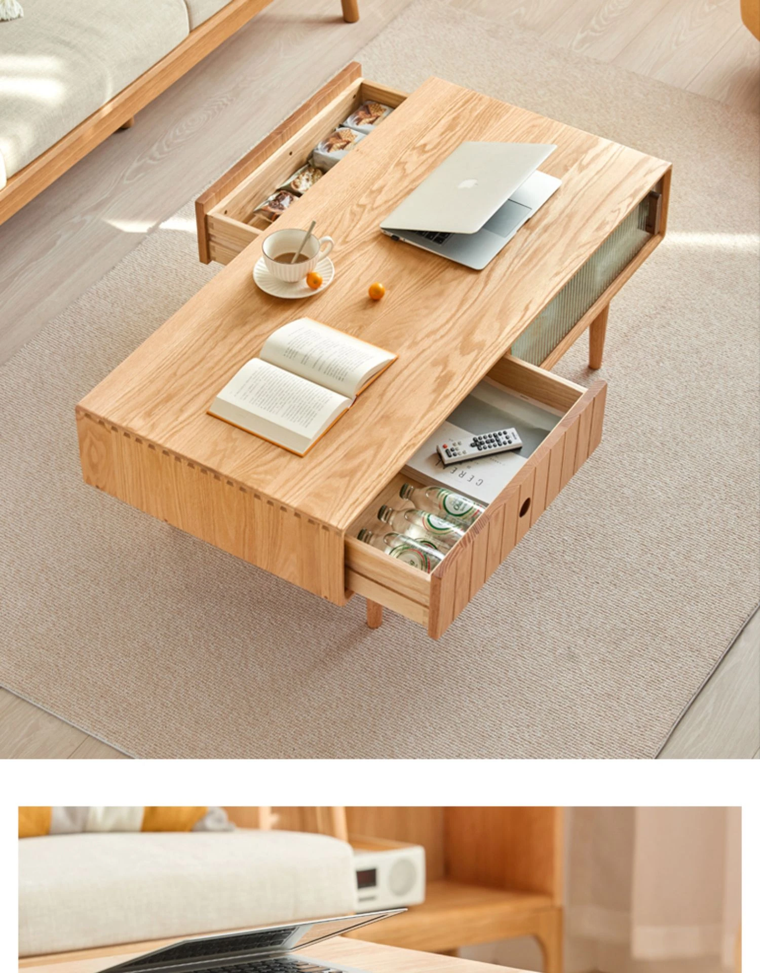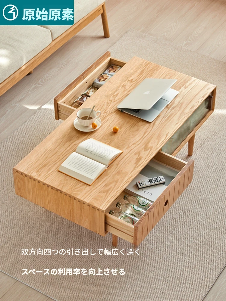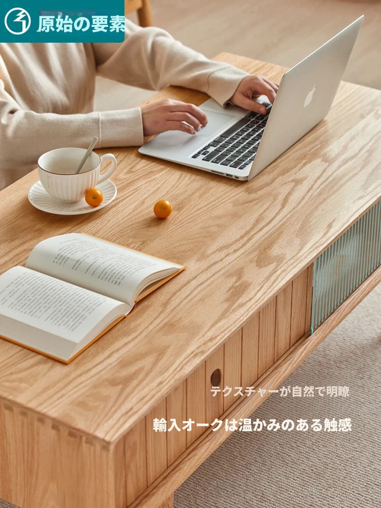 原木色-1.0メートルのコーヒーテーブル2ドア2引き出し 1000*500*430mm