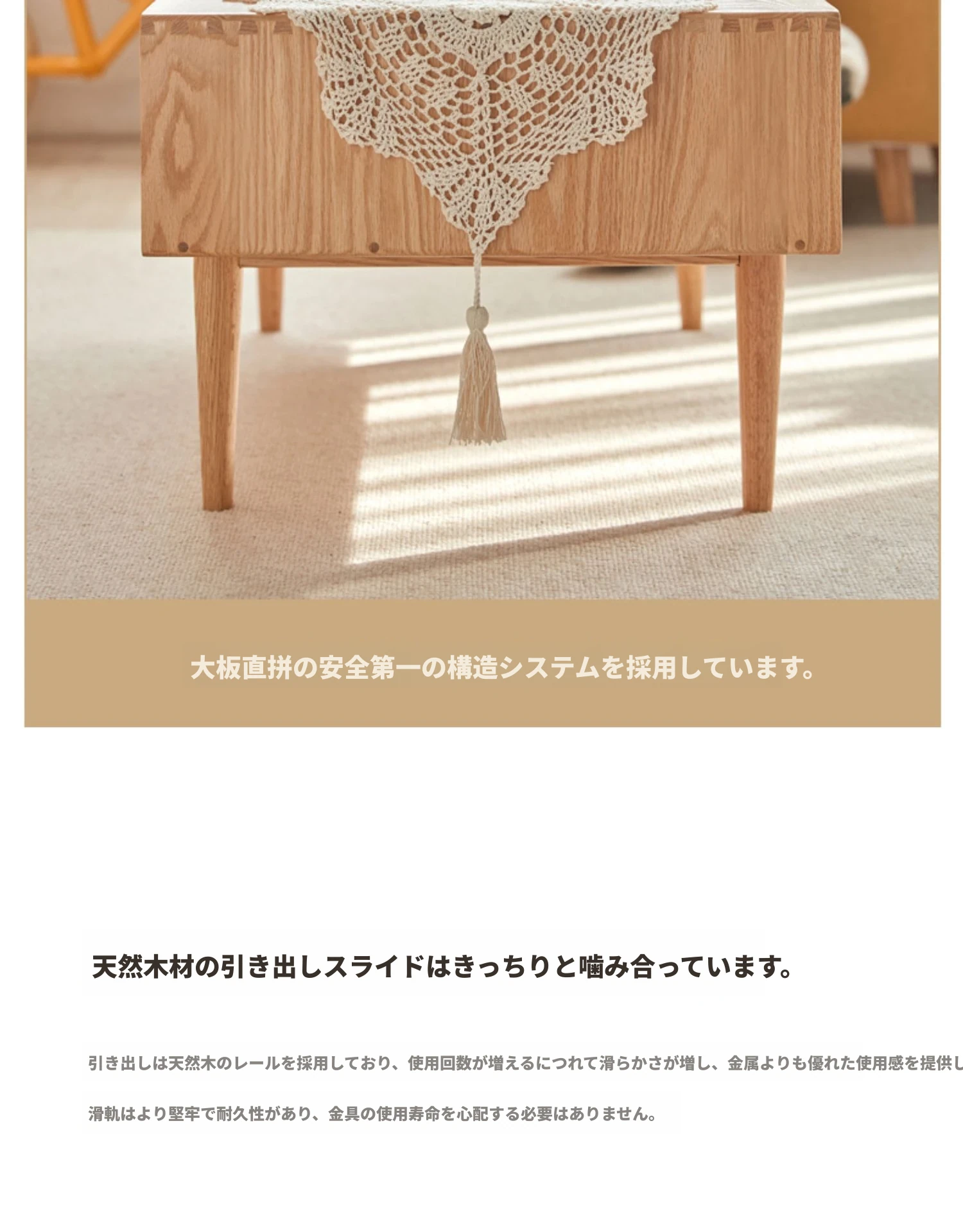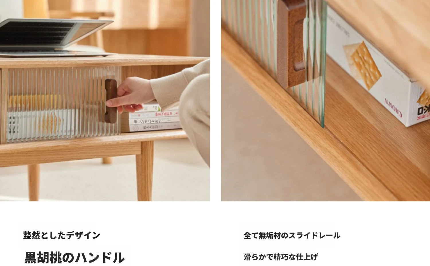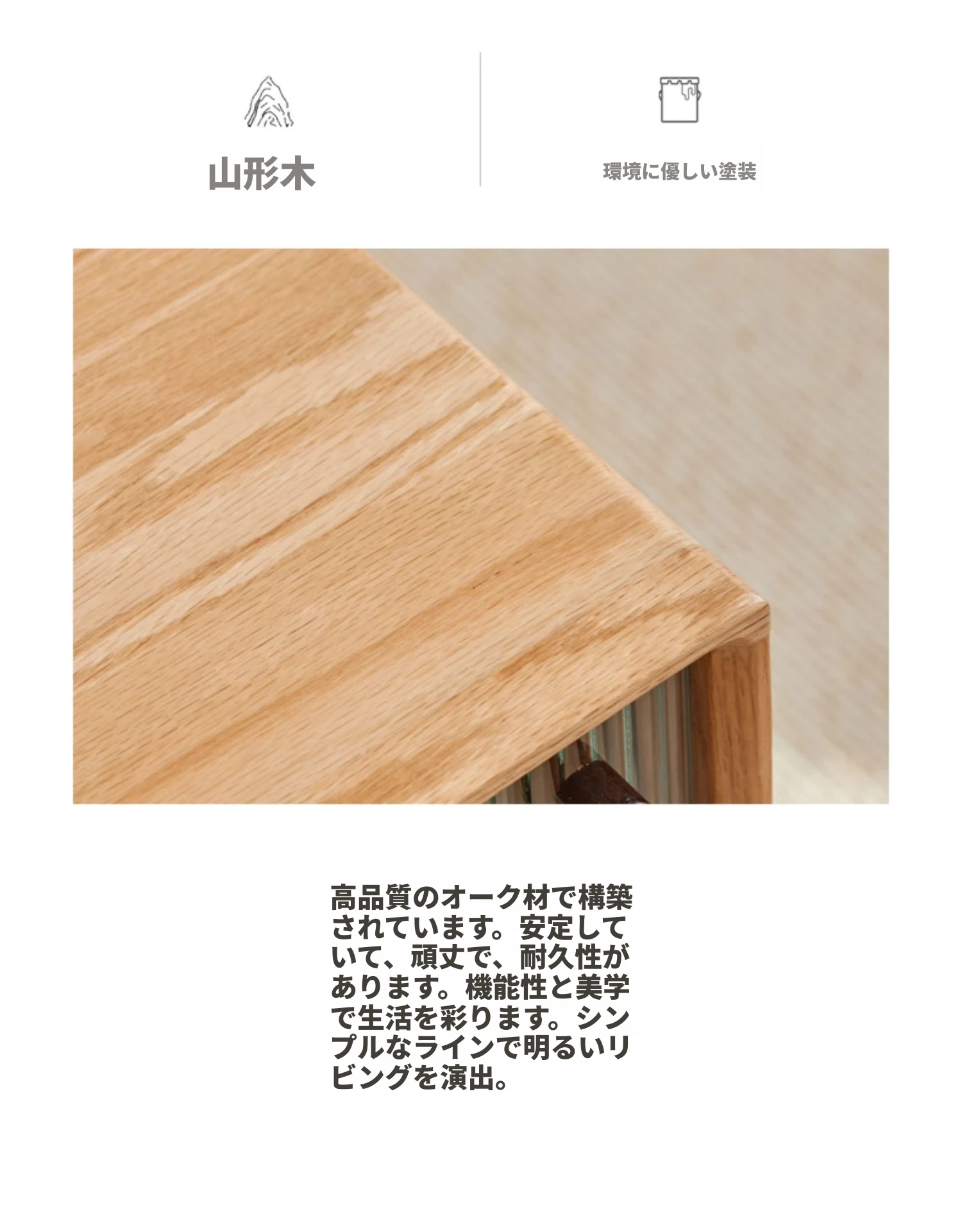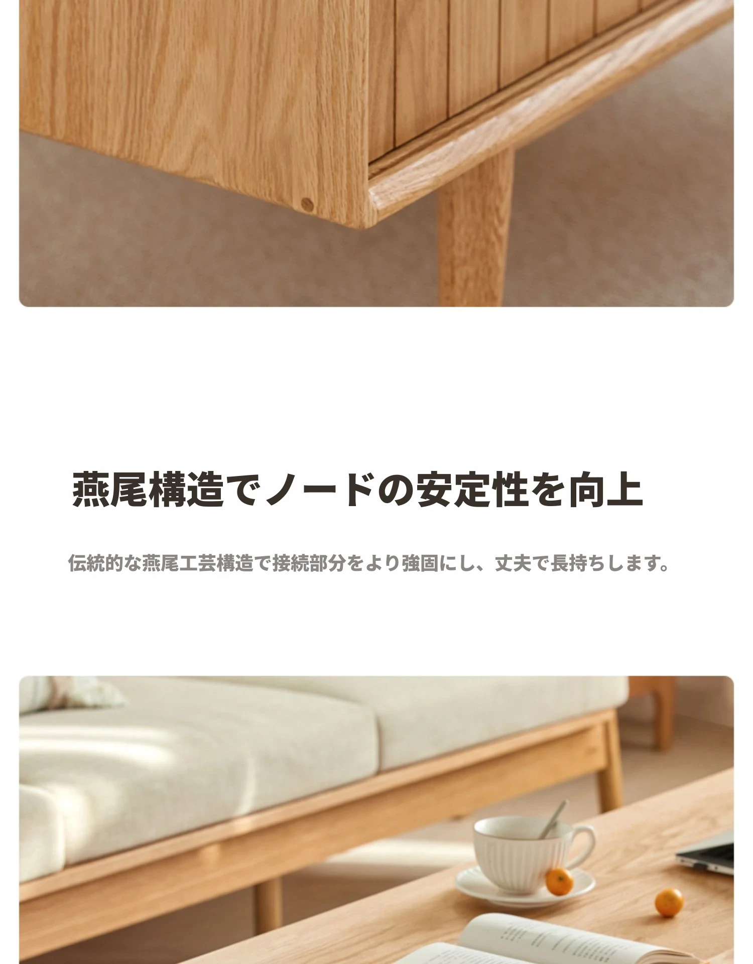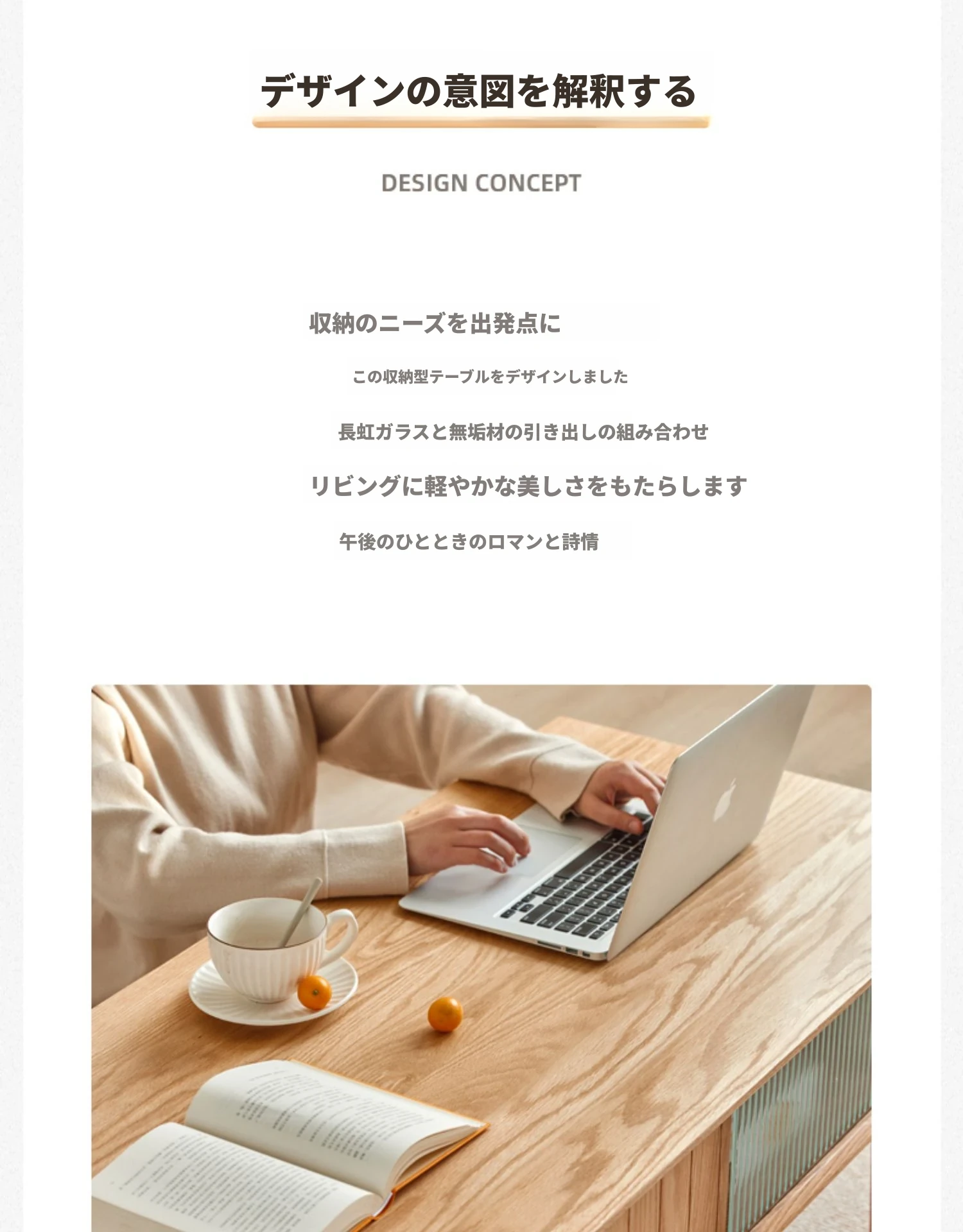 オリジナルエッセンス全木製コーヒーテーブル - 北欧オーク材使用のモダン&シンプルなデザイン。小さなお部屋にもぴったりな、温もりある天然木製のティーテーブルで、居心地の良いリビングを演出。