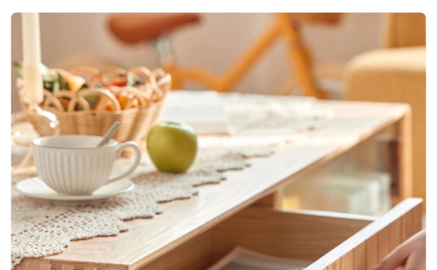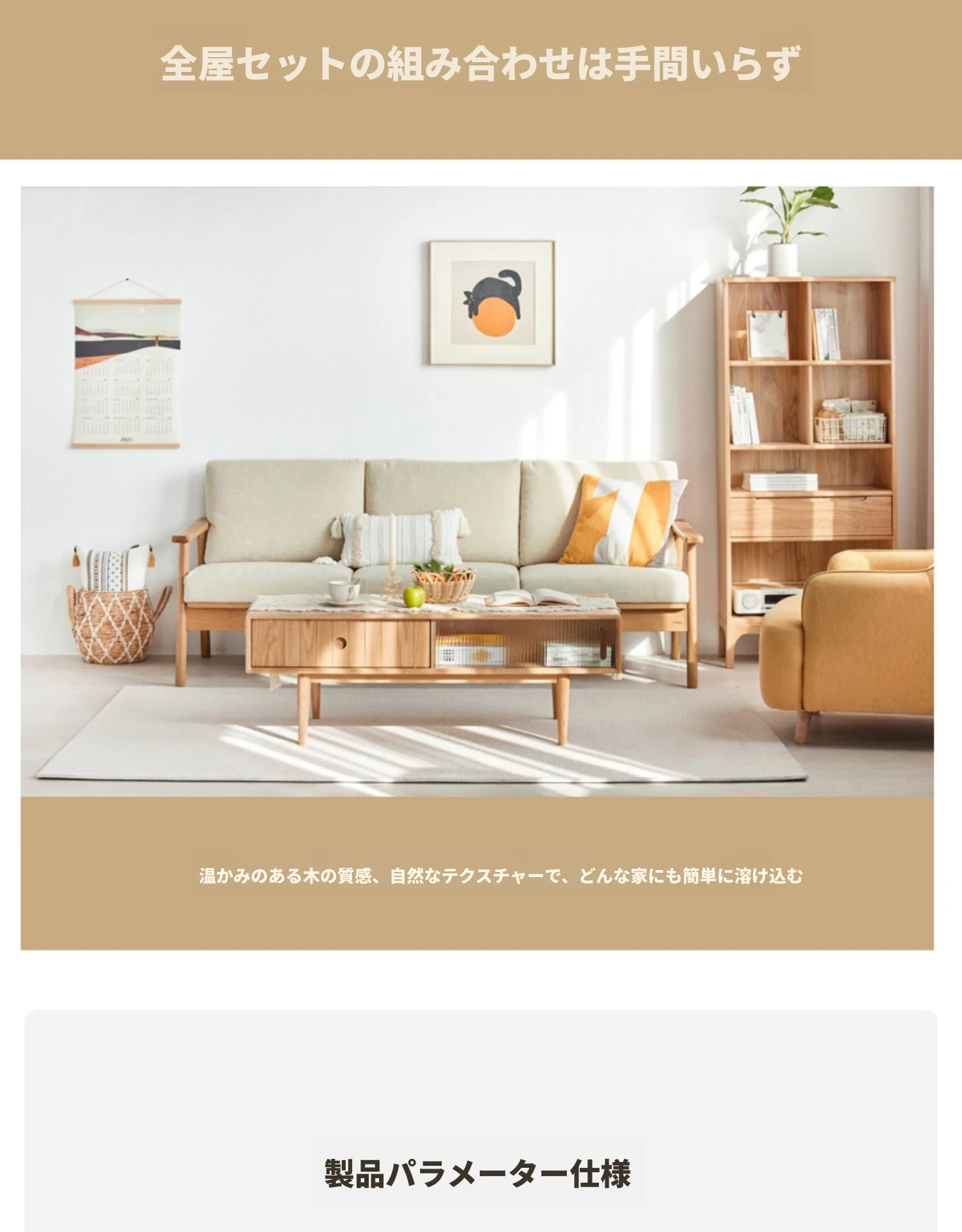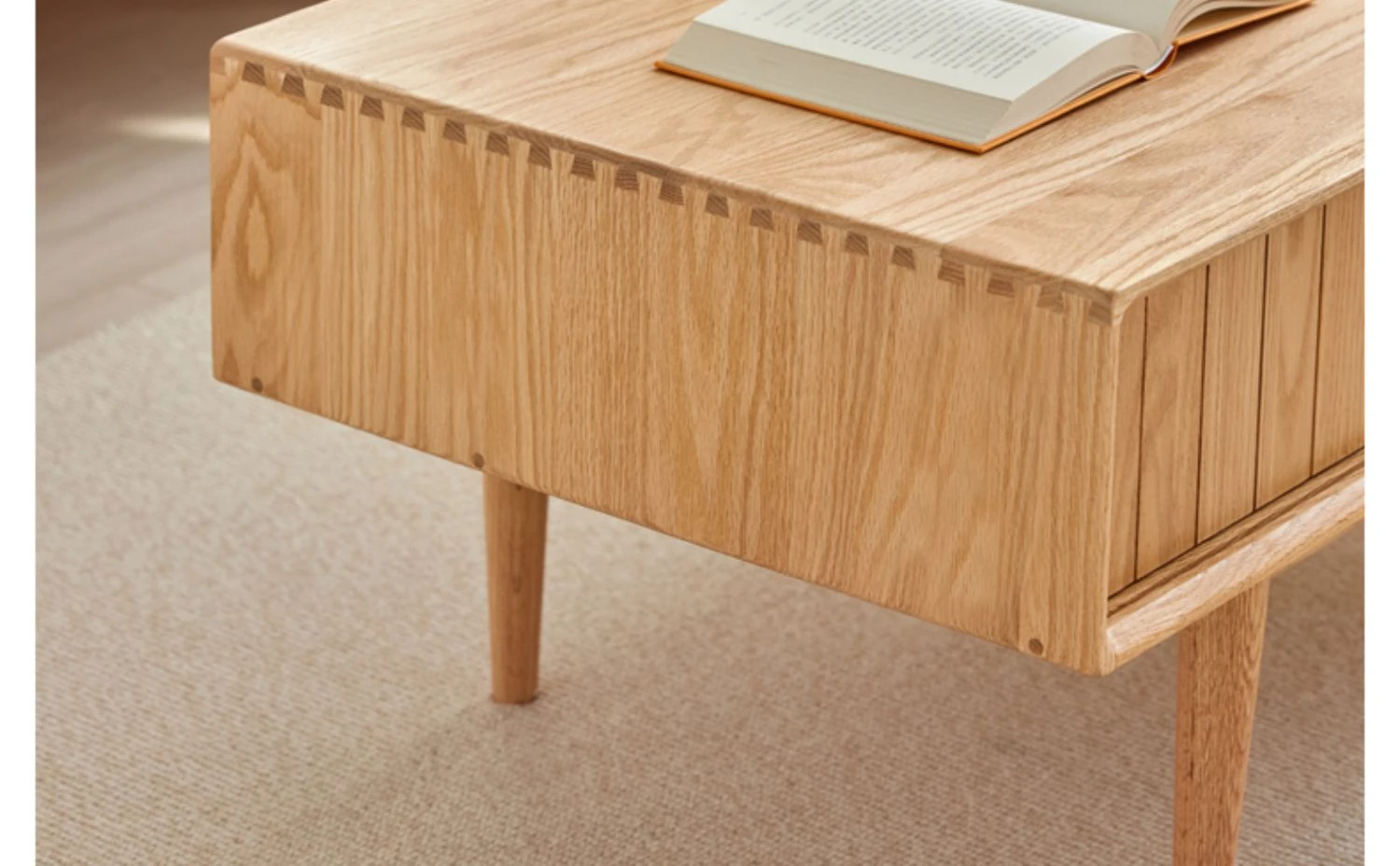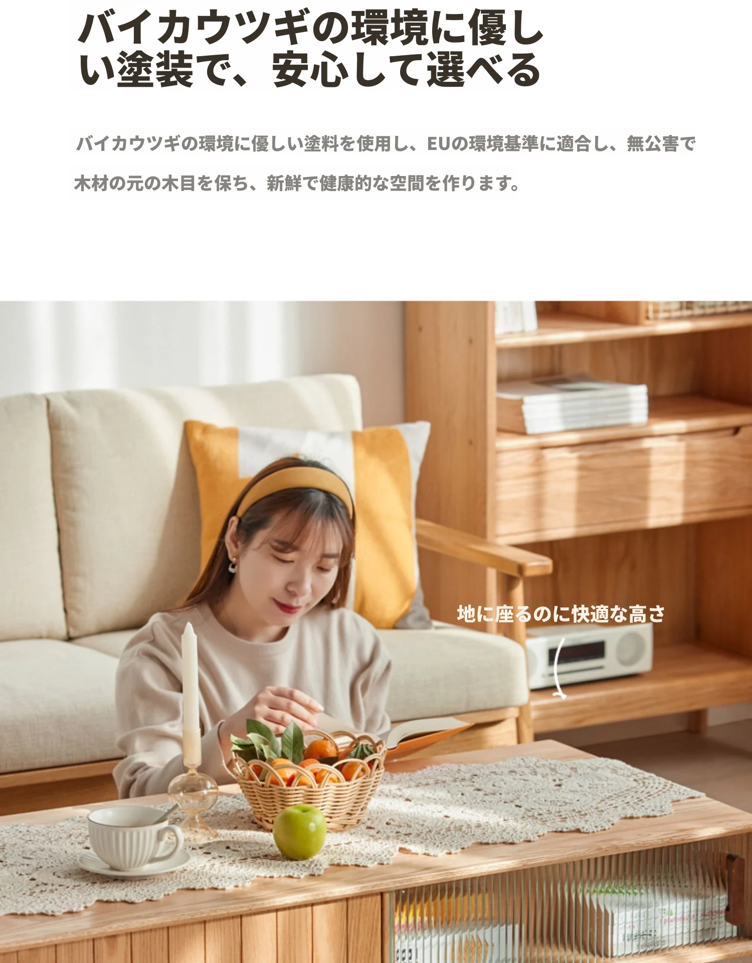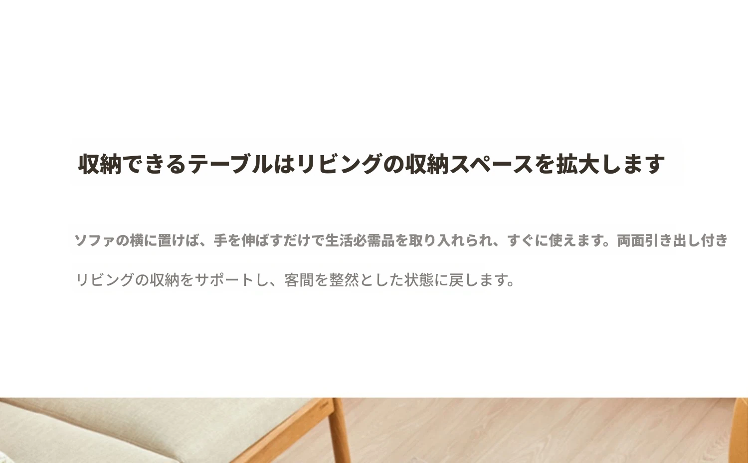 オリジナルエッセンス全木製コーヒーテーブル - 北欧オーク材使用のモダン&シンプルなデザイン。小さなお部屋にもぴったりな、温もりある天然木製のティーテーブルで、居心地の良いリビングを演出。