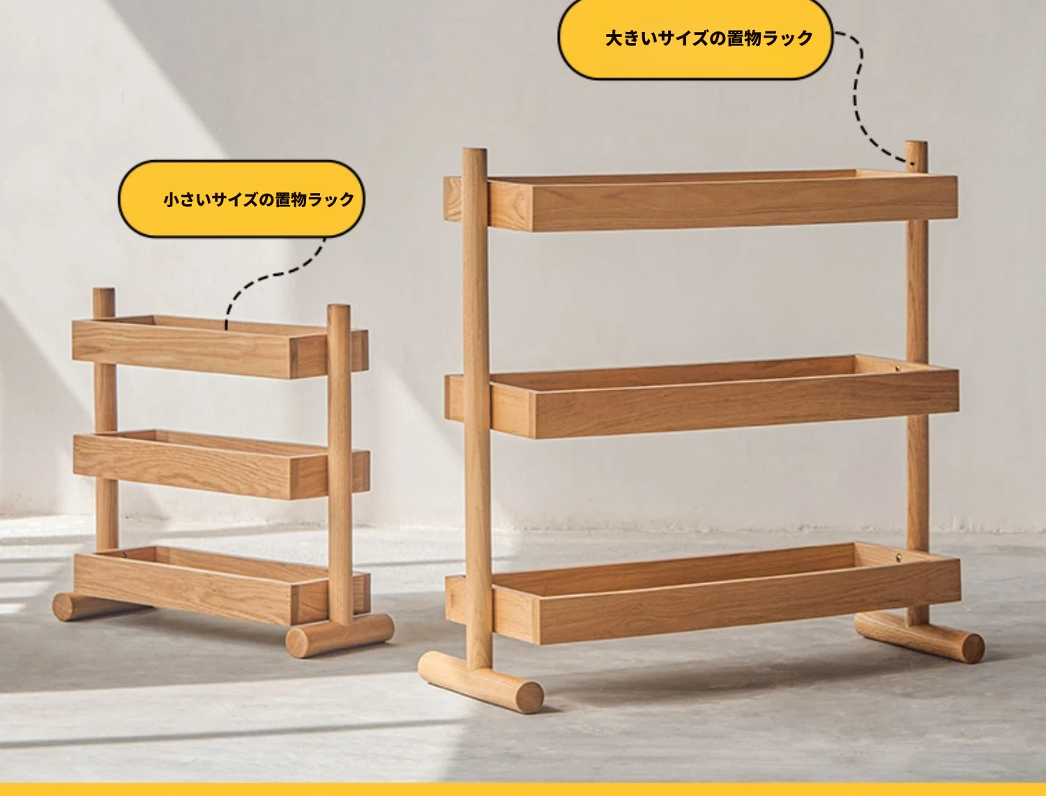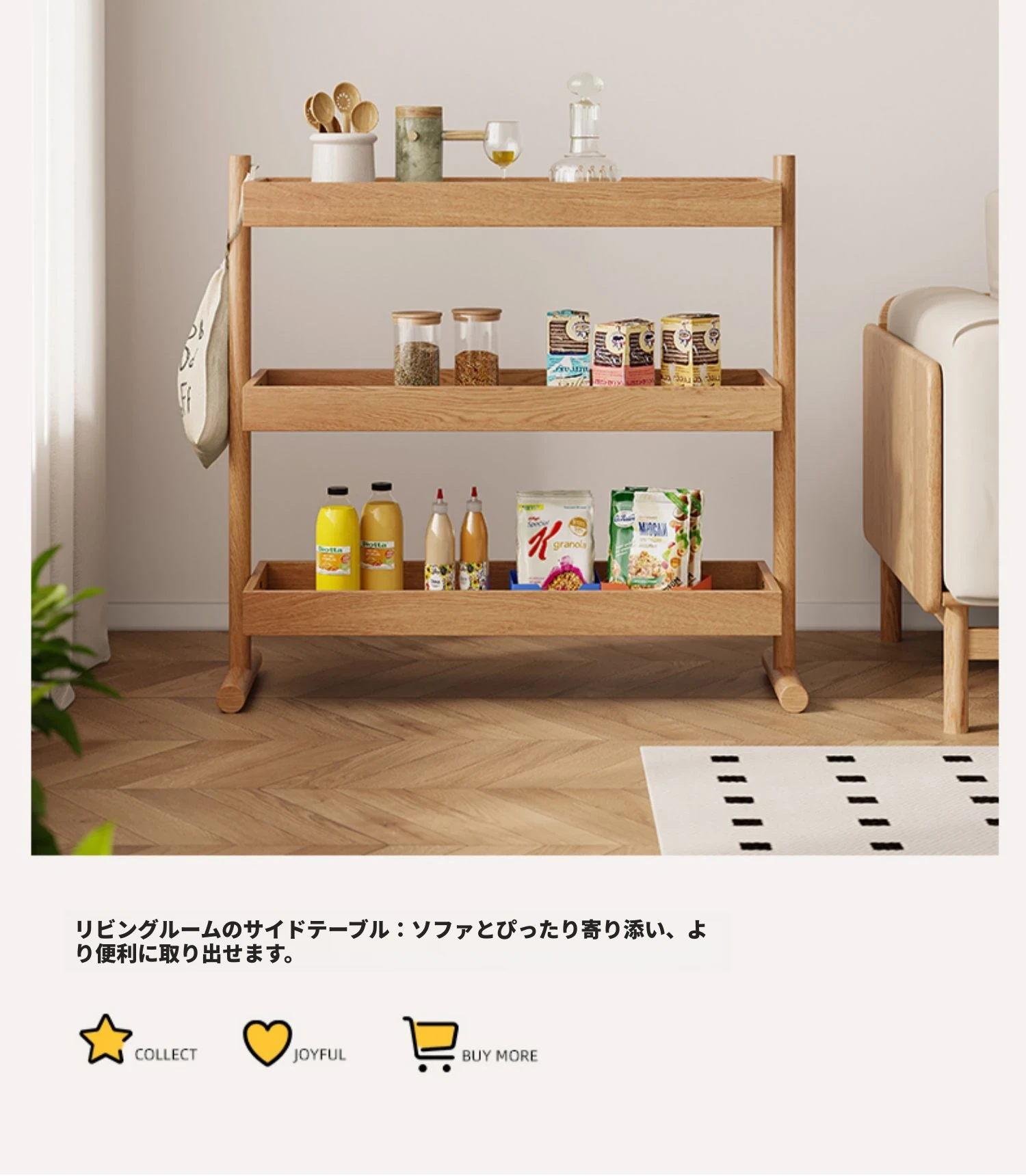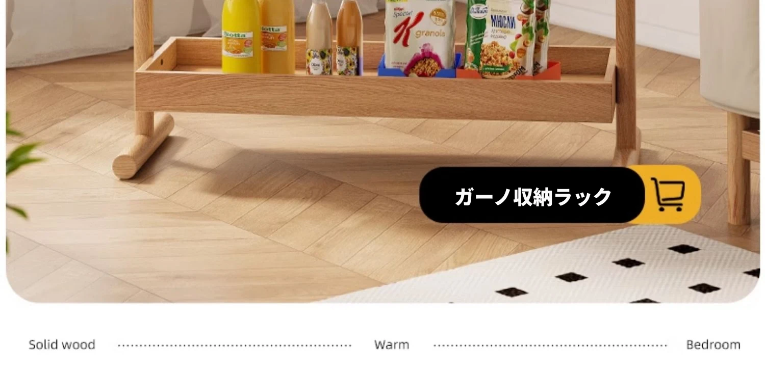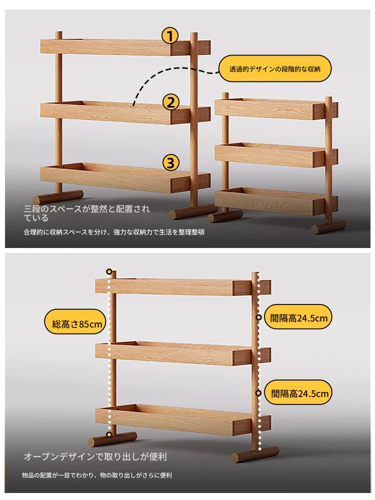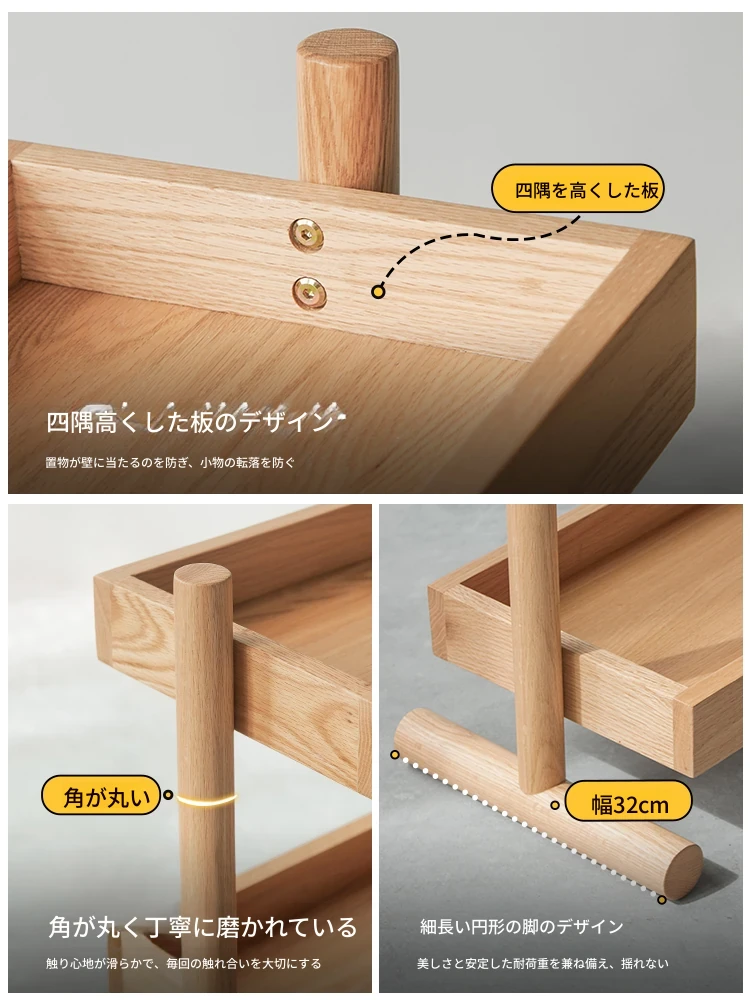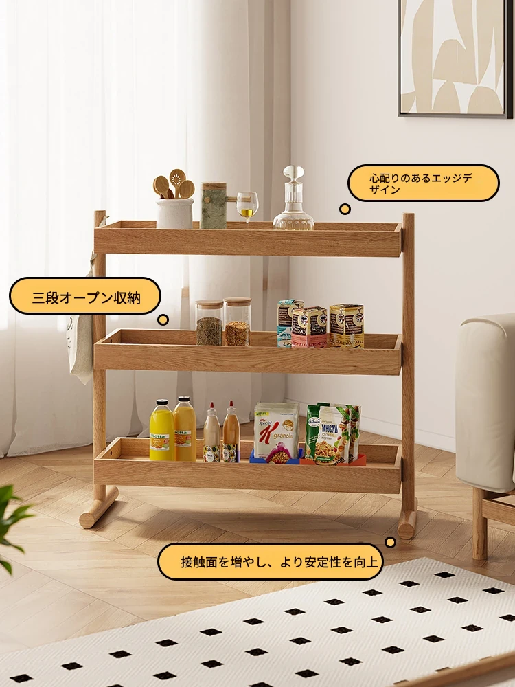 北欧スタイルの天然木製収納ラック - 橡木製の多層サイドテーブル!リビング、キッチンに最適なティーキャビネット。洗練されたデザインでお部屋をスッキリ整理!