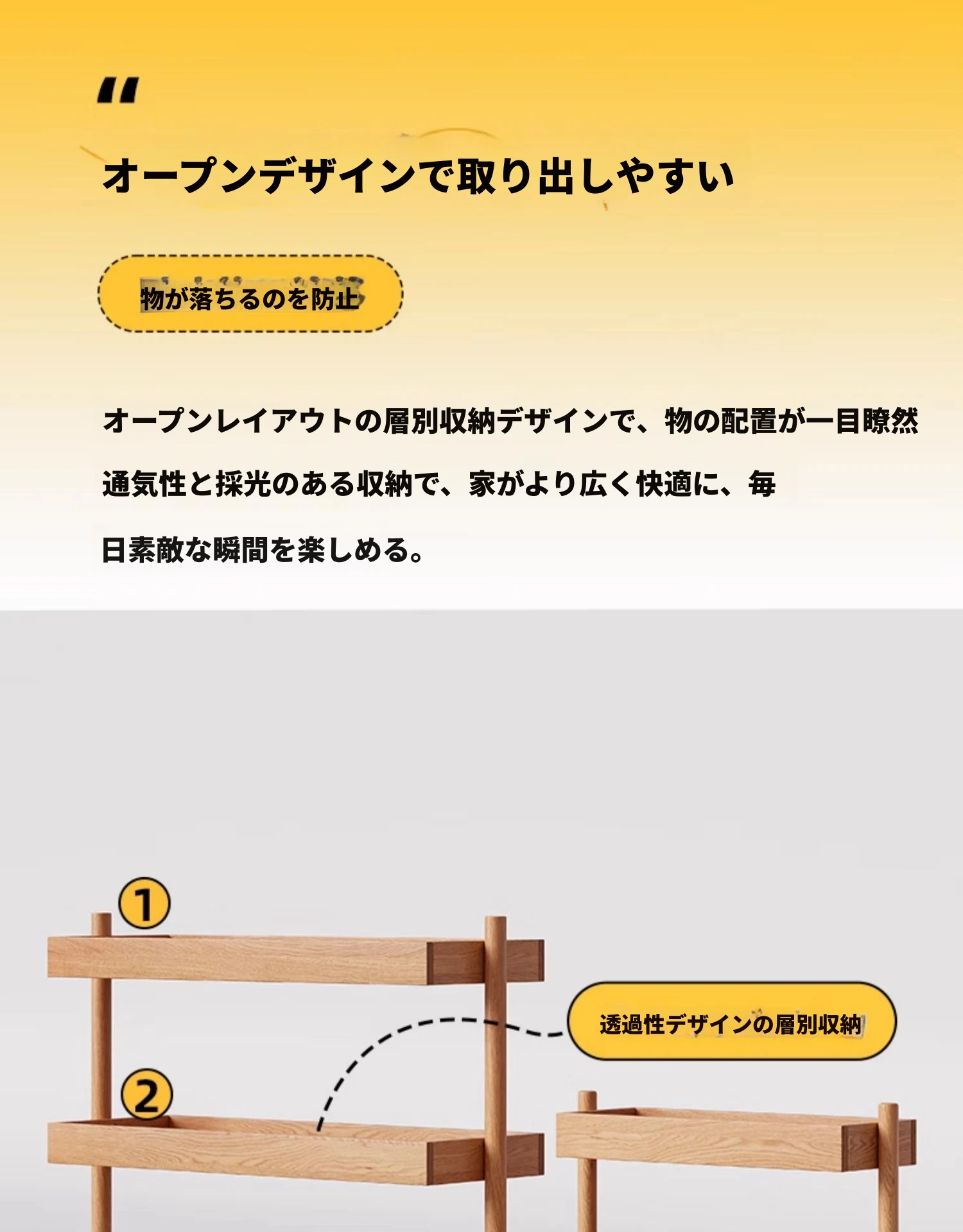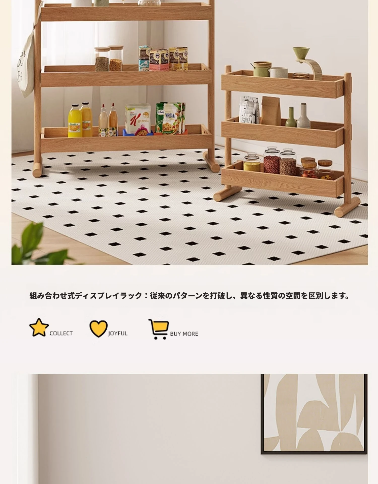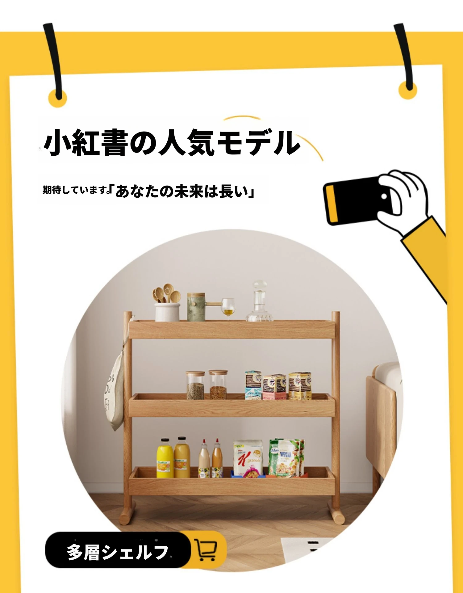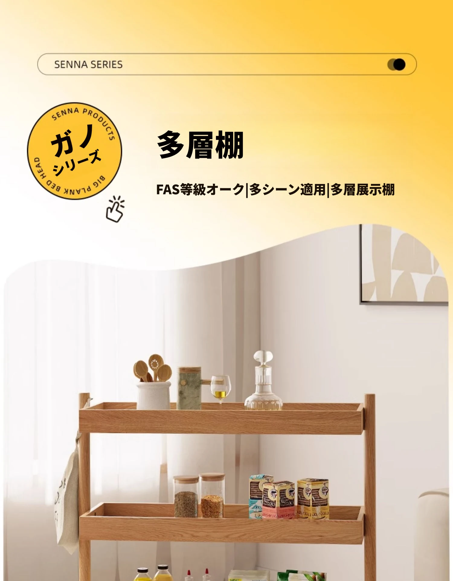 北欧スタイルの天然木製収納ラック - 橡木製の多層サイドテーブル!リビング、キッチンに最適なティーキャビネット。洗練されたデザインでお部屋をスッキリ整理!