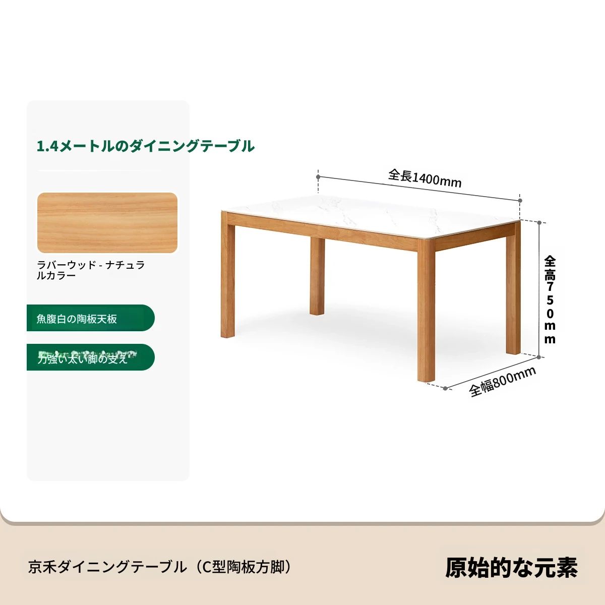 【ゴムの木-ナチュラルカラー】1.4メートル食卓(1400*800*750mm)