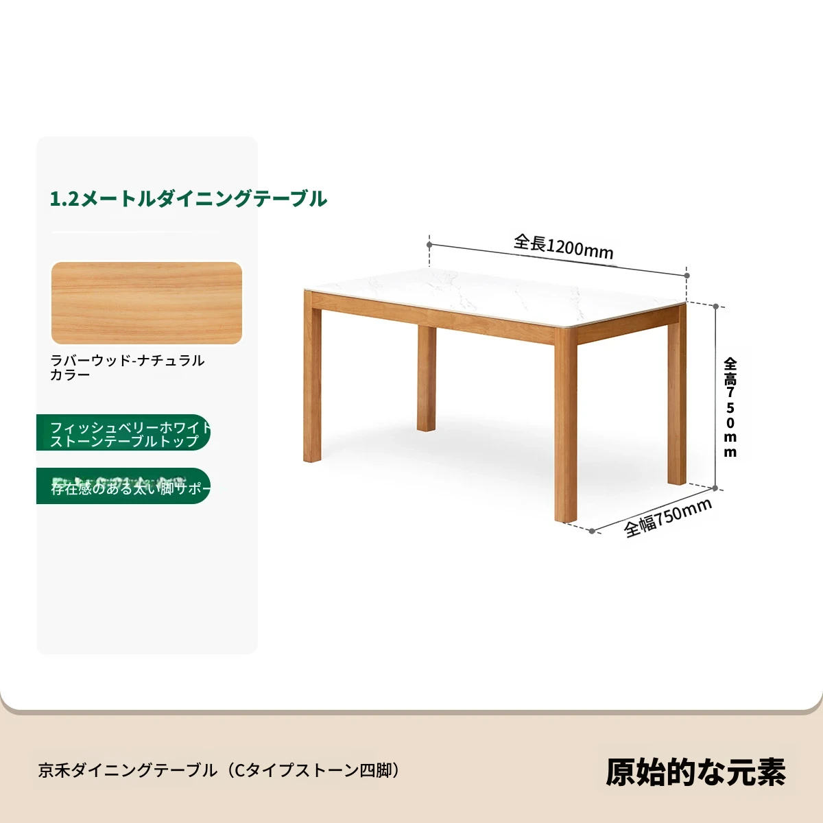 【ゴムの木-ナチュラルカラー】1.2メートル食卓(1200*750*750mm)
