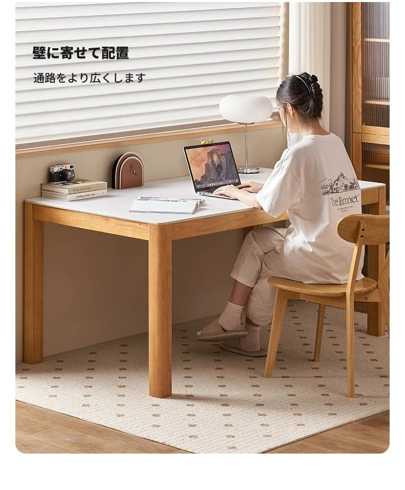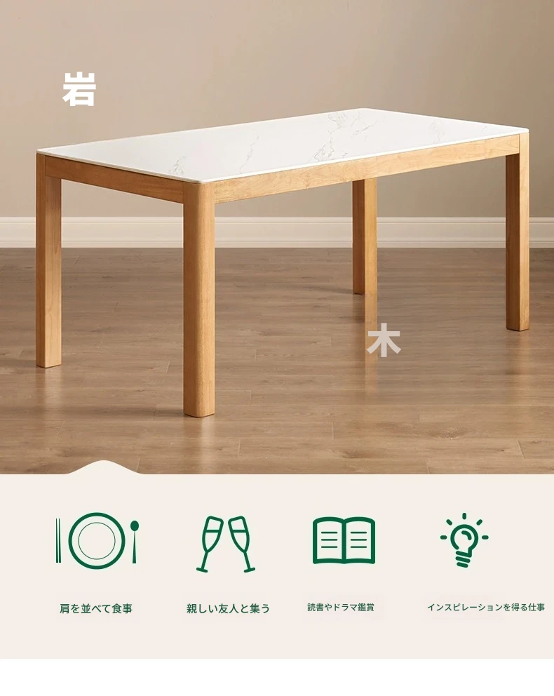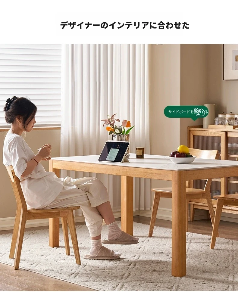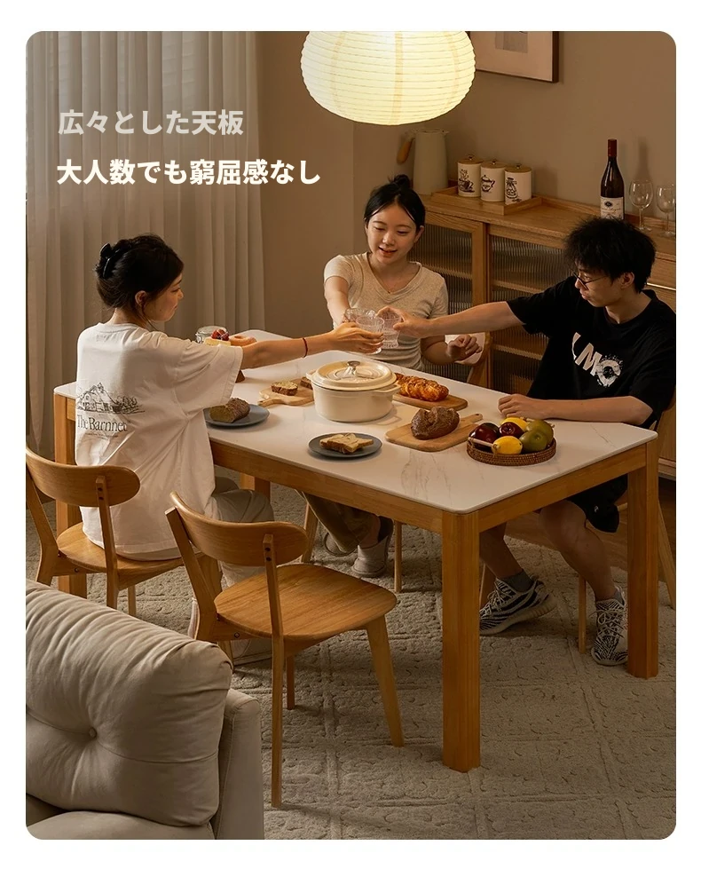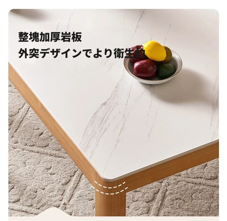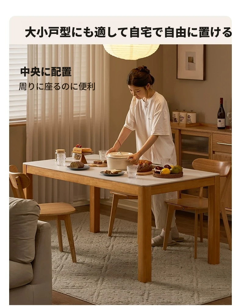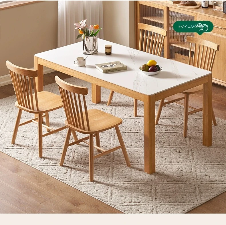 オリジナル無垢材使用・北欧スタイル・ロング長方形ダイニングテーブルセット - 小型住宅に最適な洗練されたデザインで、快適な食事時間を提供します!