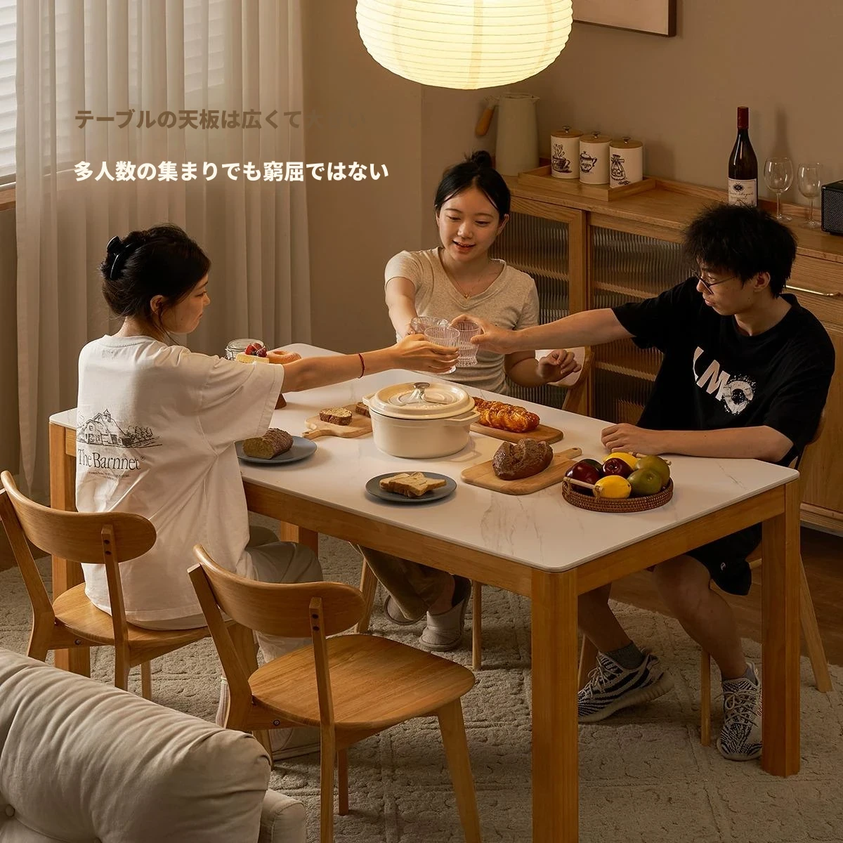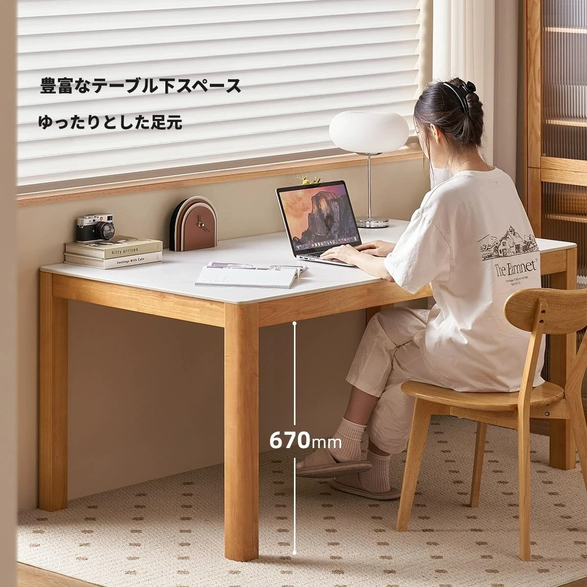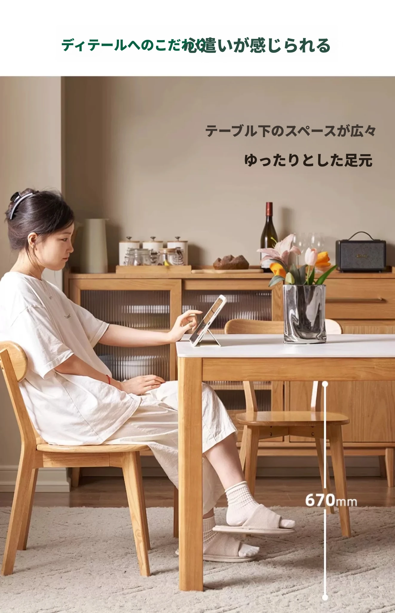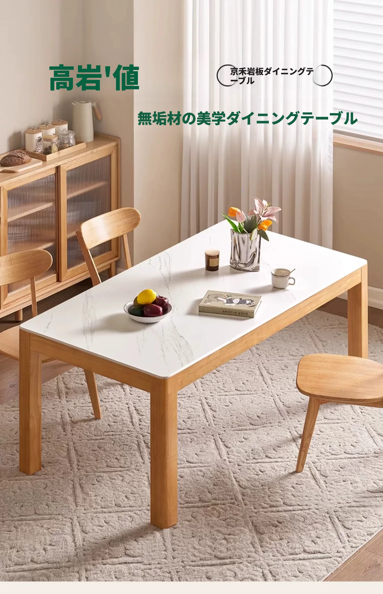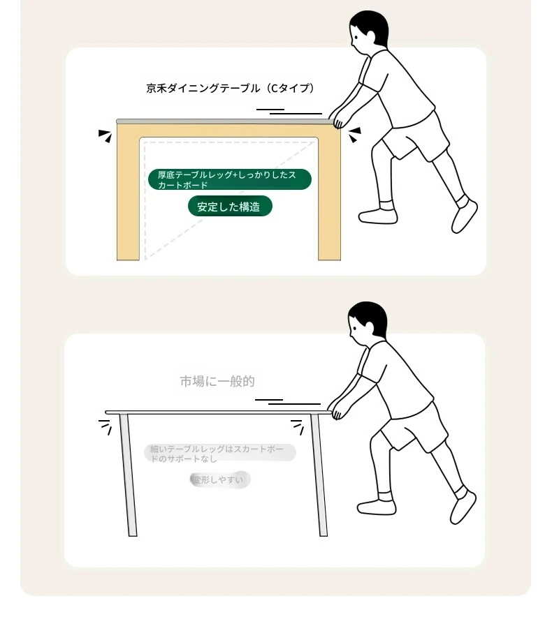 オリジナル無垢材使用・北欧スタイル・ロング長方形ダイニングテーブルセット - 小型住宅に最適な洗練されたデザインで、快適な食事時間を提供します!