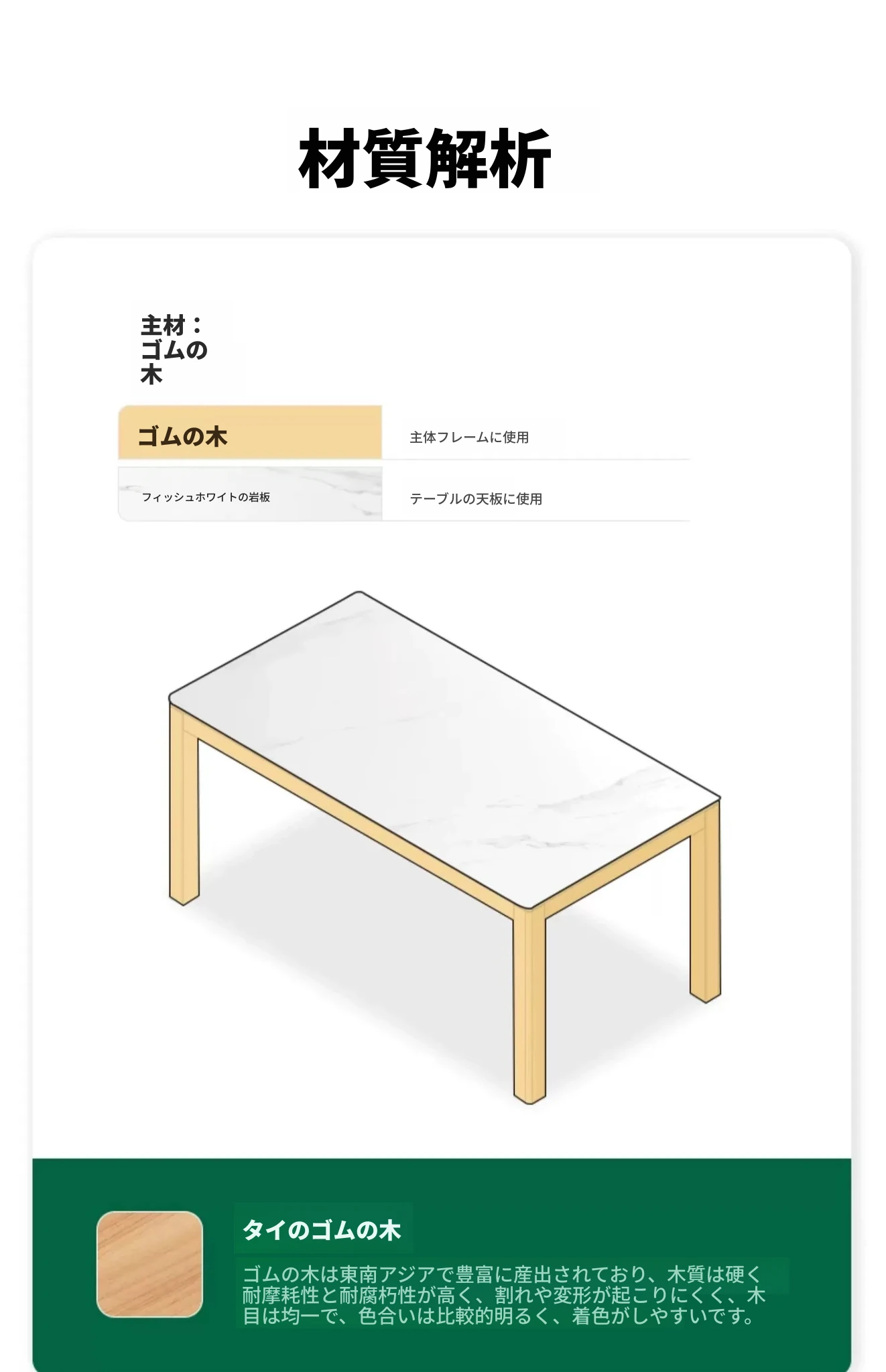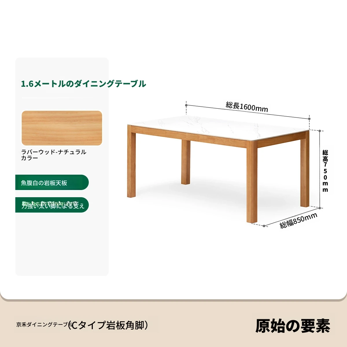 【ゴムの木-ナチュラルカラー】1.6メートル食卓(1600*850*750mm)
