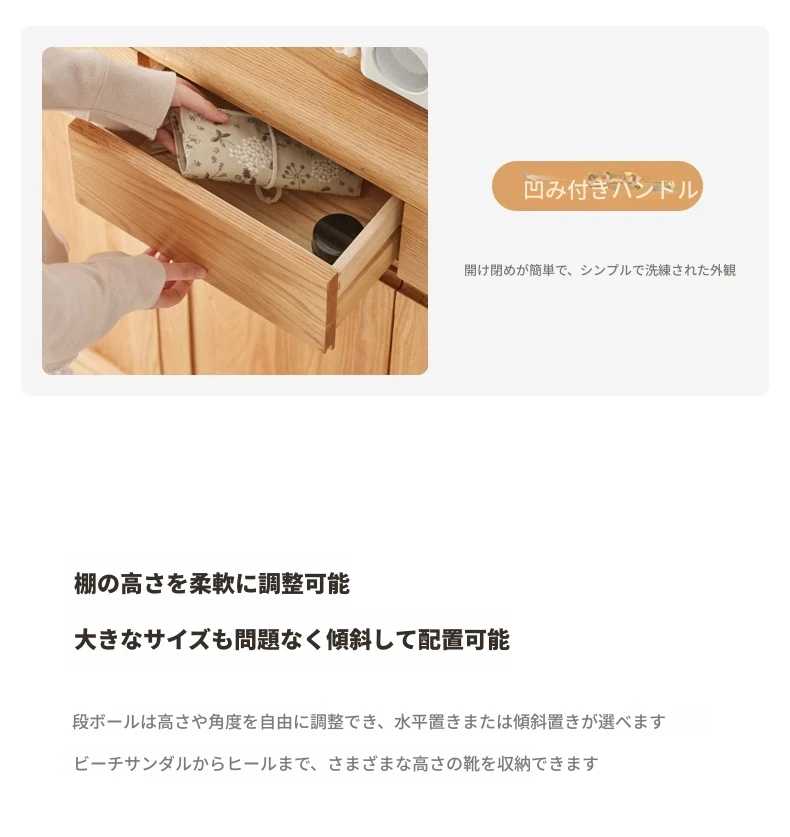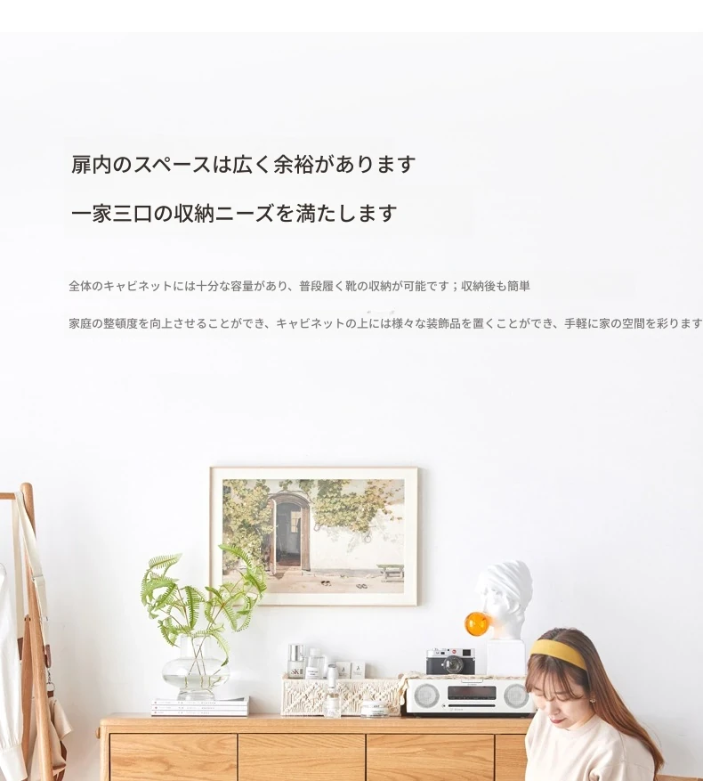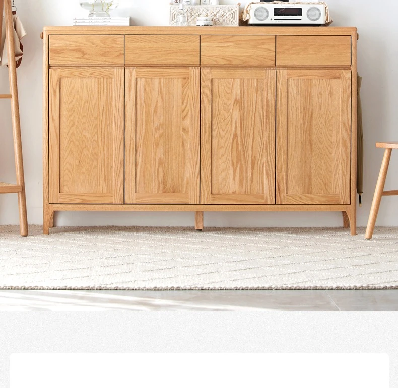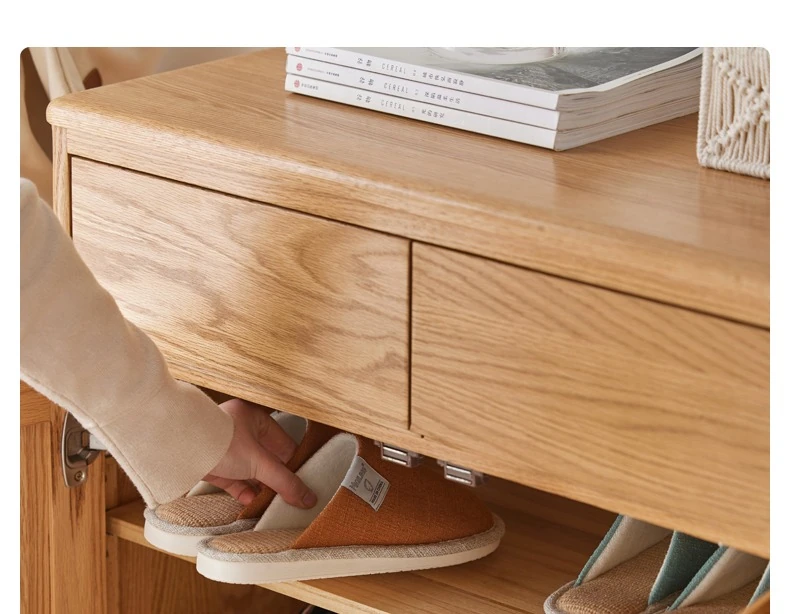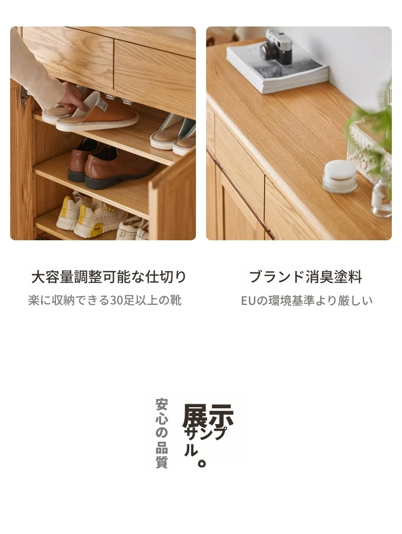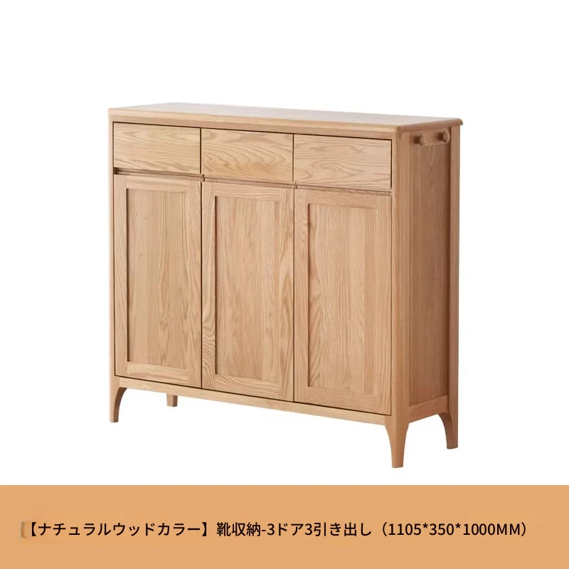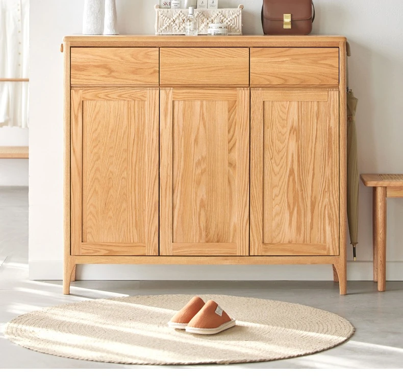 全無垢材の北欧風シューズキャビネット - 4ドアのオーク収納庫、シンプルでスタイリッシュな和風原木玄関収納、家庭にぴったり!