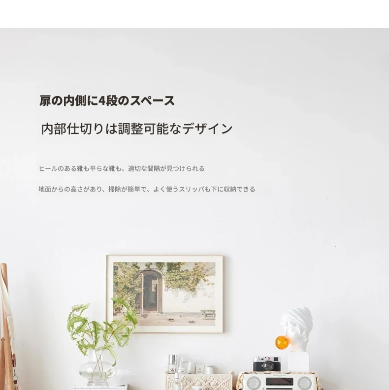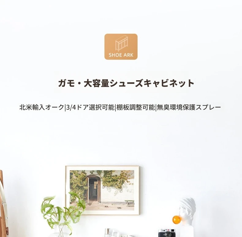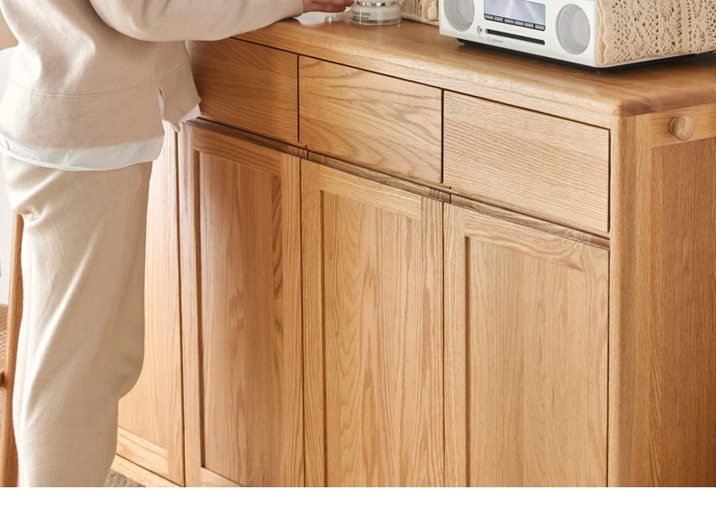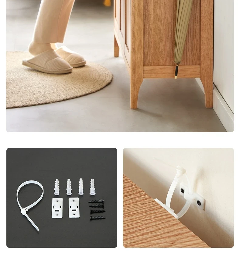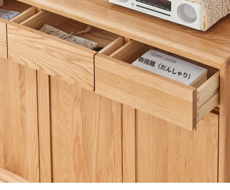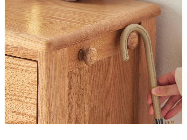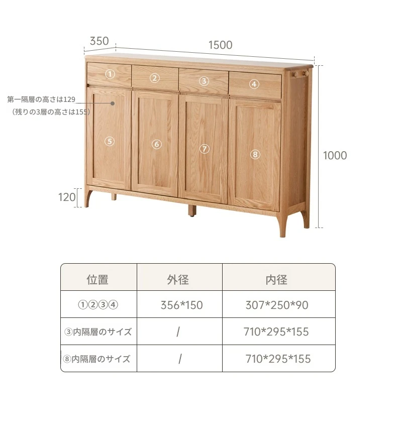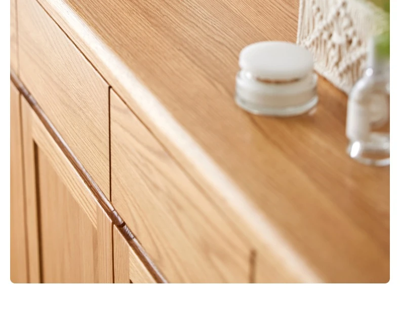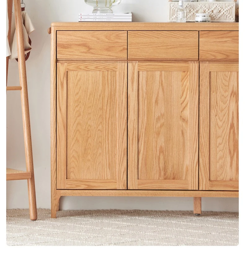 全無垢材の北欧風シューズキャビネット - 4ドアのオーク収納庫、シンプルでスタイリッシュな和風原木玄関収納、家庭にぴったり!