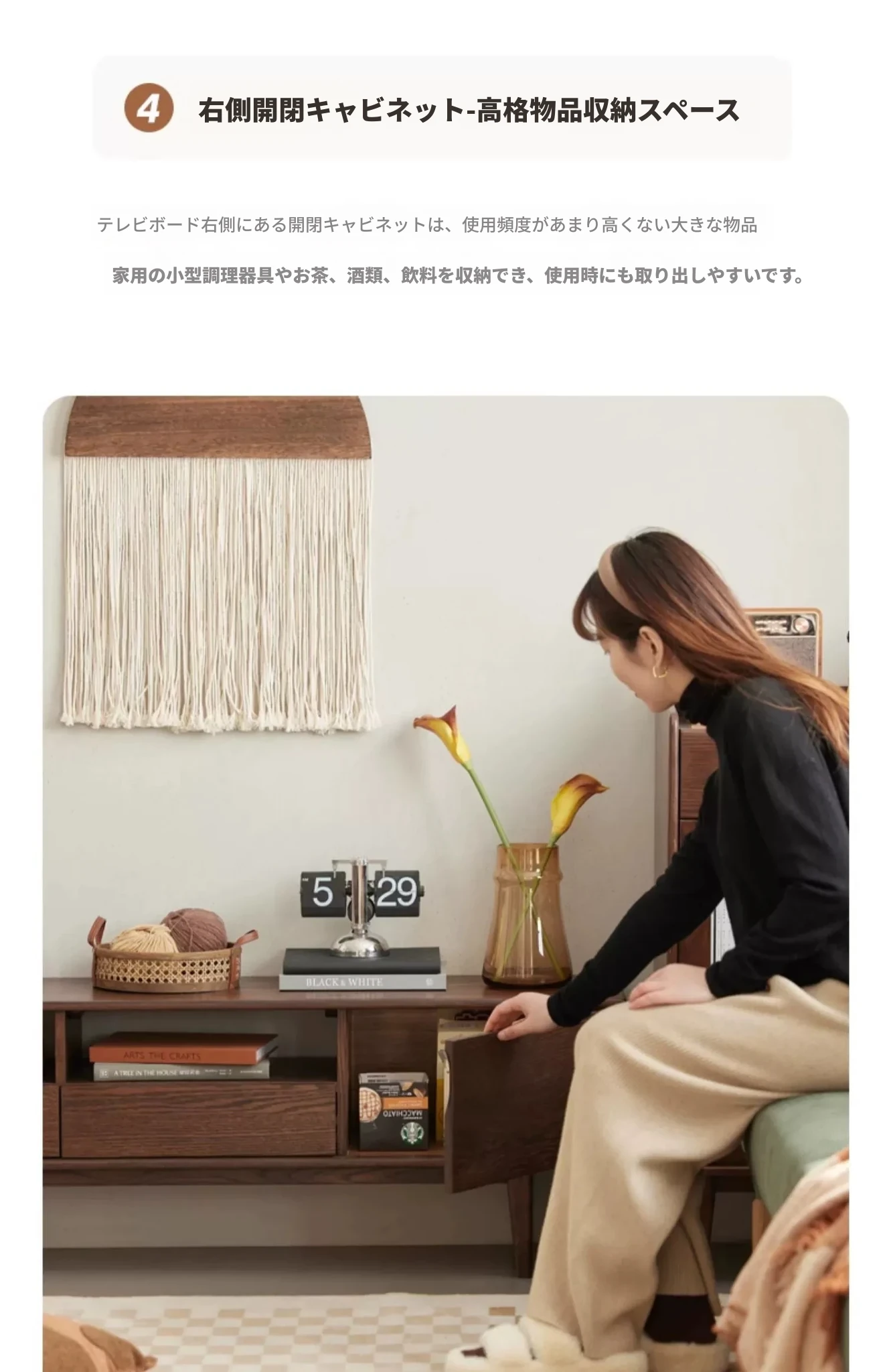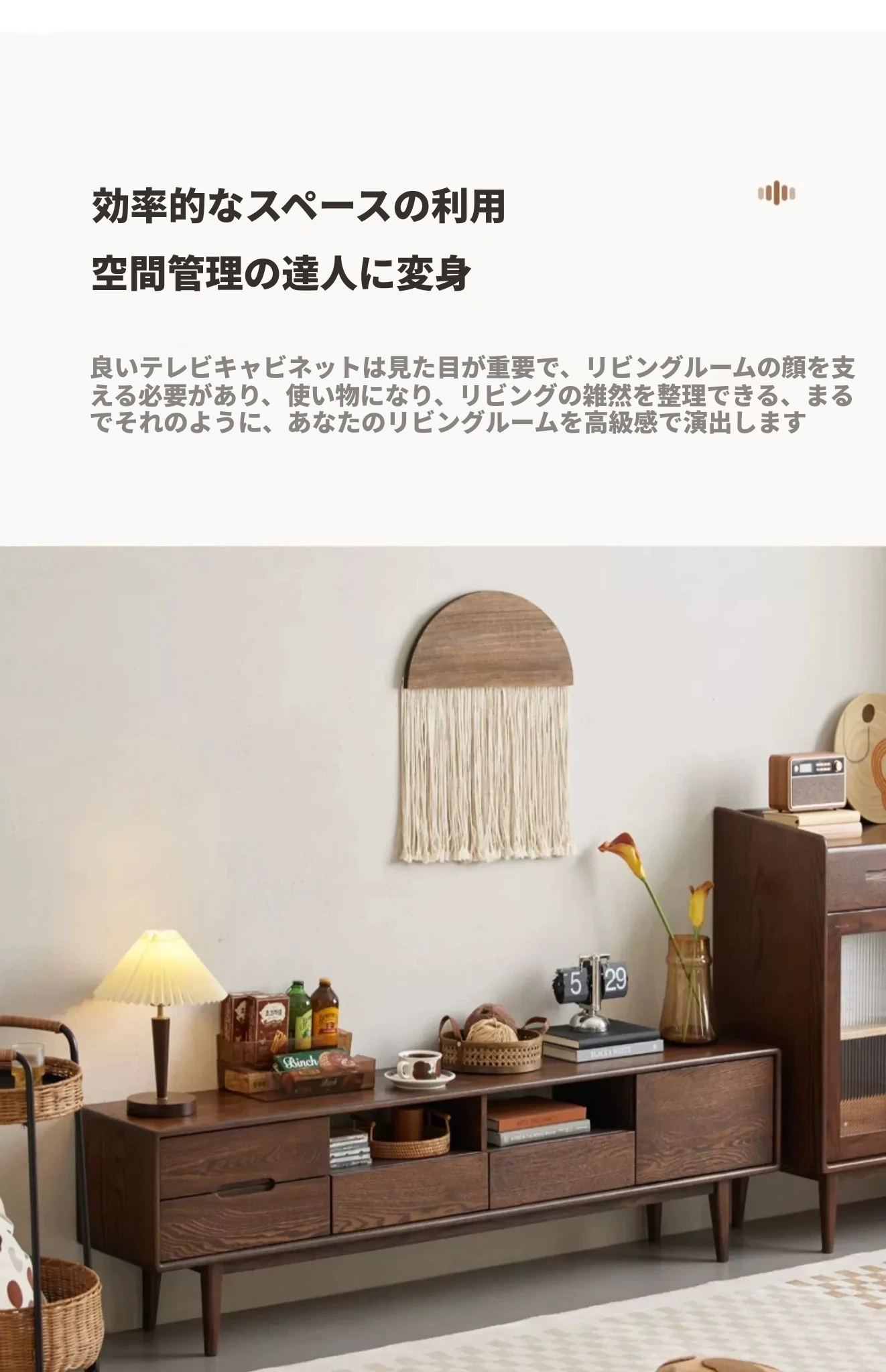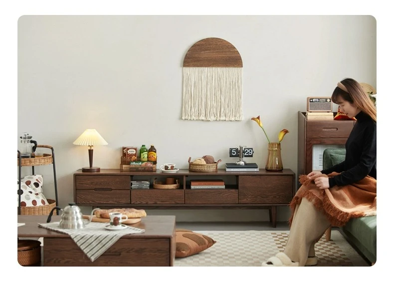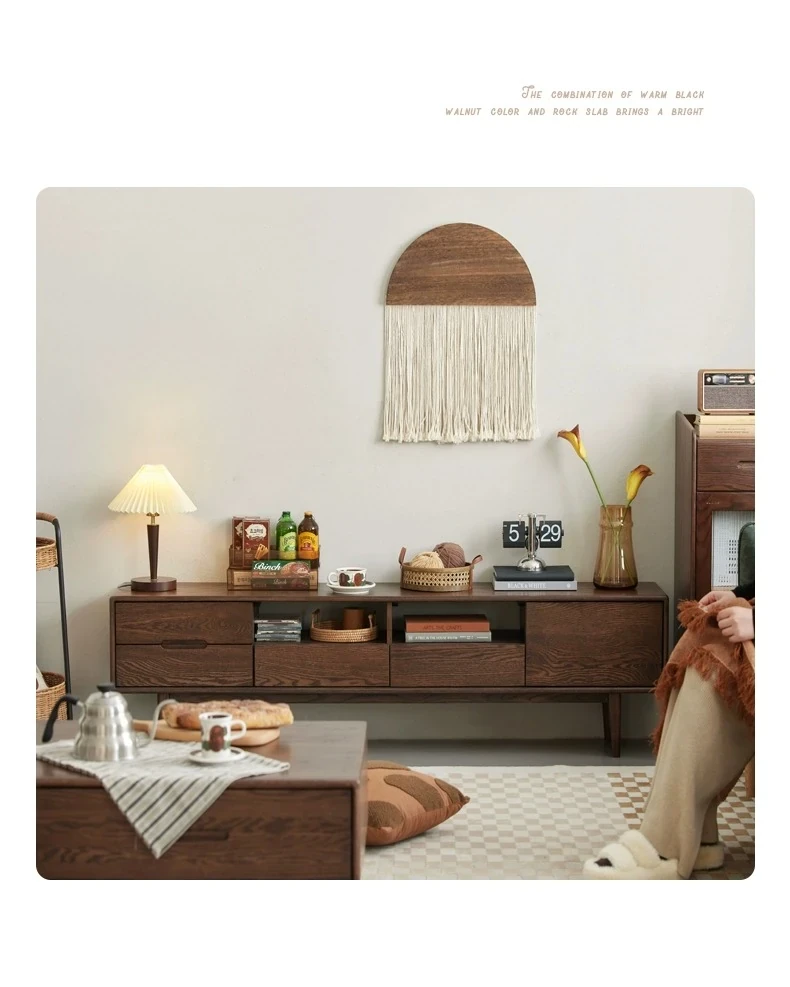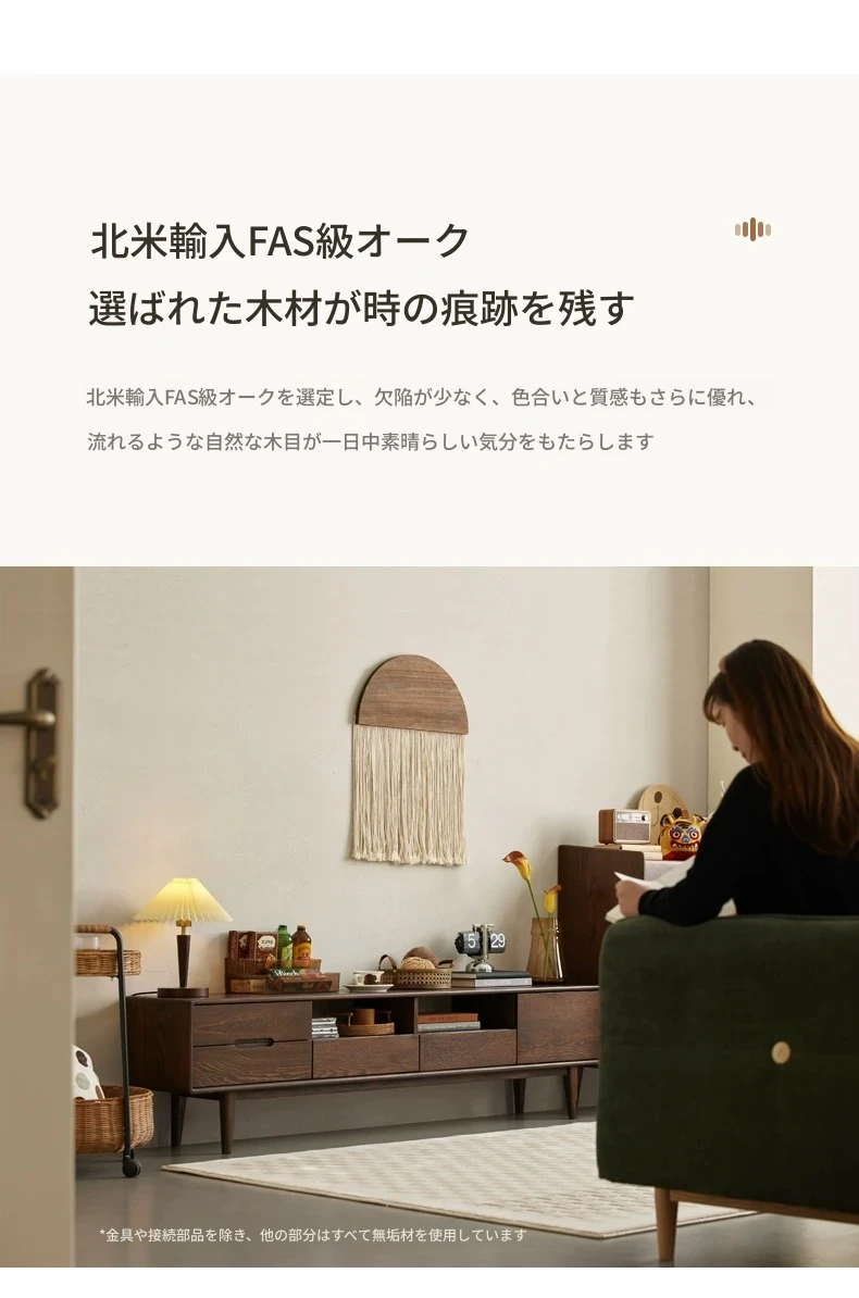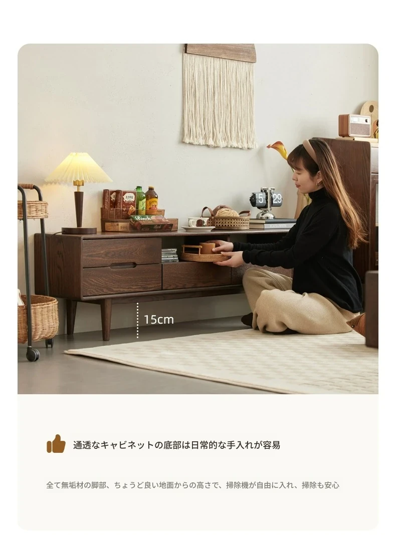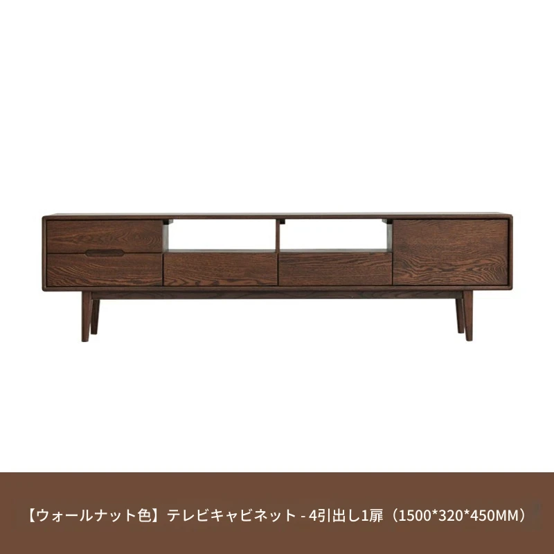 オリジナルウッド全木製テレビキャビネット 北欧デザイン オークとウォールナットのコンビネーション スタイリッシュなリビング収納キャビネット シンプルで機能的な収納力を実現!