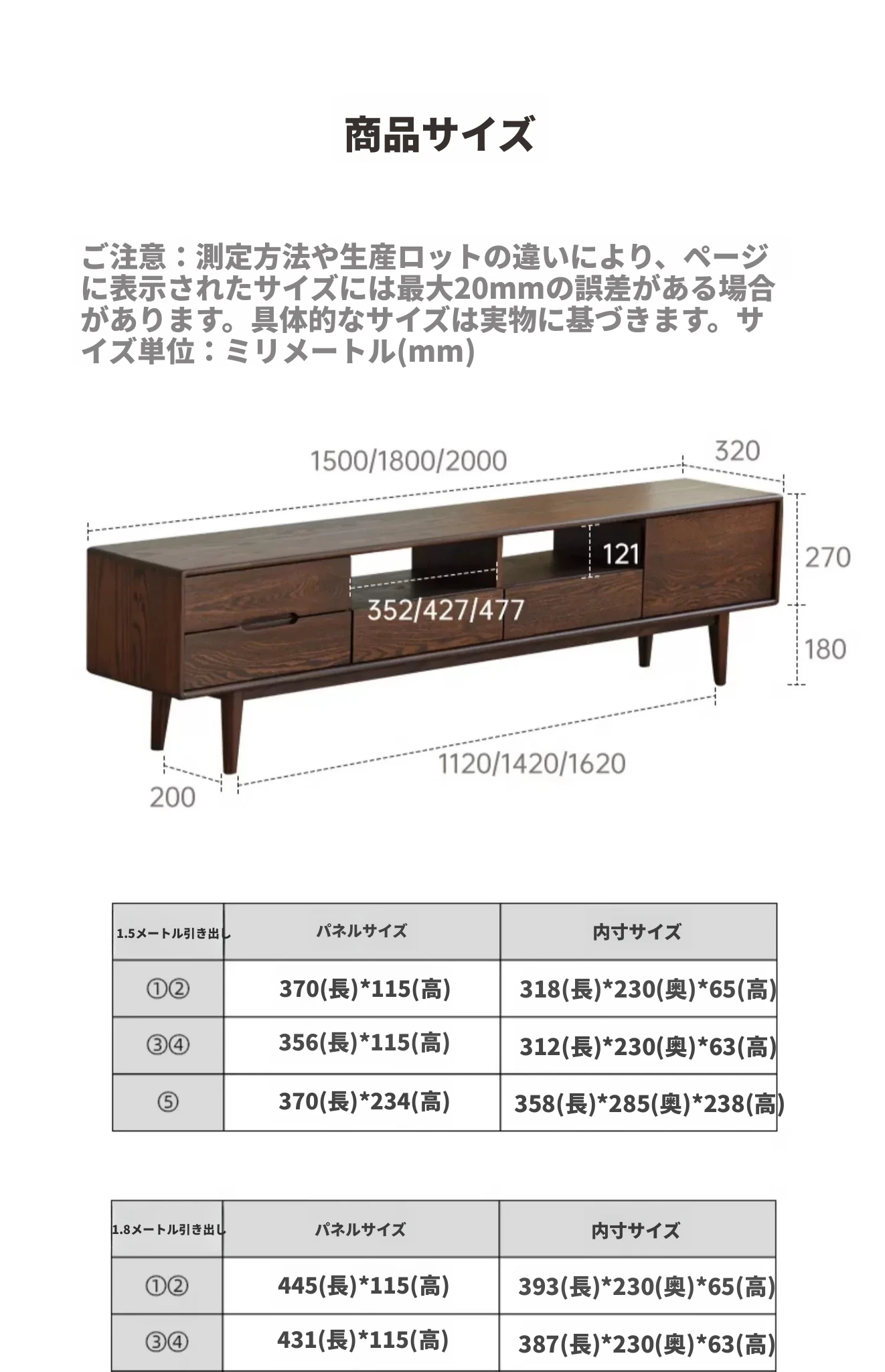 【オーク-ウォールナット色】1.8メートルテレビ台(1800*320*450mm)