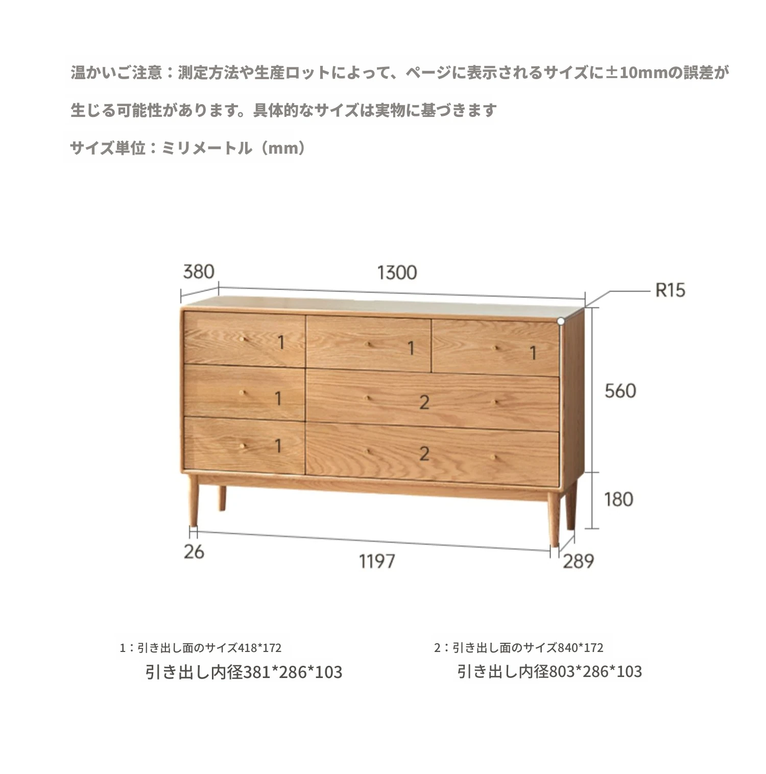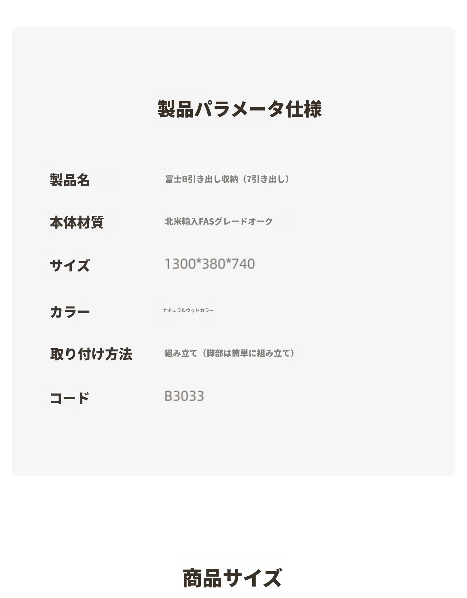 原木色-富士B幅広7段チェスト 1300*380*740mm
