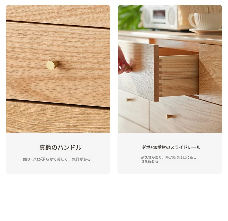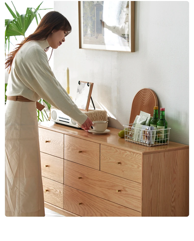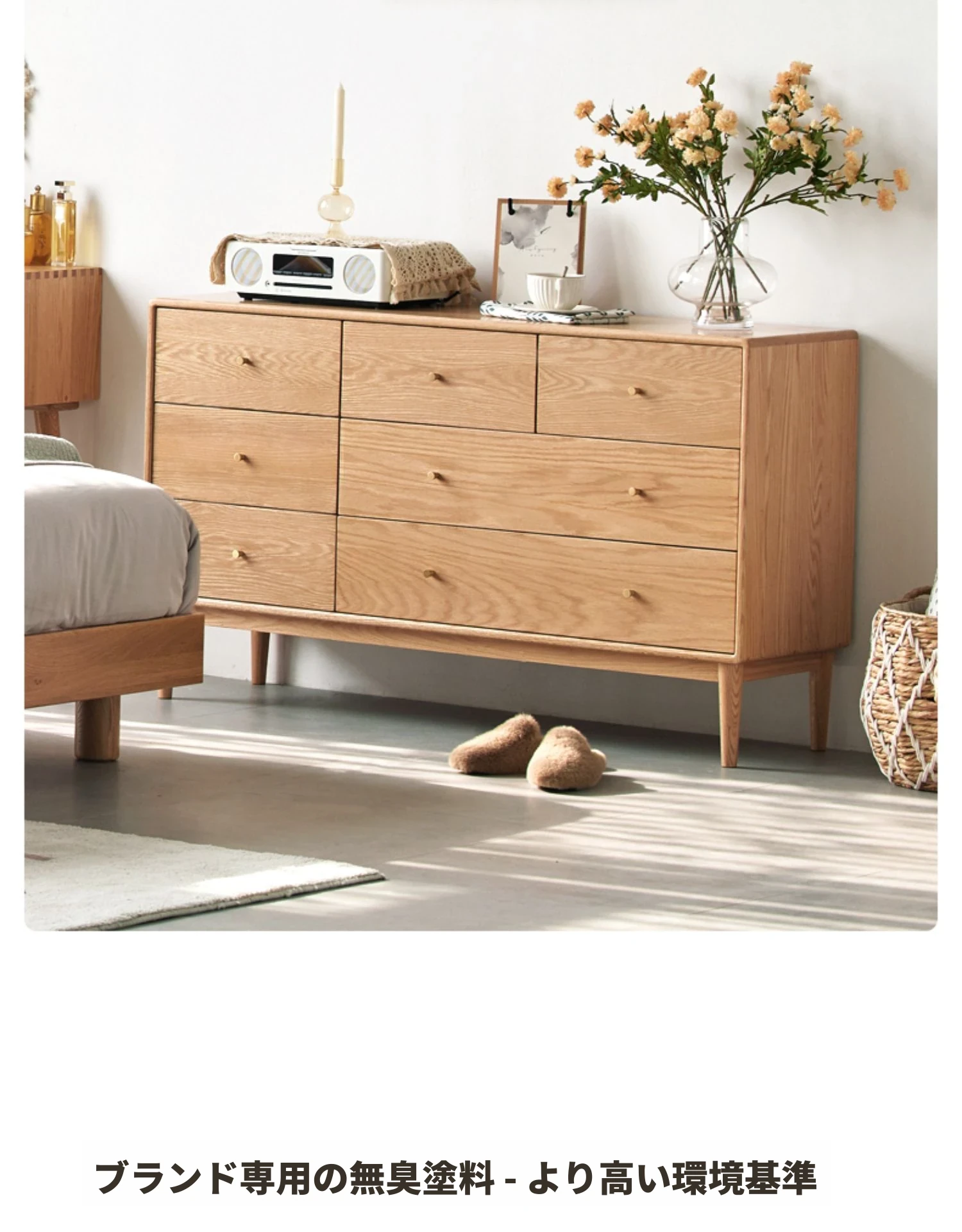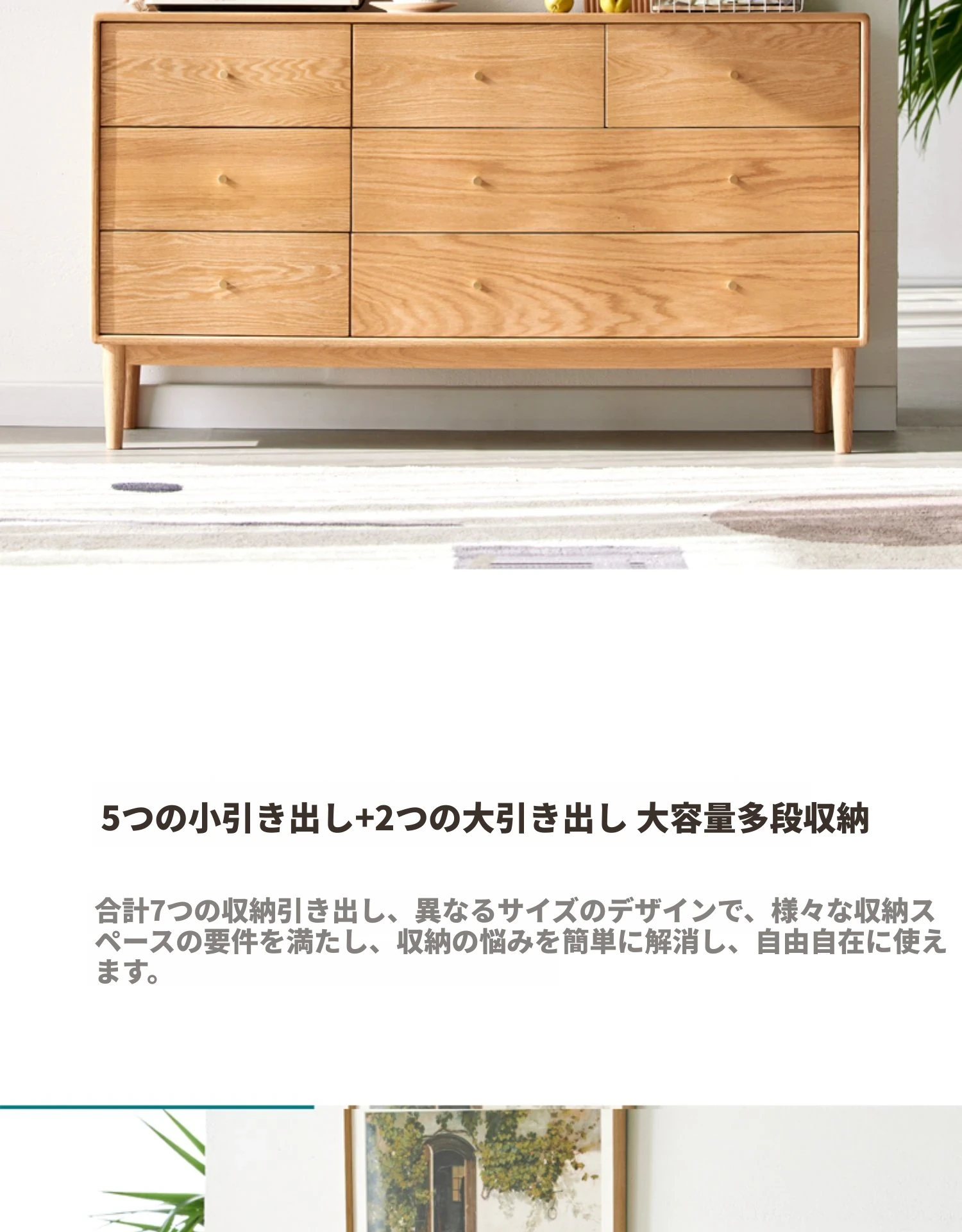 原木の贅沢、北欧風シンプルデザインの全木製七段チェスト。オーク材使用で耐久性抜群、寝室にぴったりの収納キャビネット。壁に寄せて使える省スペース設計で、スタイリッシュにお部屋を整頓!