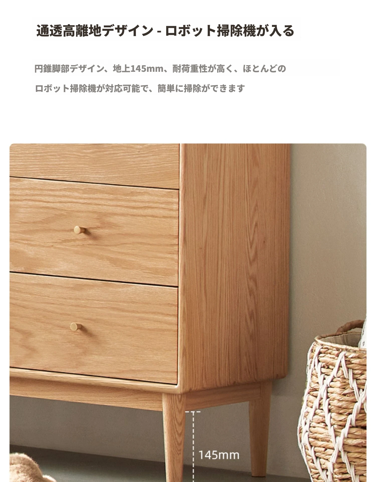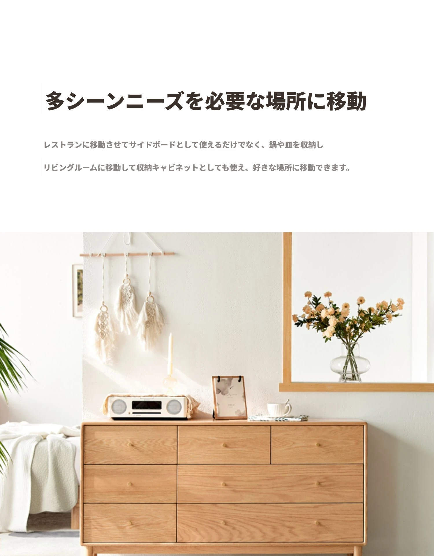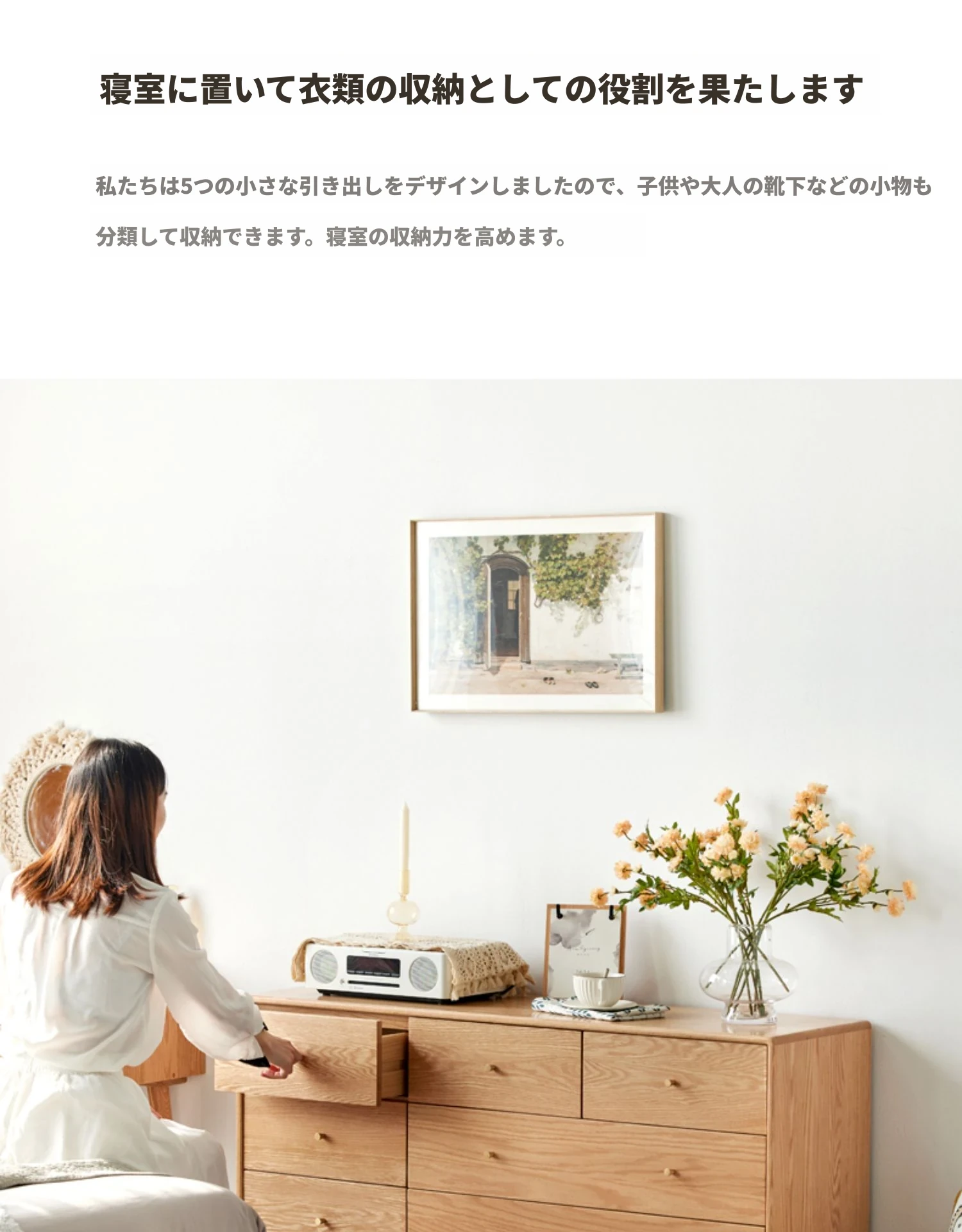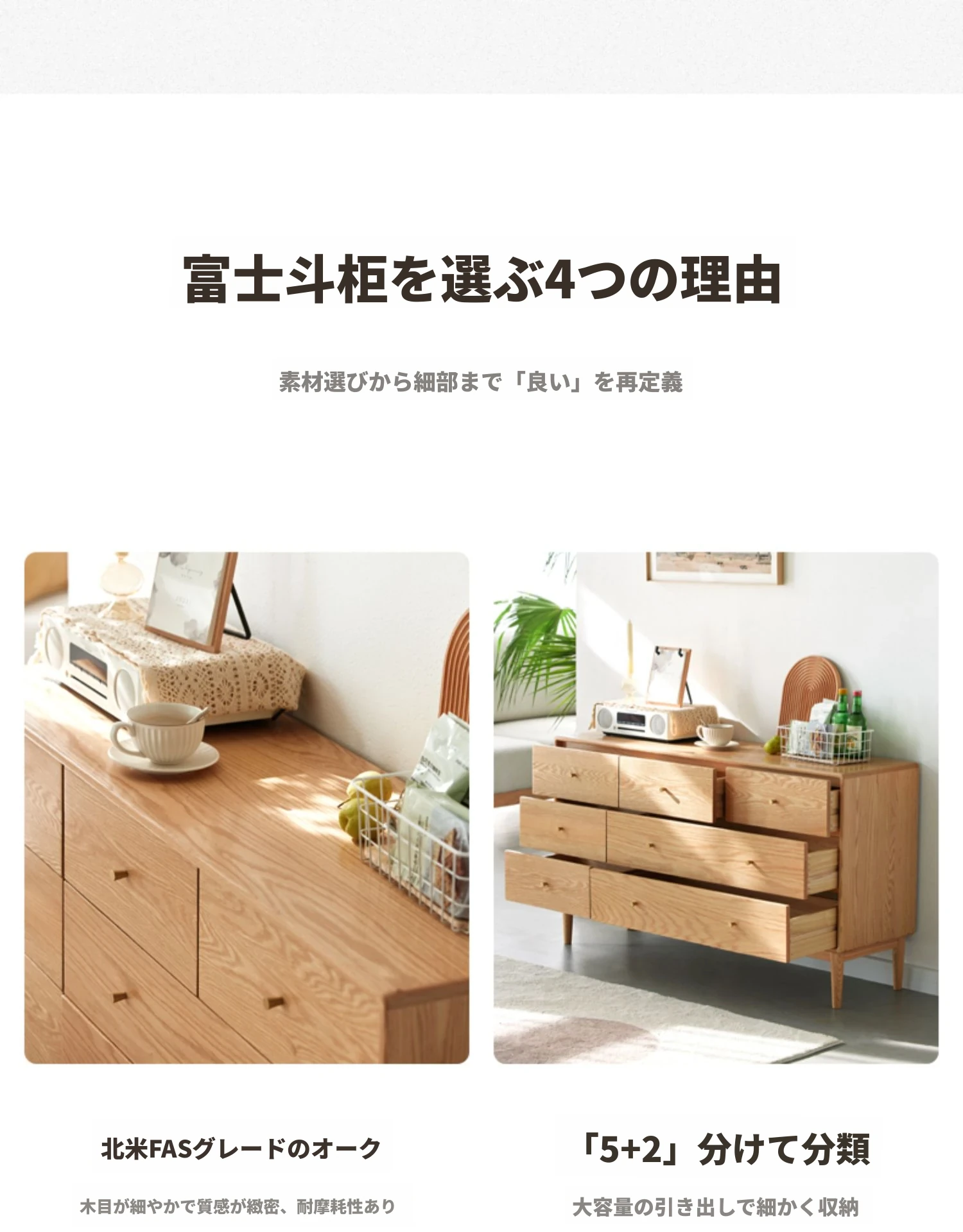 原木の贅沢、北欧風シンプルデザインの全木製七段チェスト。オーク材使用で耐久性抜群、寝室にぴったりの収納キャビネット。壁に寄せて使える省スペース設計で、スタイリッシュにお部屋を整頓!