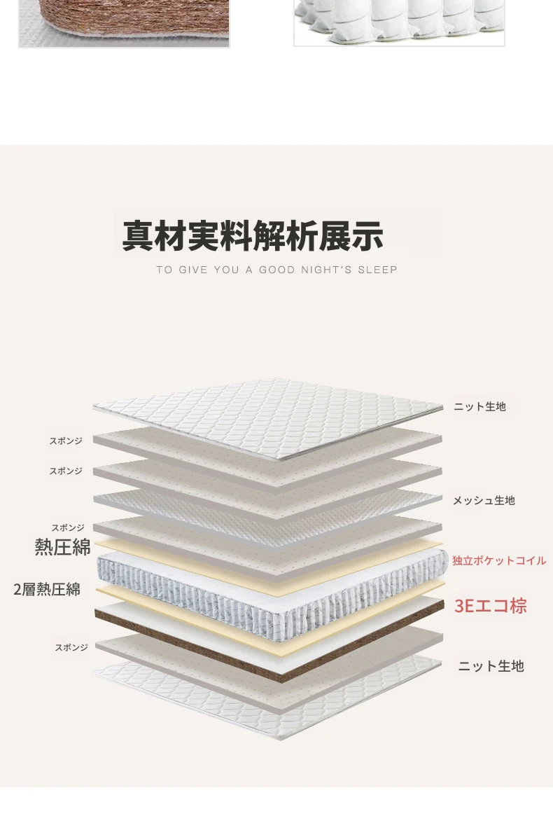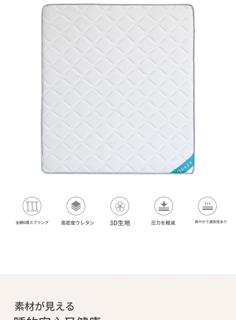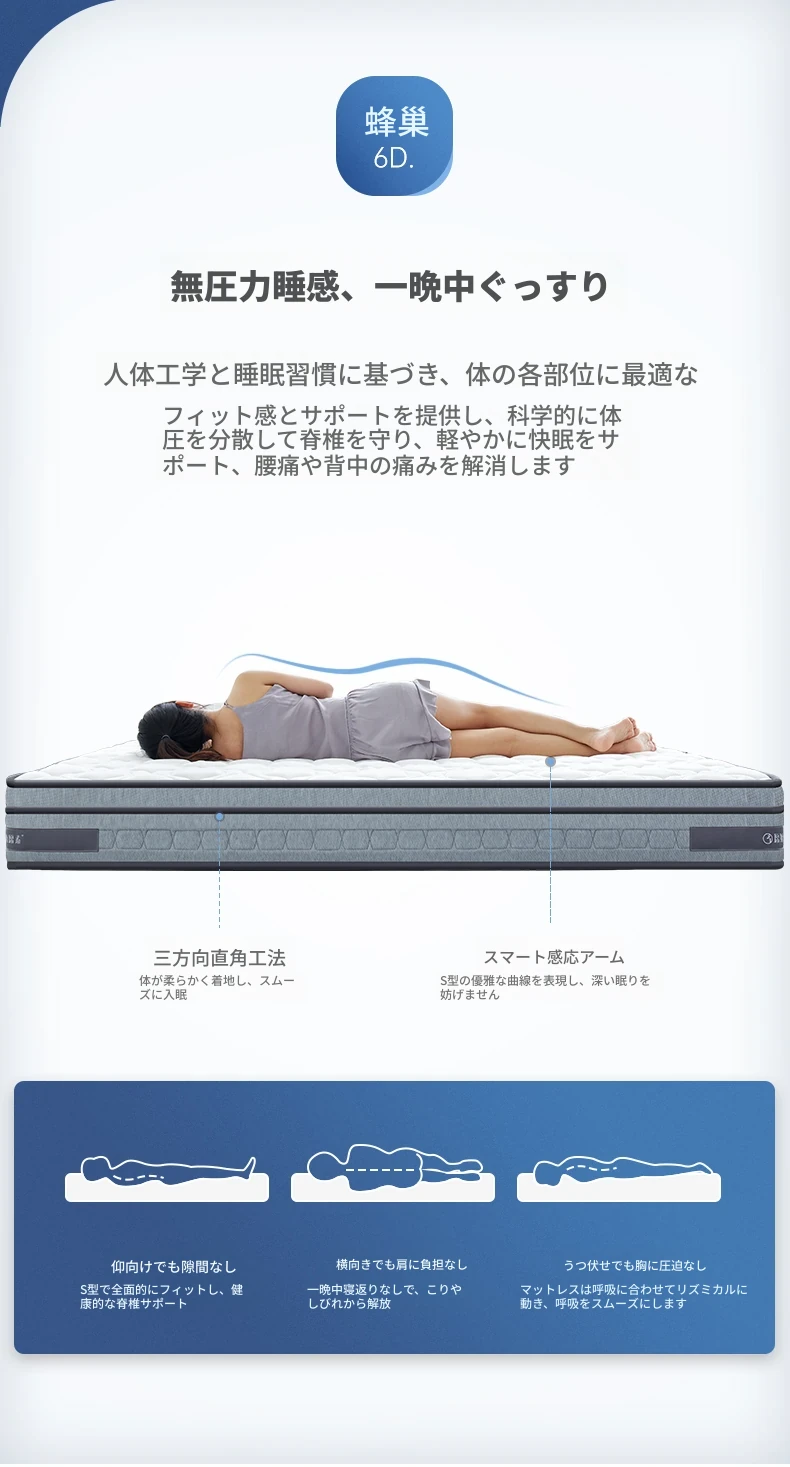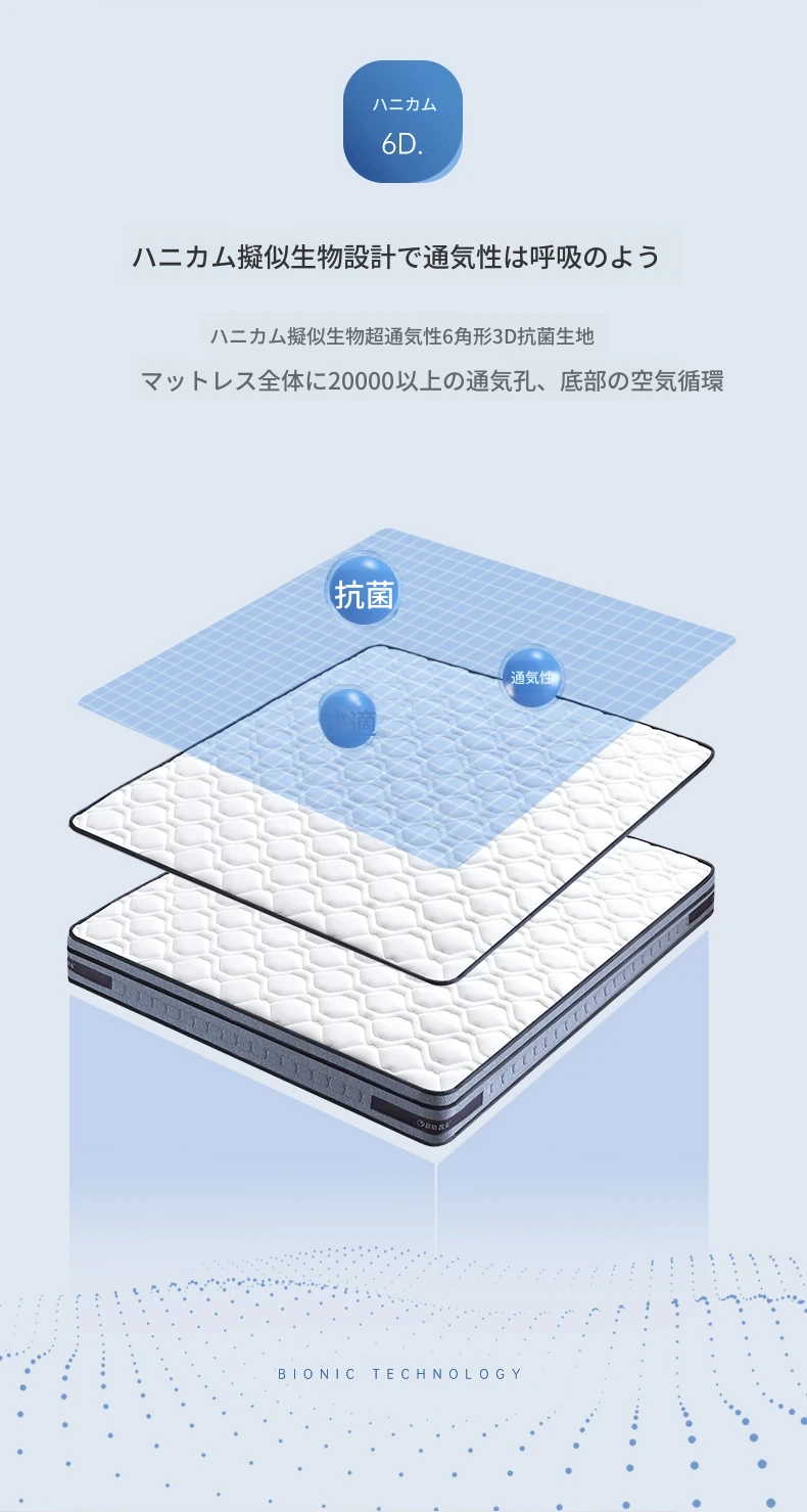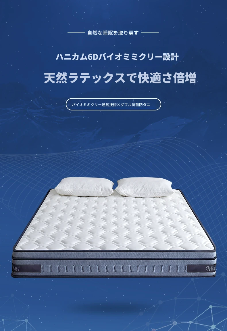 オリジナルエレメント・ハニカム6D天然ラテックスマットレス 防ダニ・抗菌 ショックレス・通気性に優れたココナッツスプリングマットレス 快適な眠りをサポートする理想の寝具!