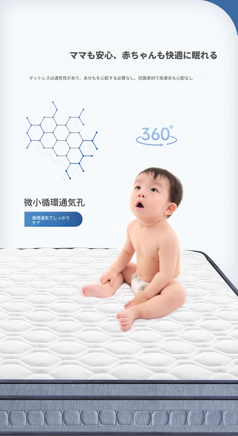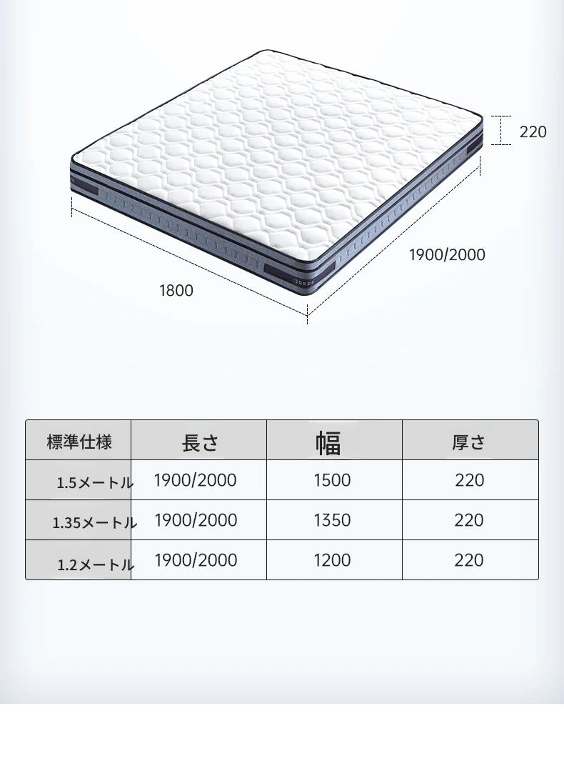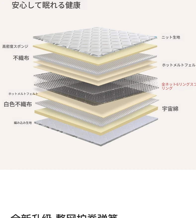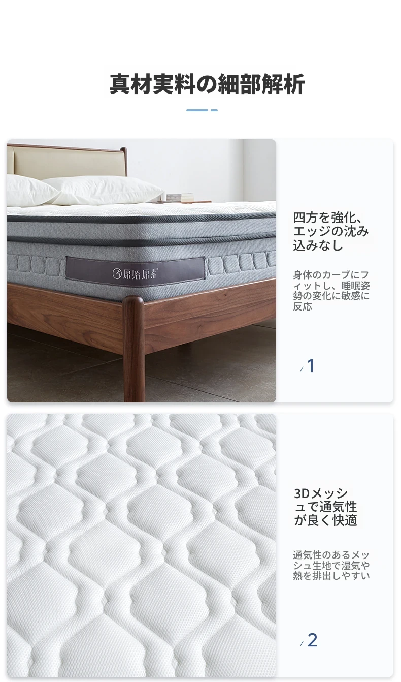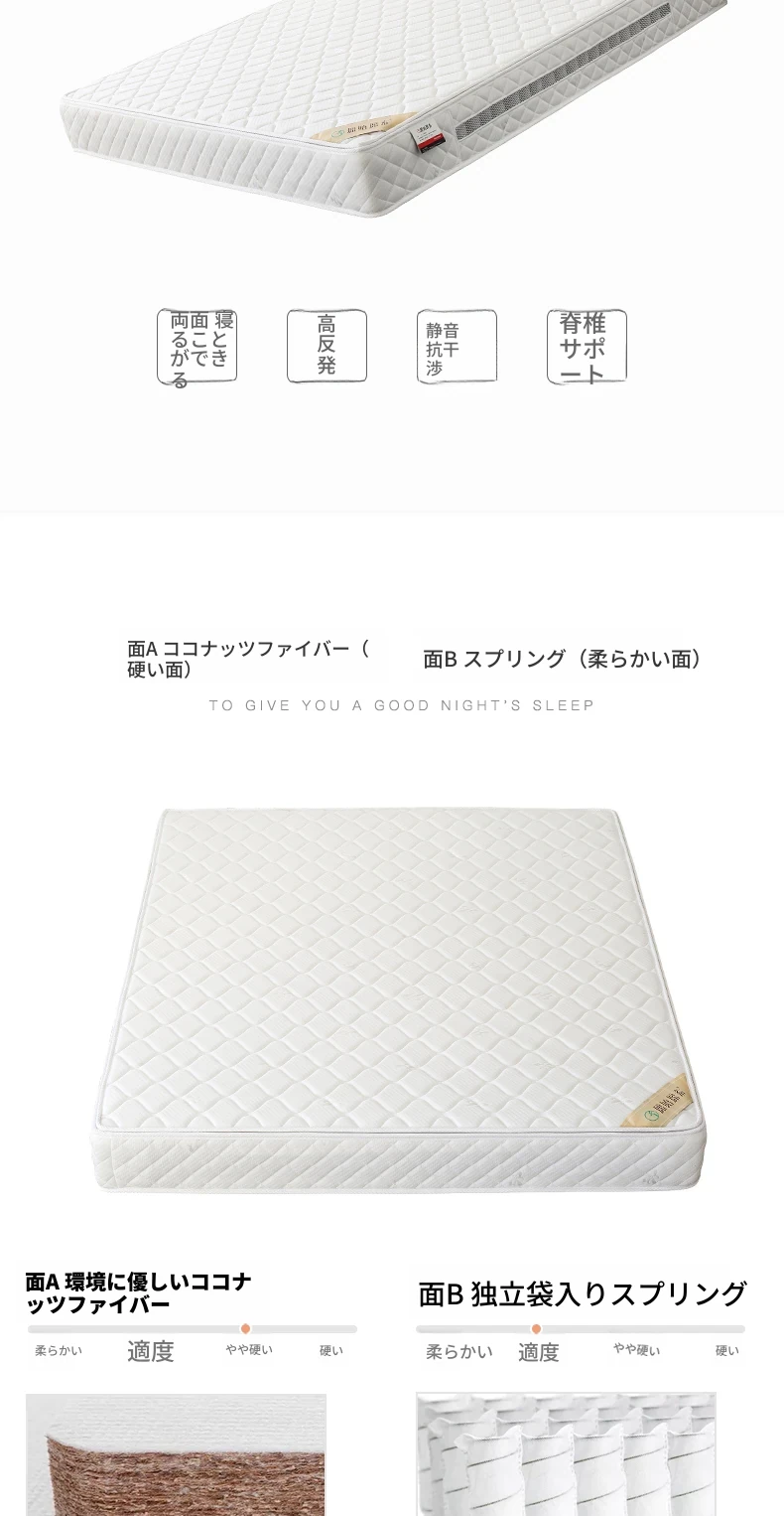オリジナルエレメント・ハニカム6D天然ラテックスマットレス 防ダニ・抗菌 ショックレス・通気性に優れたココナッツスプリングマットレス 快適な眠りをサポートする理想の寝具!