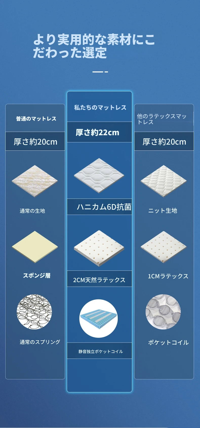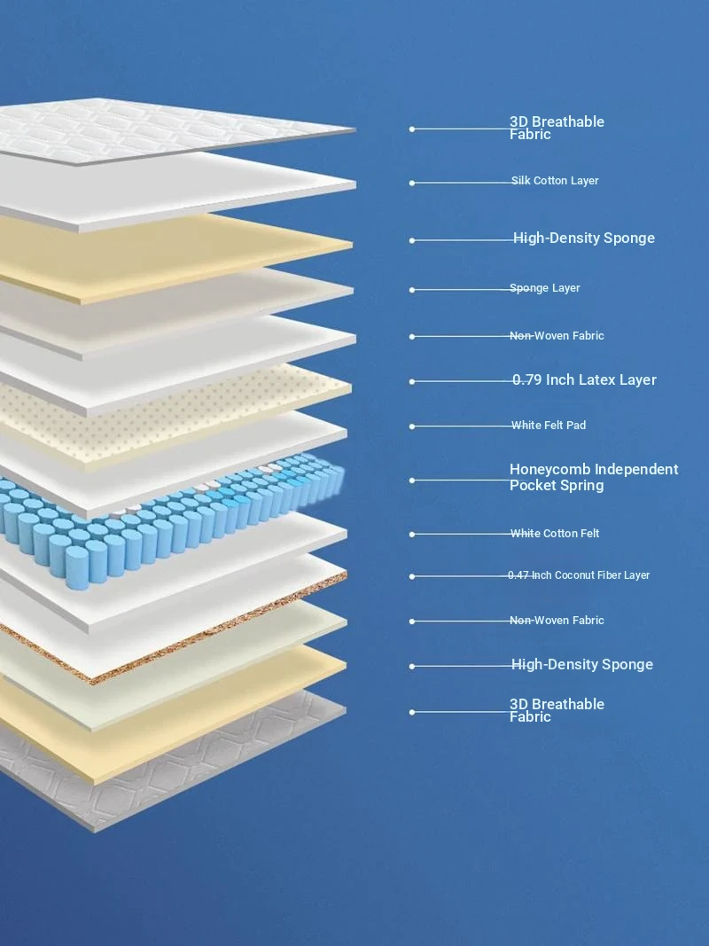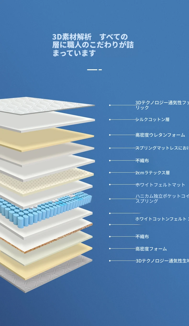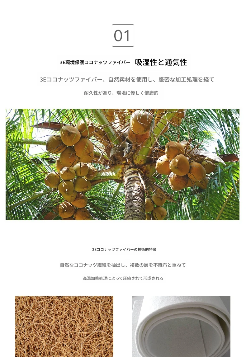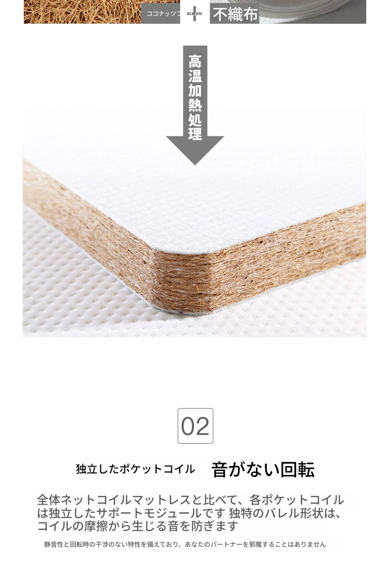 オリジナルエレメント・ハニカム6D天然ラテックスマットレス 防ダニ・抗菌 ショックレス・通気性に優れたココナッツスプリングマットレス 快適な眠りをサポートする理想の寝具!