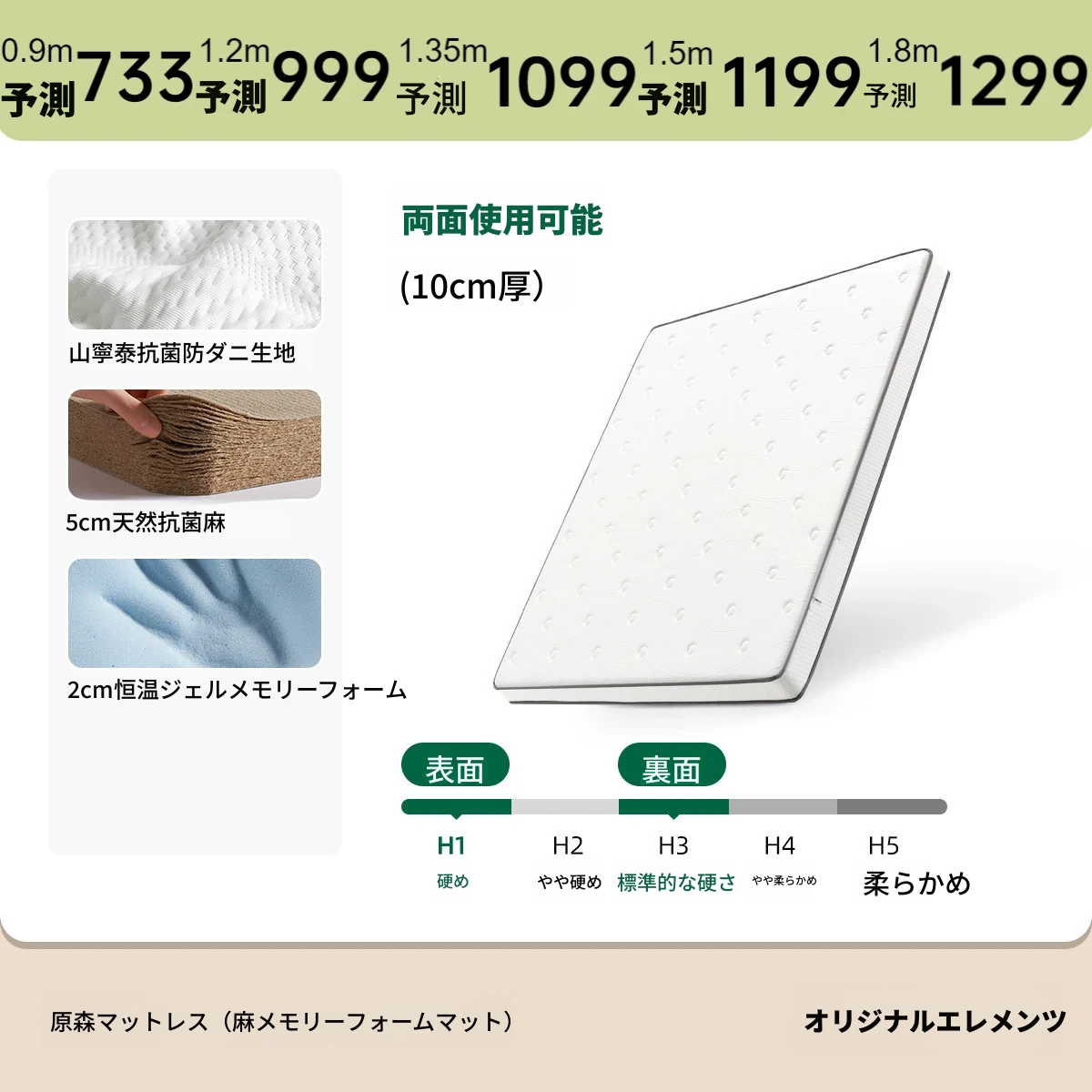 原森マットレス(黄麻メモリーフォームマット)-10CM