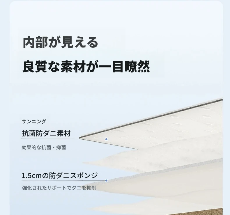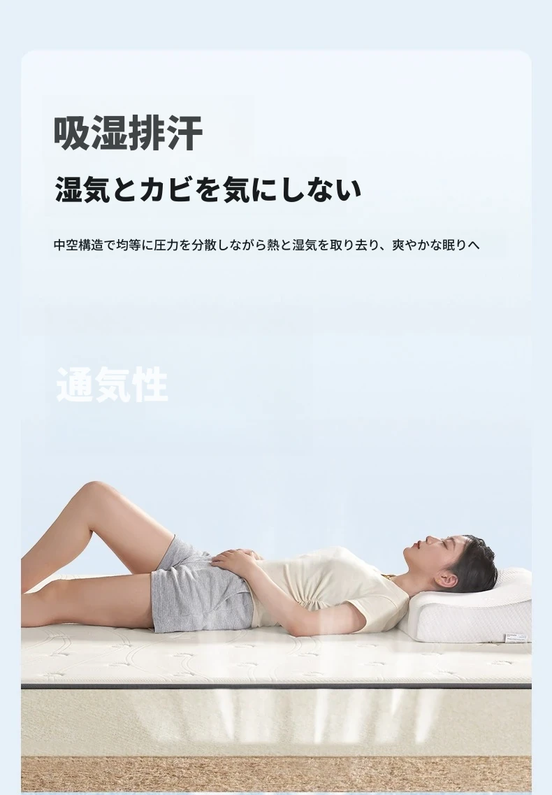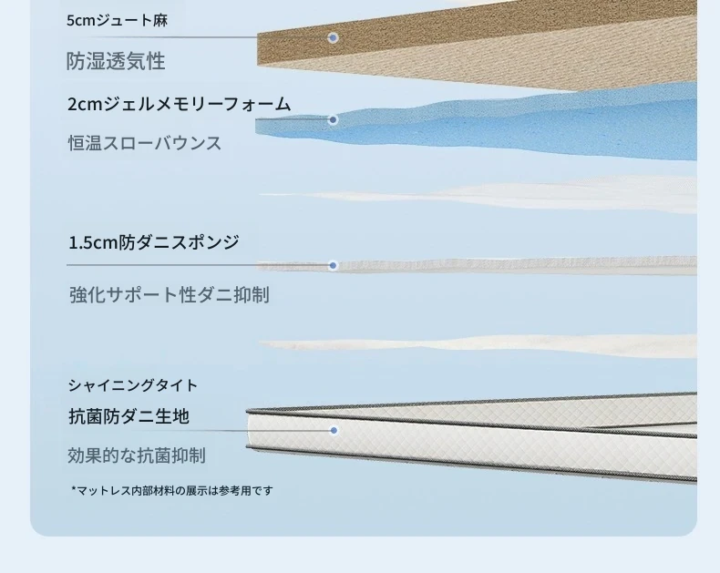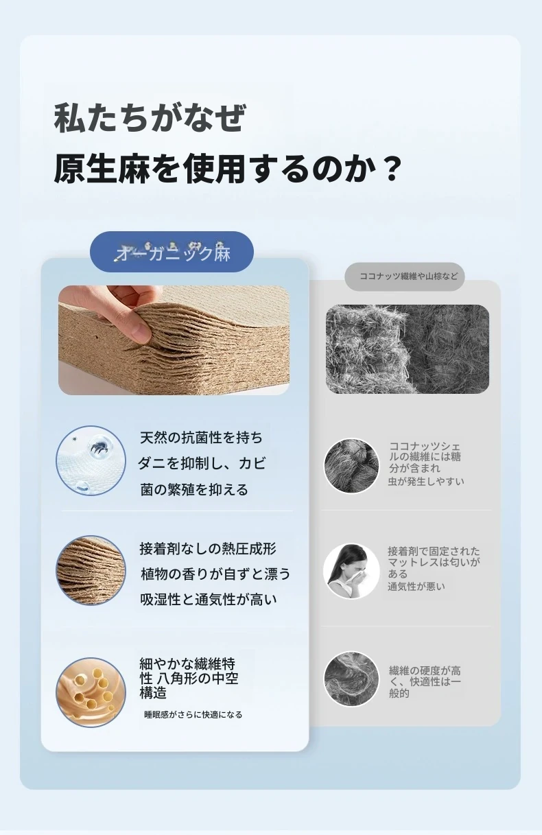 原材料使用の抗菌防ダニ、天然ジュート使用のノーグルー記憶フォームマットレス - 自宅で使える背中を守る通気性抜群の薄型ハードマット!快適な睡眠をサポートします。