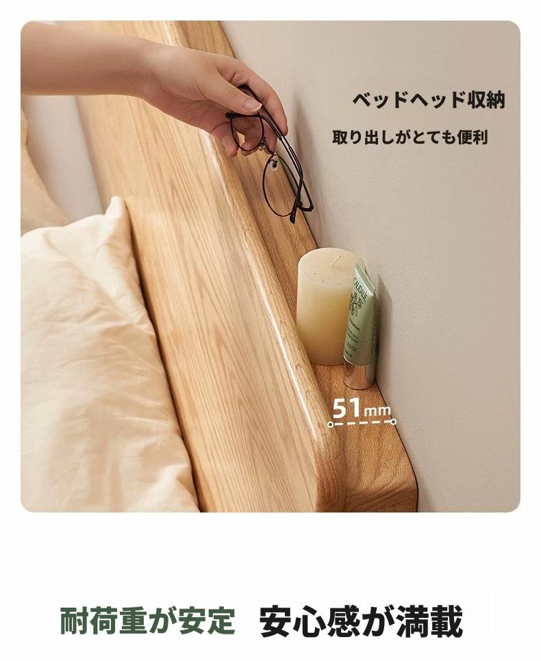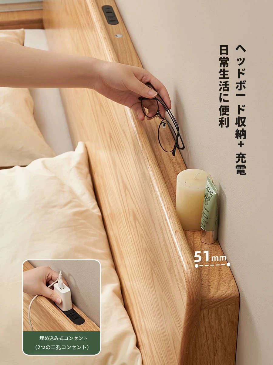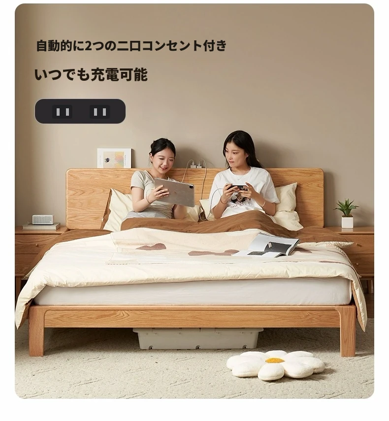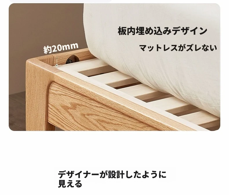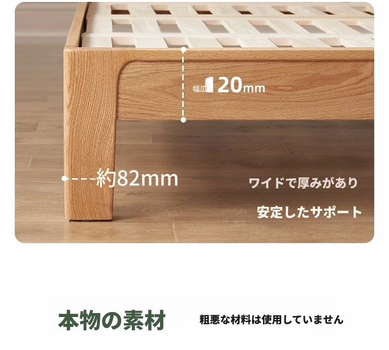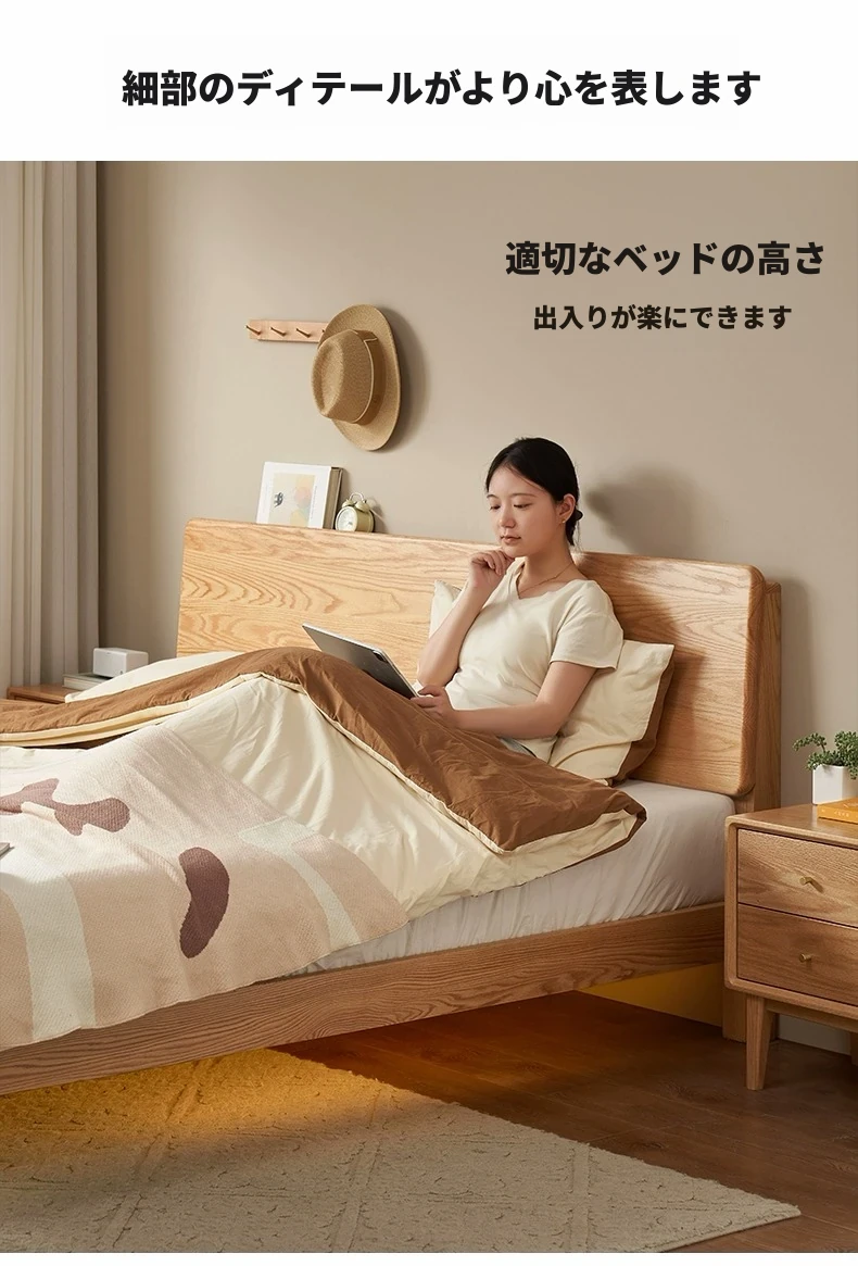 オリジナルナチュラル北欧スタイル無垢材オークダブルベッド 1.8m 幅 広々とした主寝室用フルウッドベッド - 自然の風合いを楽しむ上質な寝空間を提供!