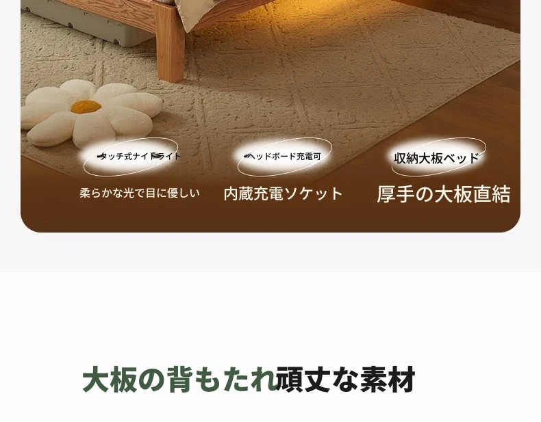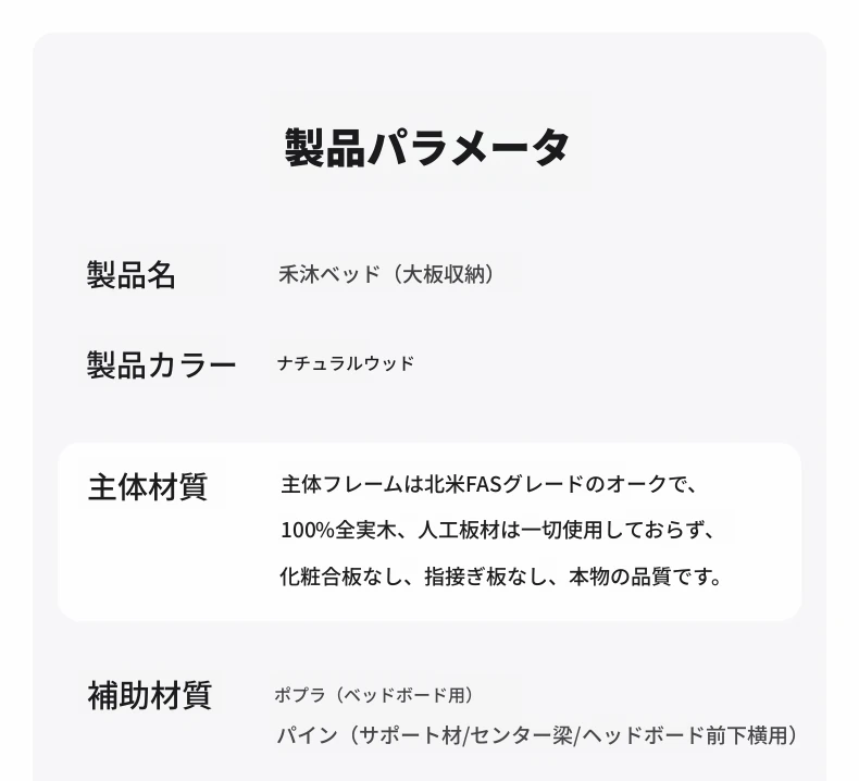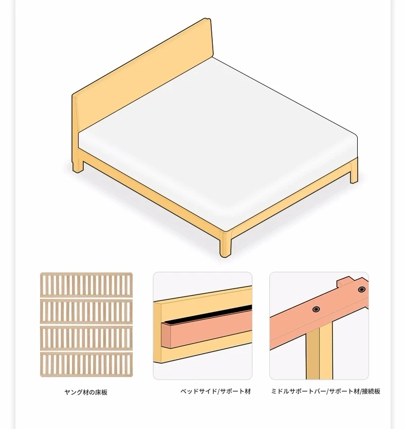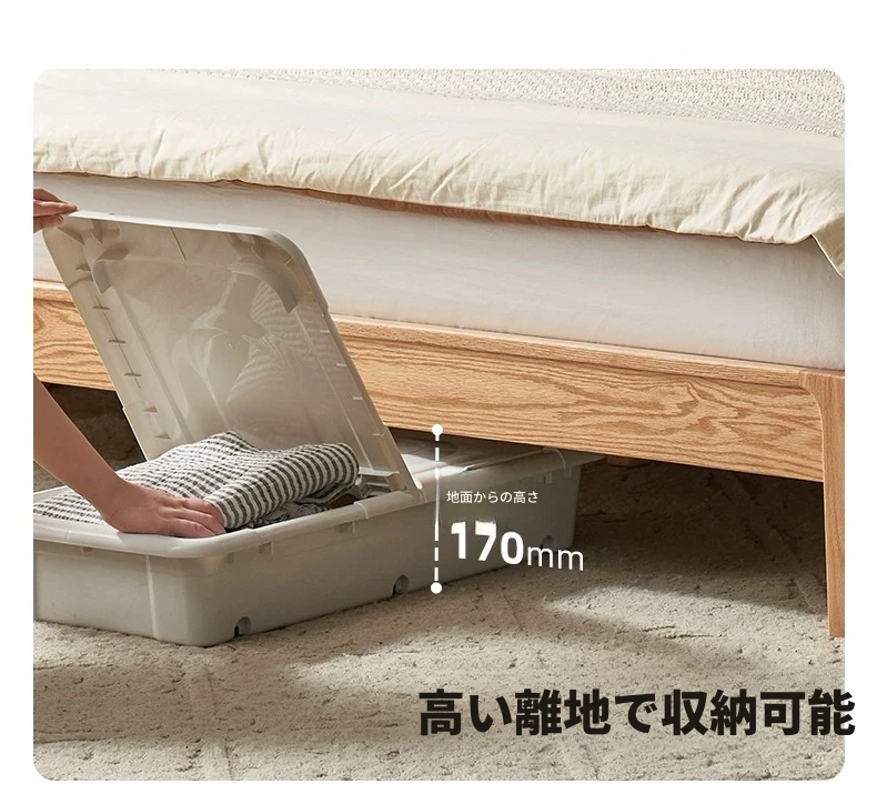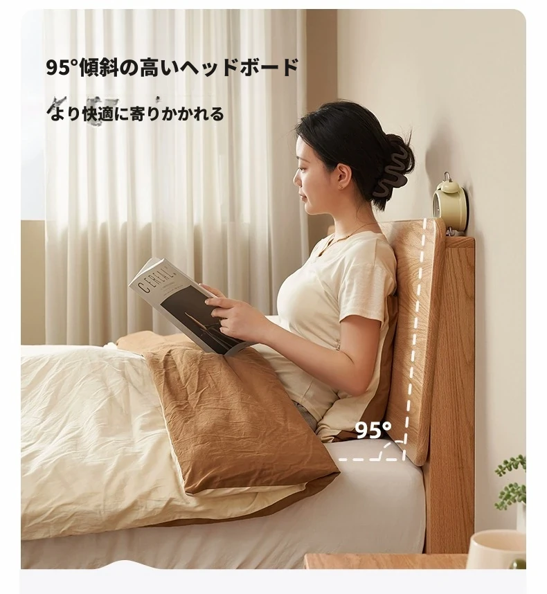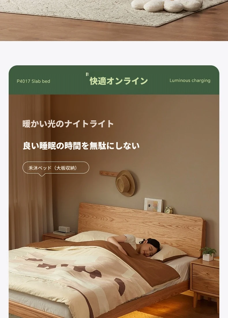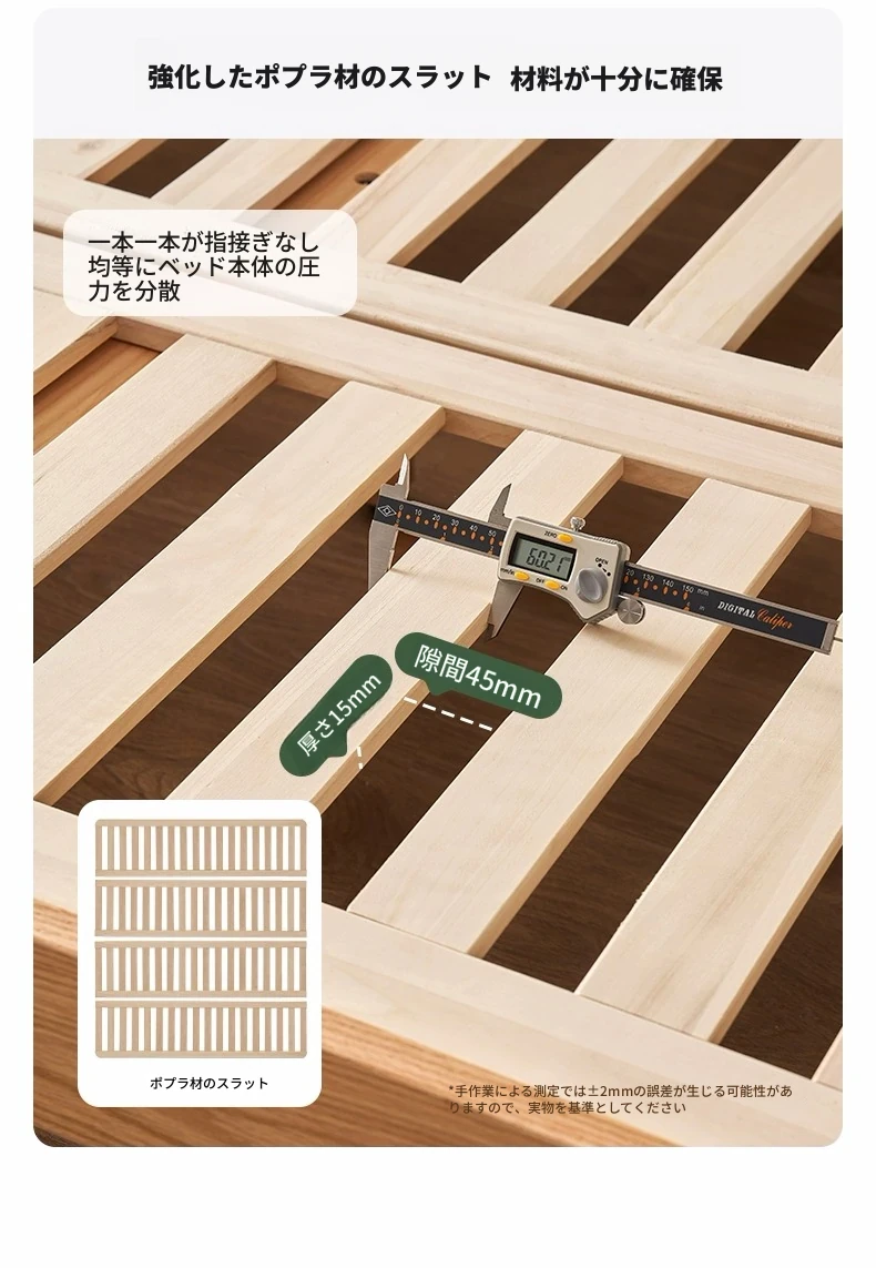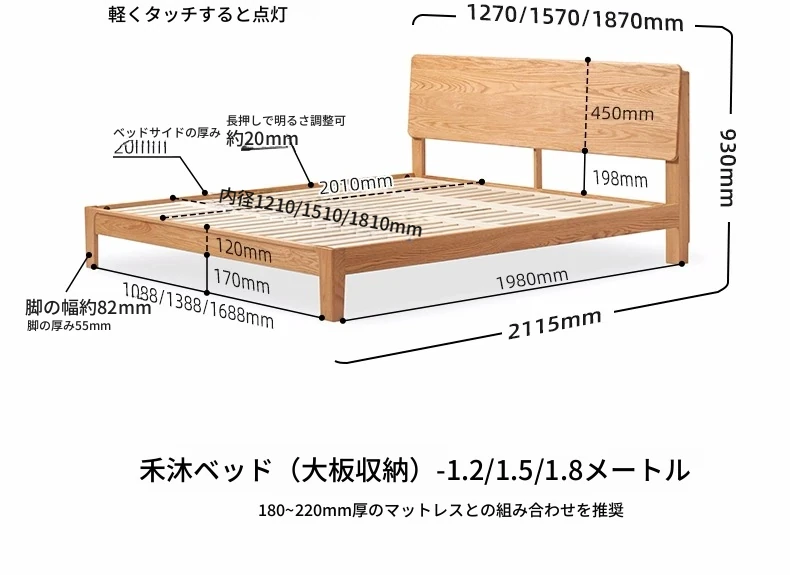 オリジナルナチュラル北欧スタイル無垢材オークダブルベッド 1.8m 幅 広々とした主寝室用フルウッドベッド - 自然の風合いを楽しむ上質な寝空間を提供!