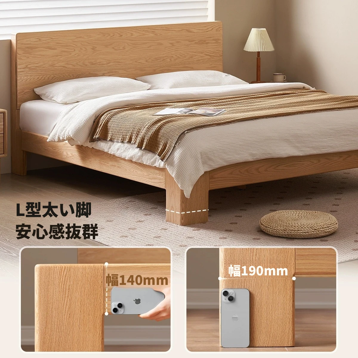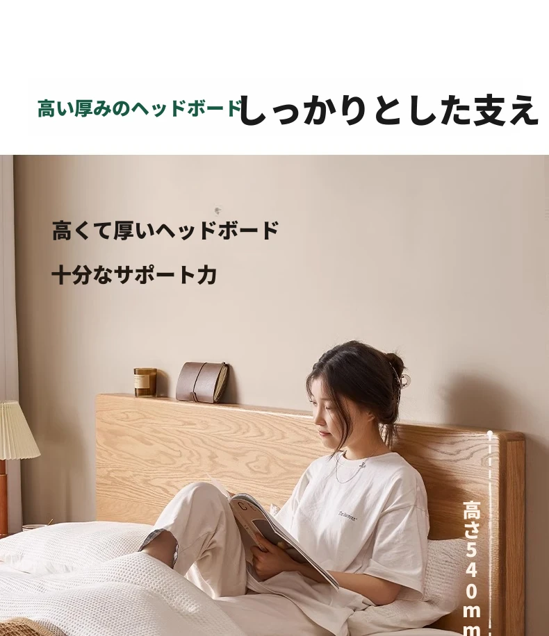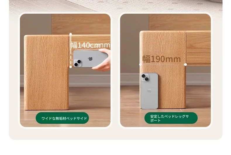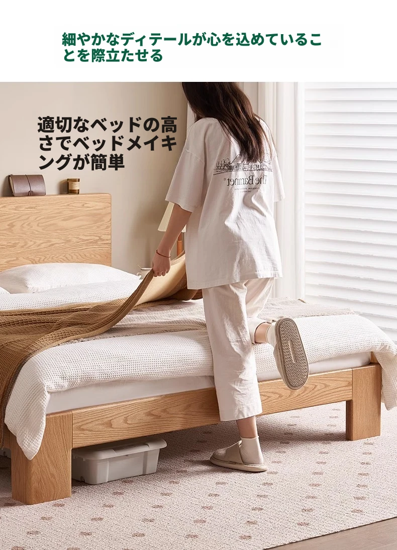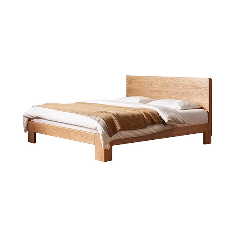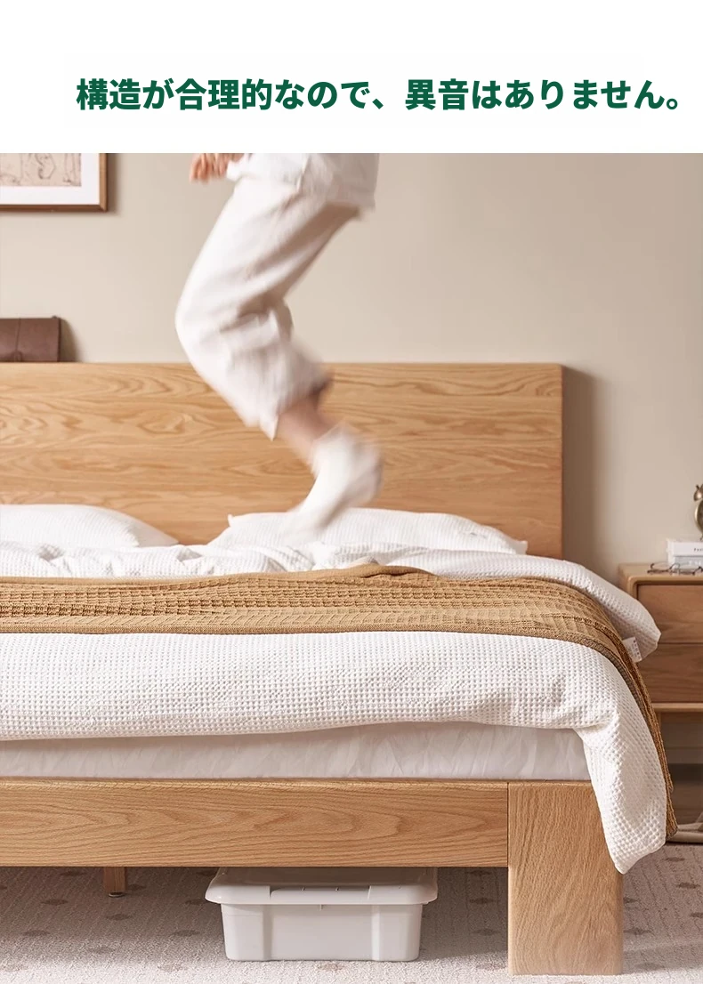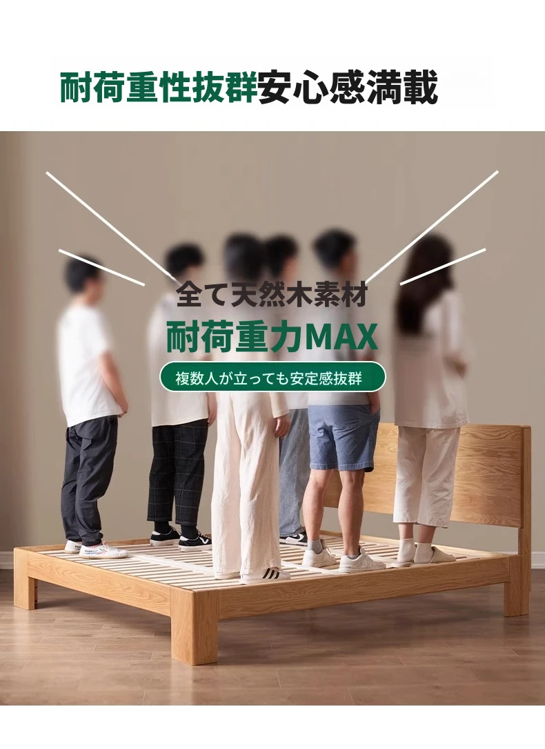 原木の魅力!モダンミニマリストオーク無垢材ベッド【1.8m】【主寝室用】【ダブルベッド】家庭にぴったりのスタイリッシュなデザイン、ゆったり寝られる大板ベッドで快適な眠りを実現!