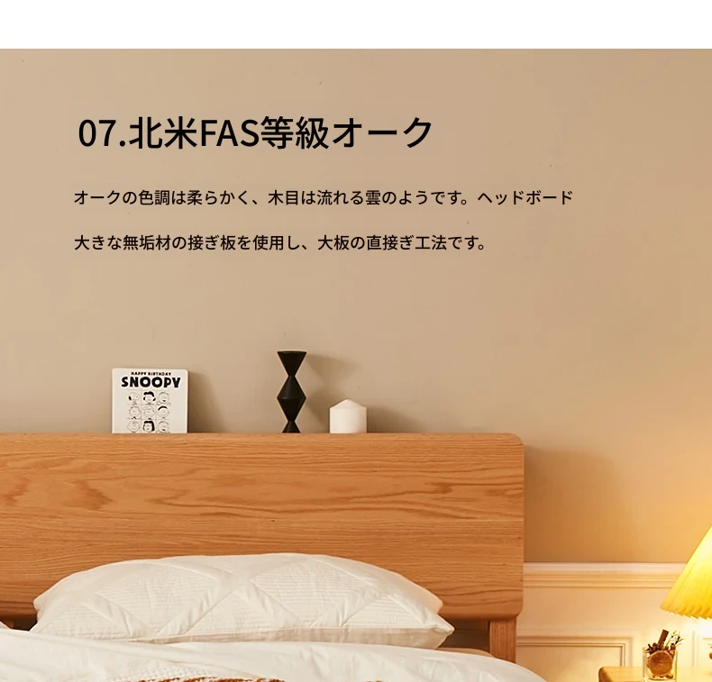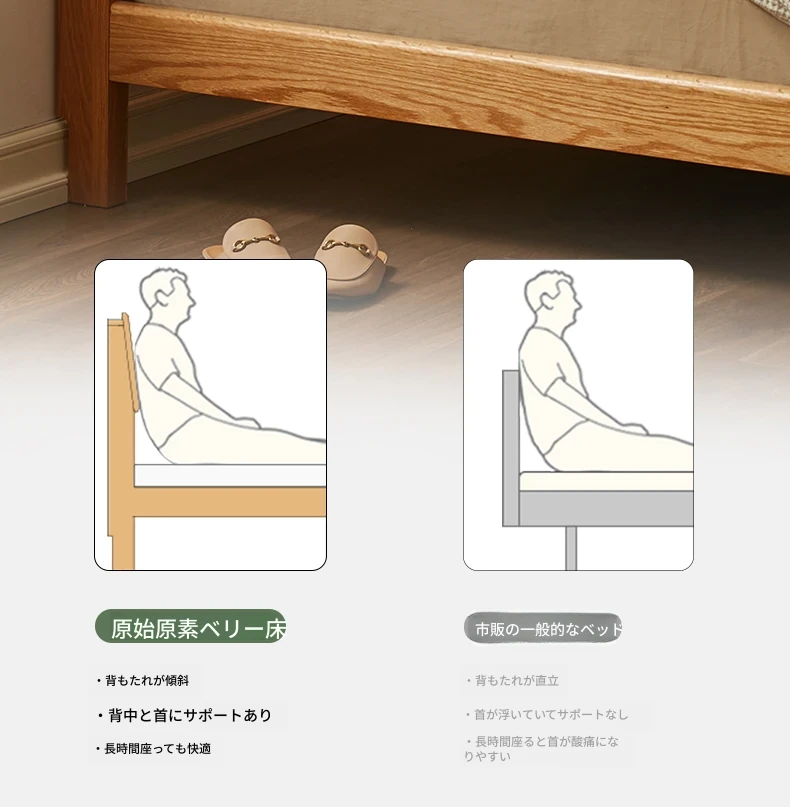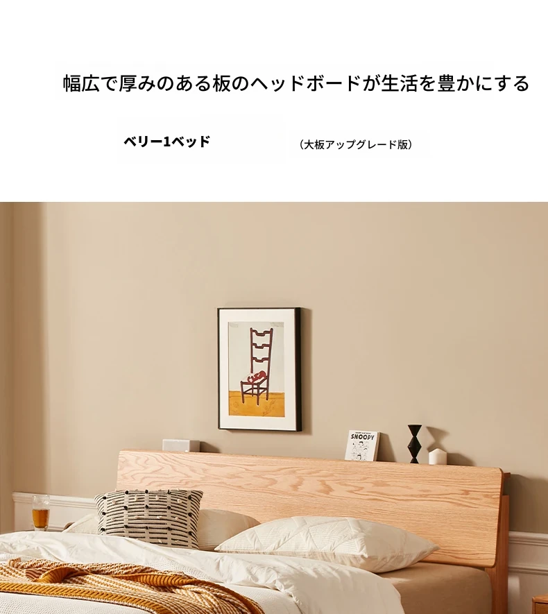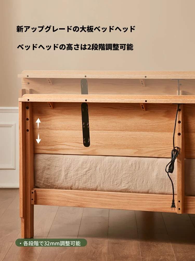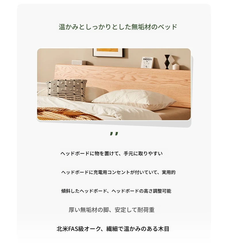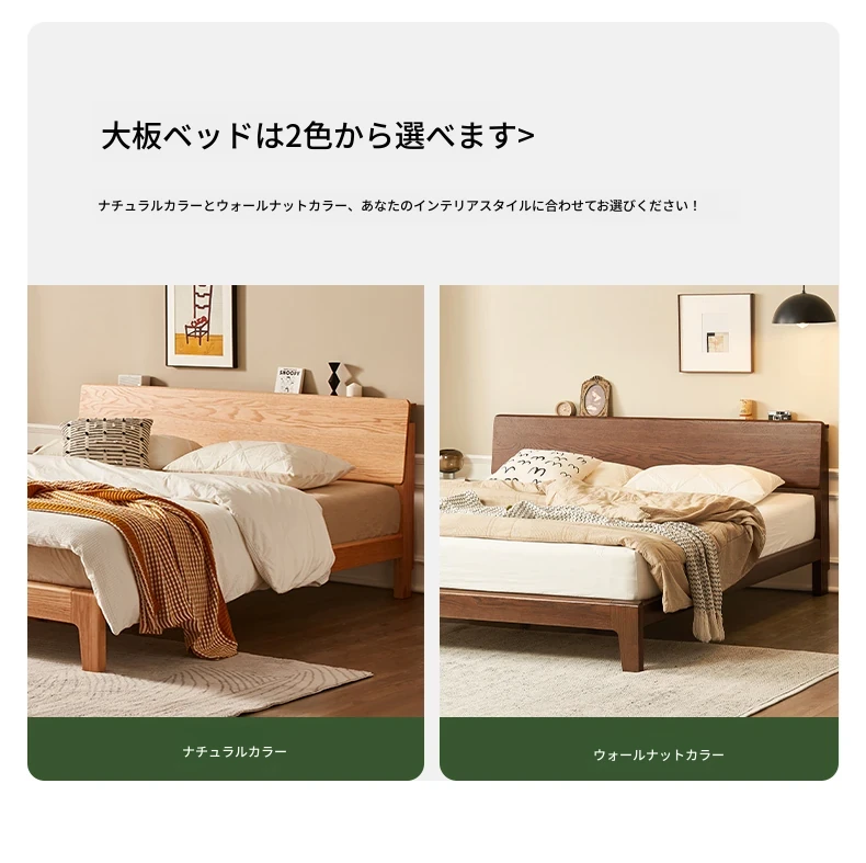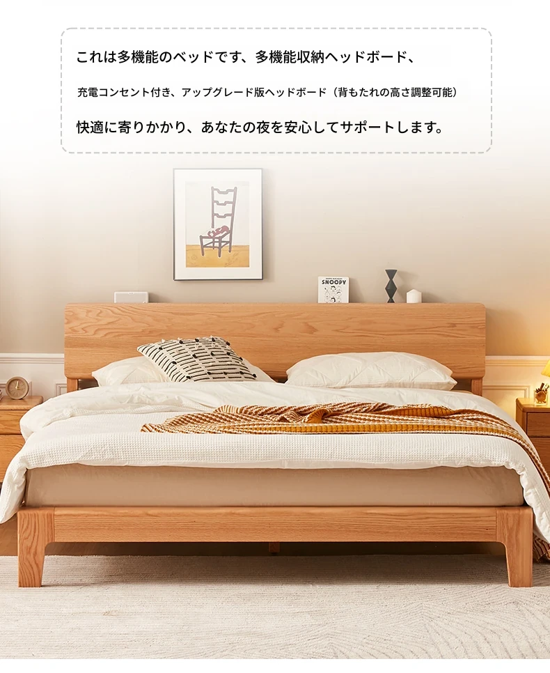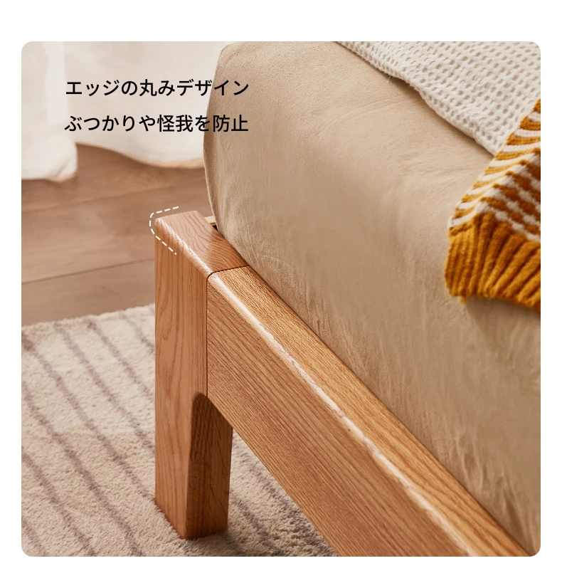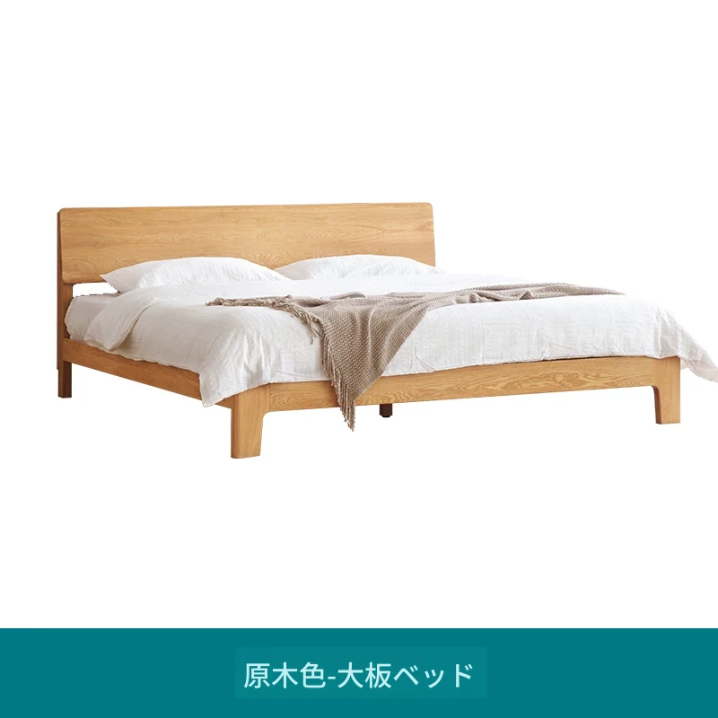 原木風オークの二人用ベッド - 北欧モダンの全実木デザインで、シンプル且つスタイリッシュ!小スペースにもぴったりな寝室家具。上質な眠りをお届けします。
