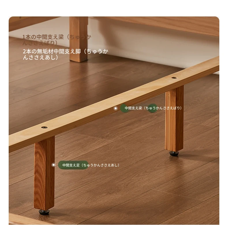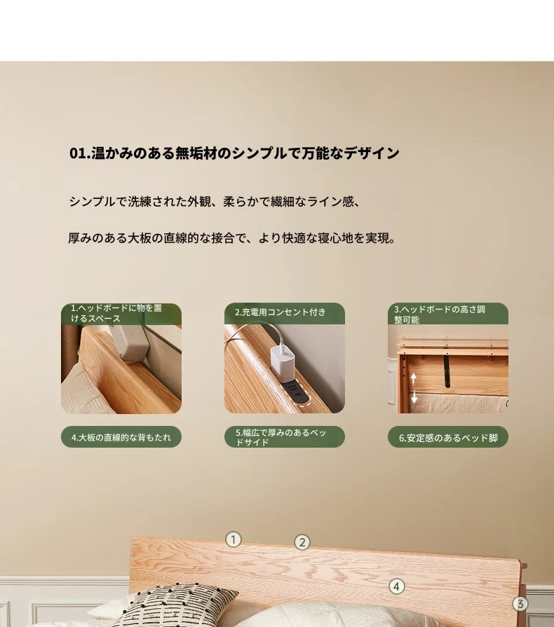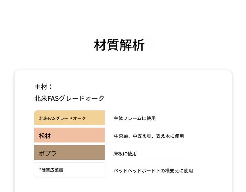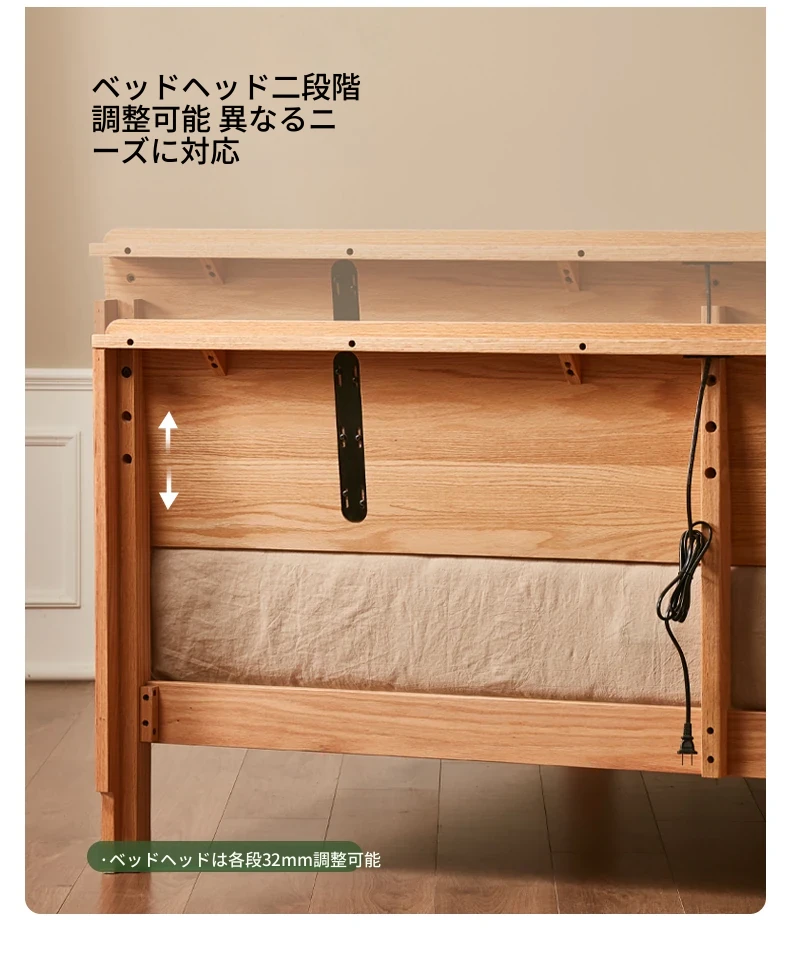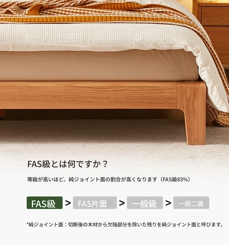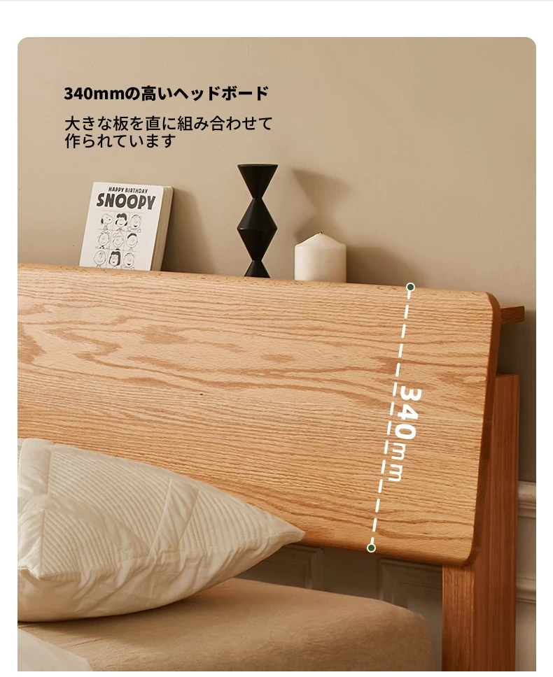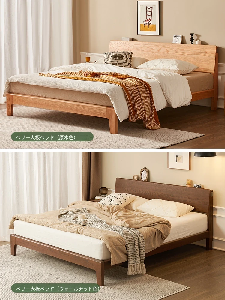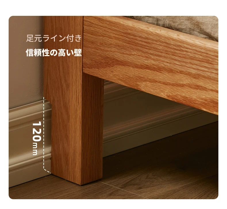 原木風オークの二人用ベッド - 北欧モダンの全実木デザインで、シンプル且つスタイリッシュ!小スペースにもぴったりな寝室家具。上質な眠りをお届けします。