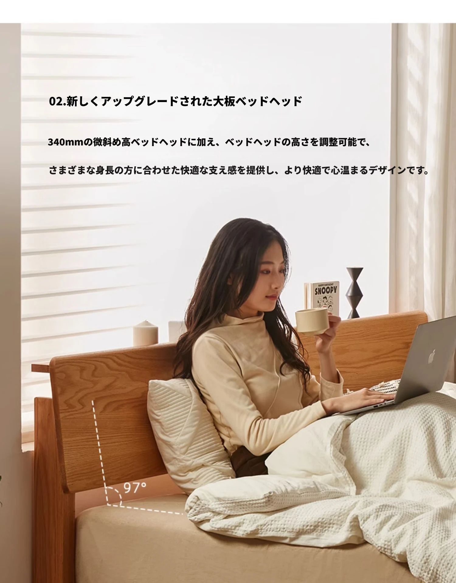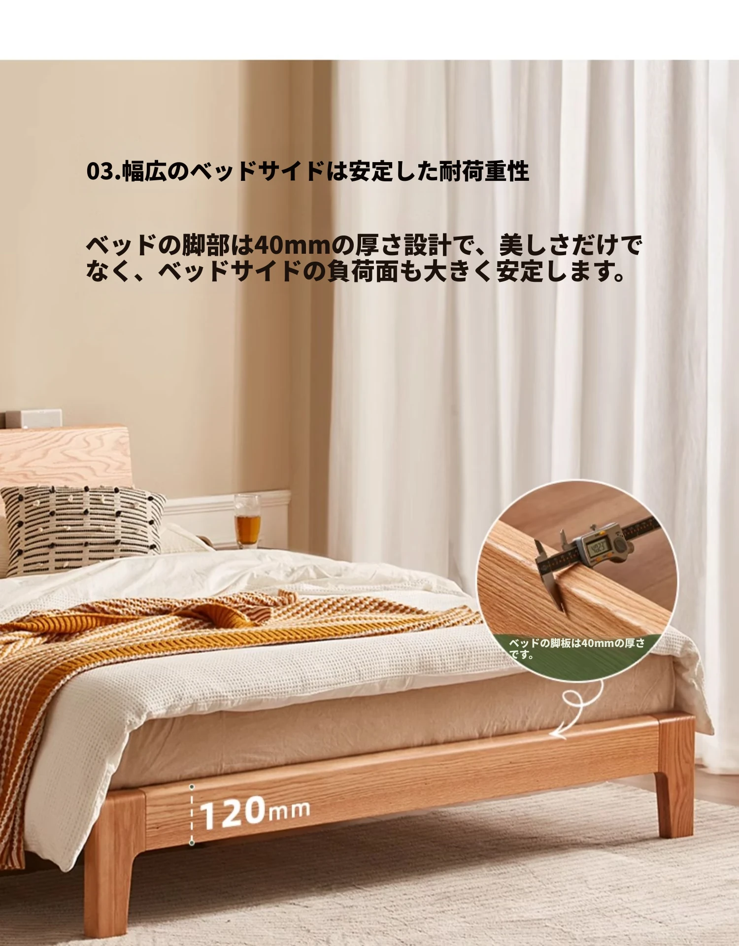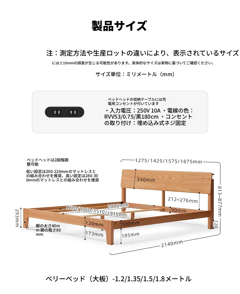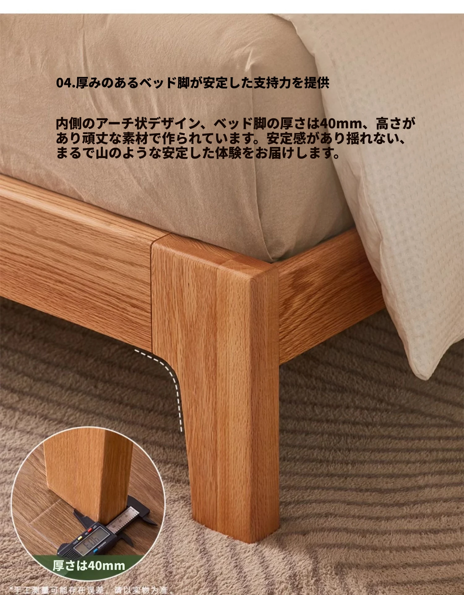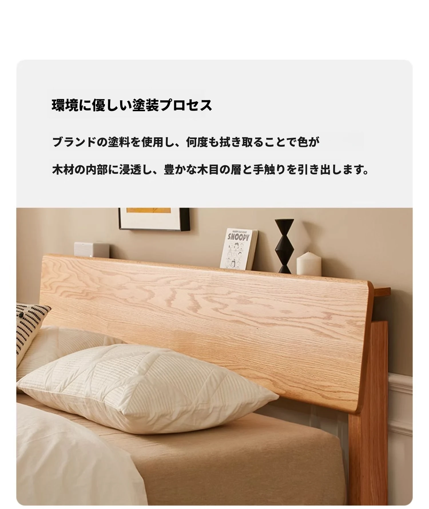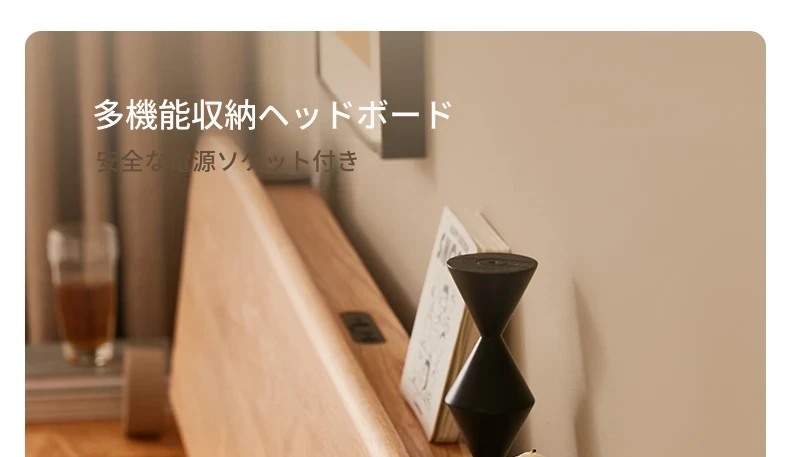 原木風オークの二人用ベッド - 北欧モダンの全実木デザインで、シンプル且つスタイリッシュ!小スペースにもぴったりな寝室家具。上質な眠りをお届けします。