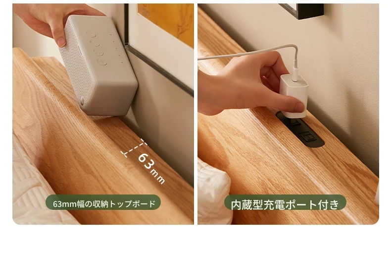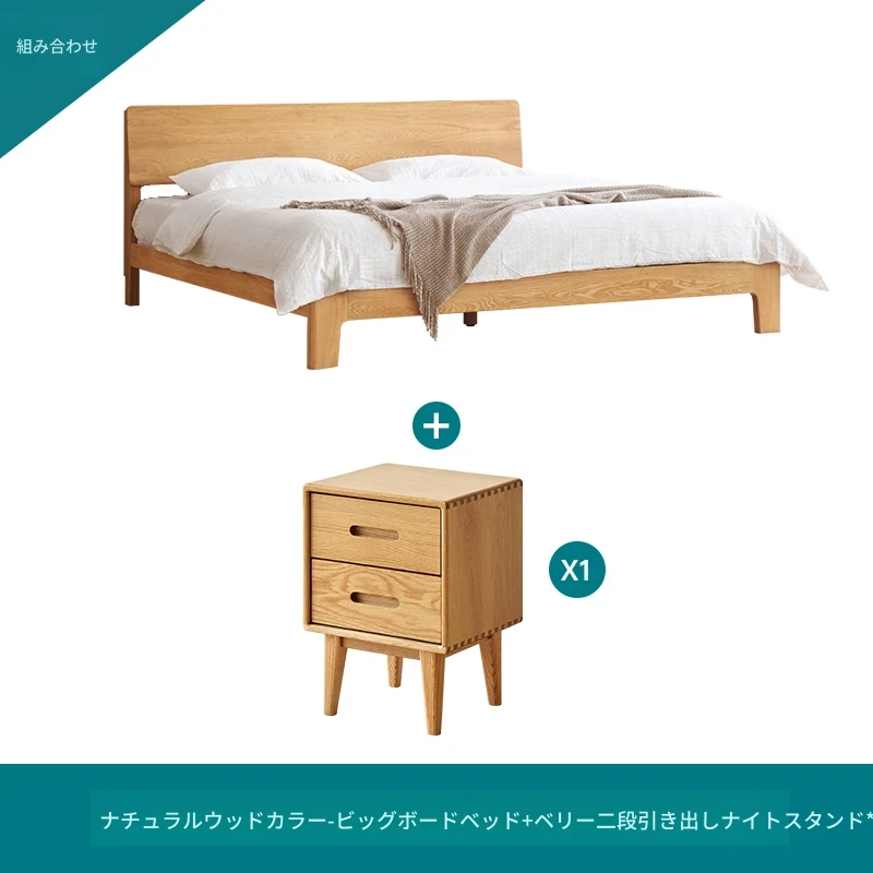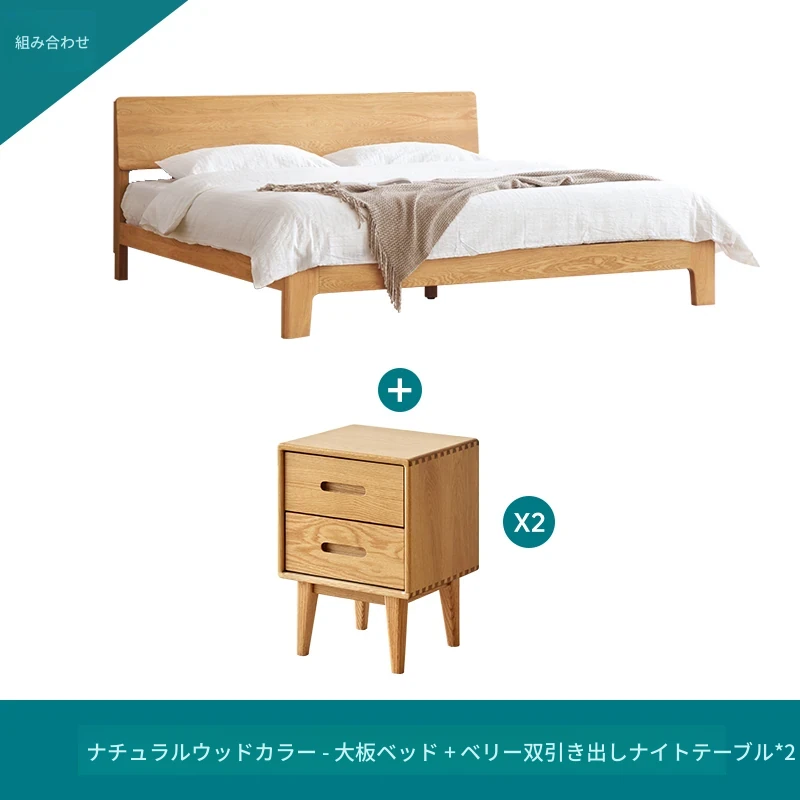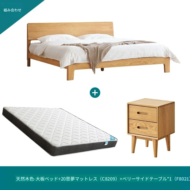 ナチュラルカラー大板ベッド (F8015) + 20サモンマットレス (C8209) + ベリーサイドテーブル *2 (F8021)