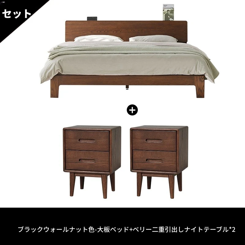 黒 walnut 色 - 大板ベッド (F8015) + ベリーサイドテーブル *2 (F8021)