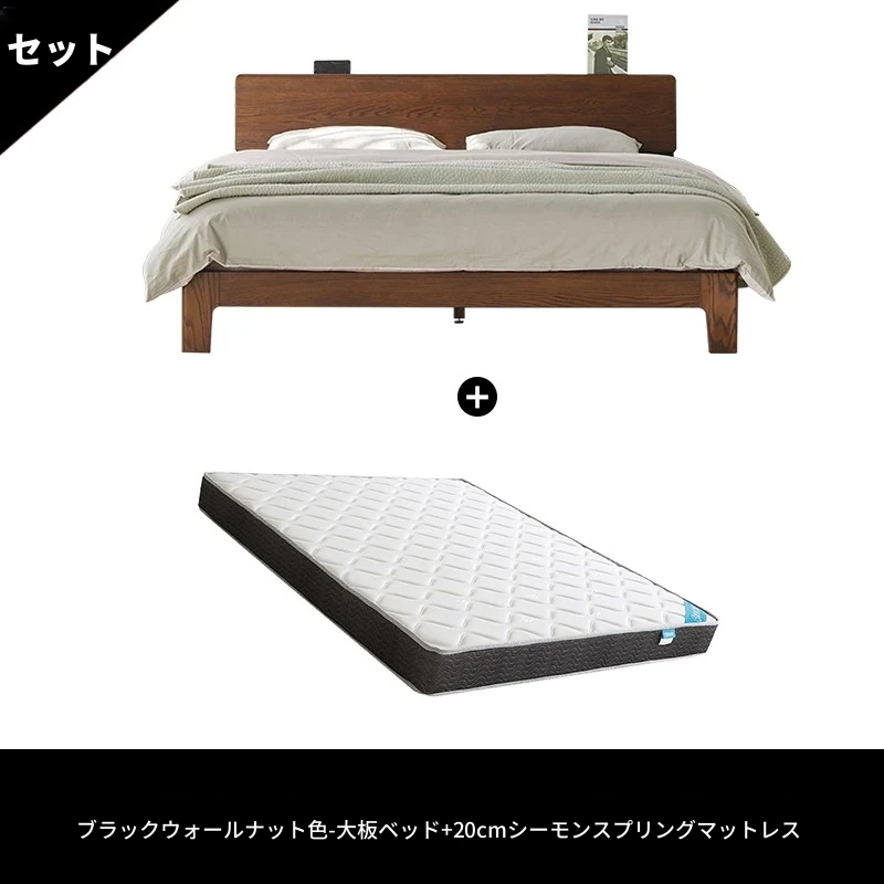 黒 walnut 色 - 大板ベッド (F8015) + 20サモンマットレス (C8209)