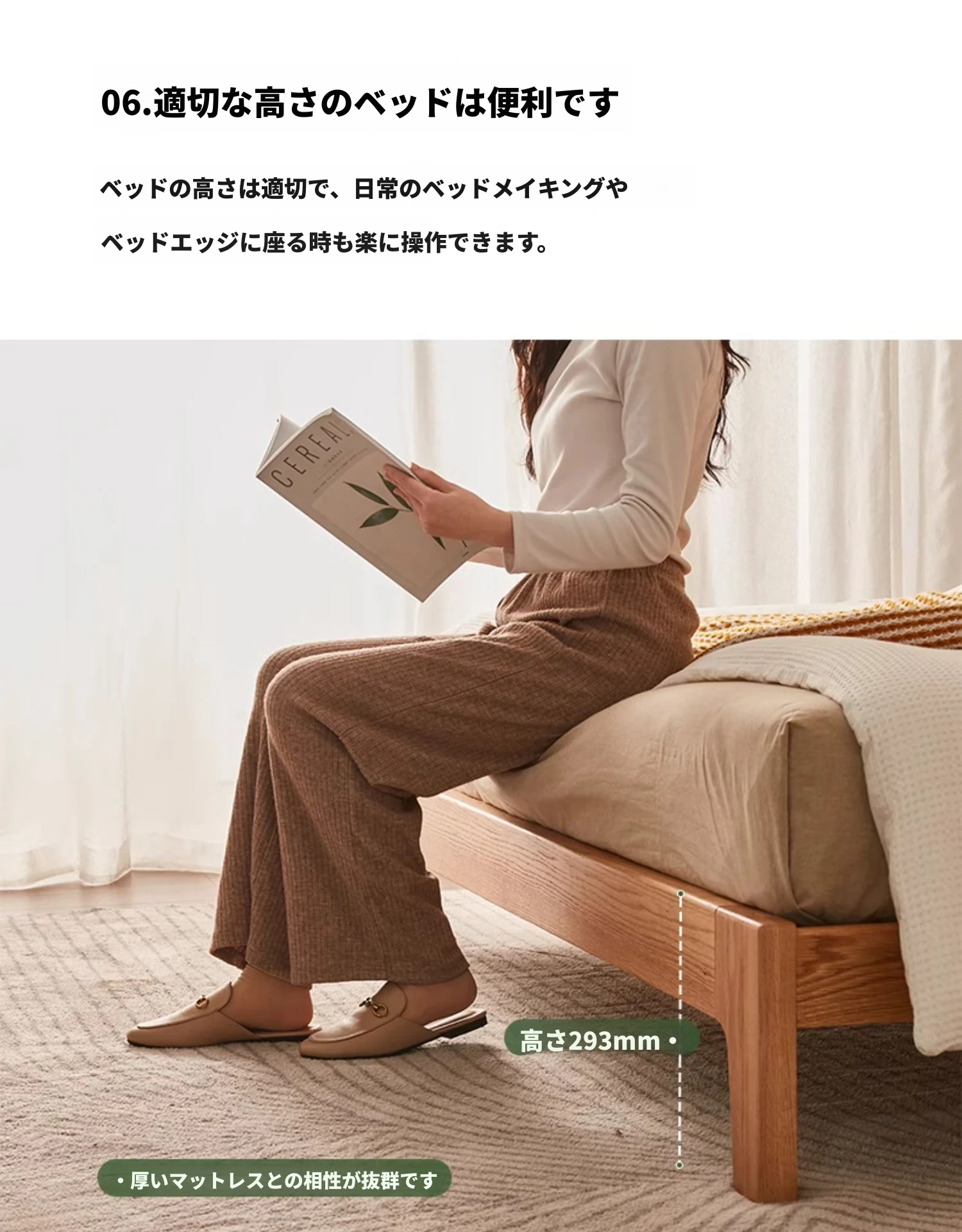 ナチュラルカラー大板ベッド (F8015) + 20サモンマットレス (C8209) + ベリーサイドテーブル *1 (F8021)