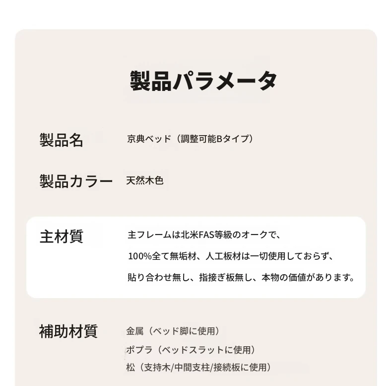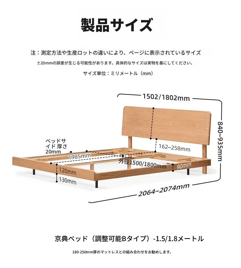 原木色-京典床(床头4档可调)+20CMマットレス