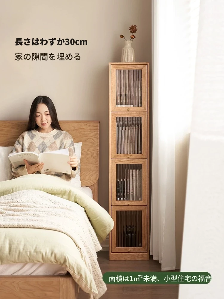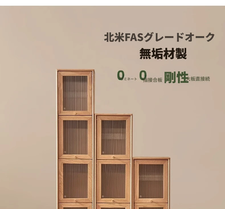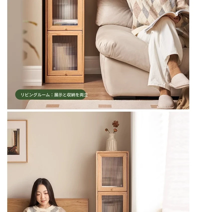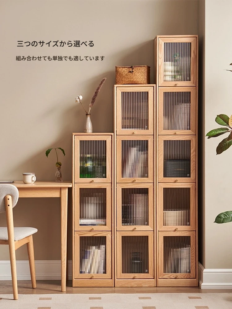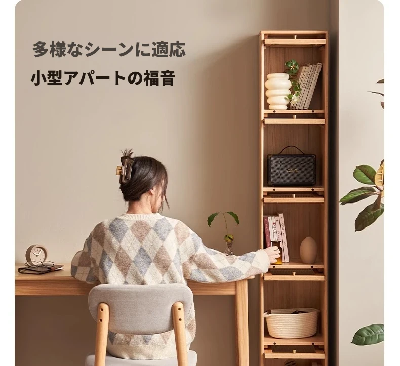 オリジナルエレメント 無垢材オーク製ナロー書棚コンビネーション サイドボード キャビネット スリム収納ボックス 省スペースの収納力でお部屋をスッキリ整頓!