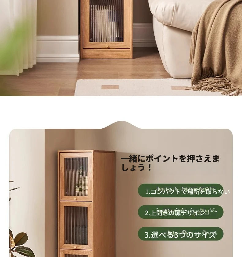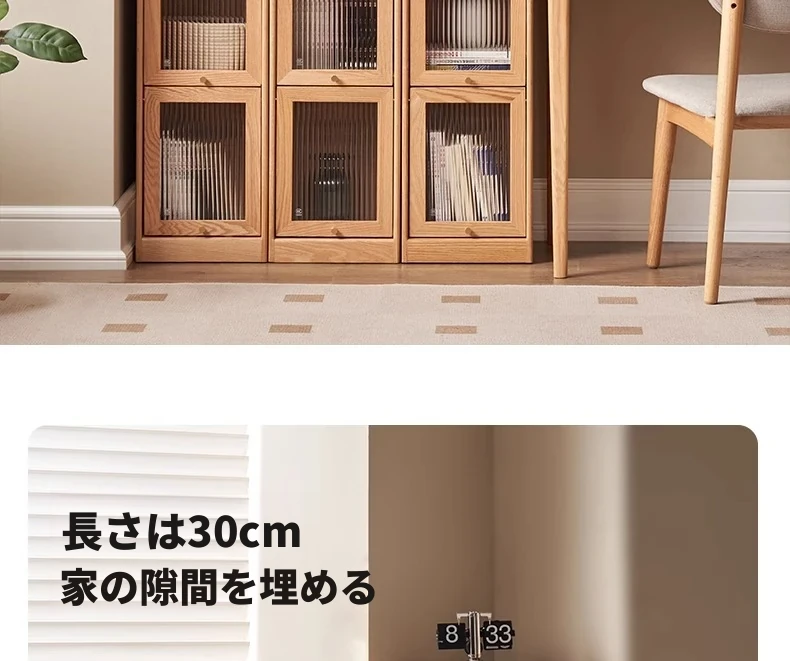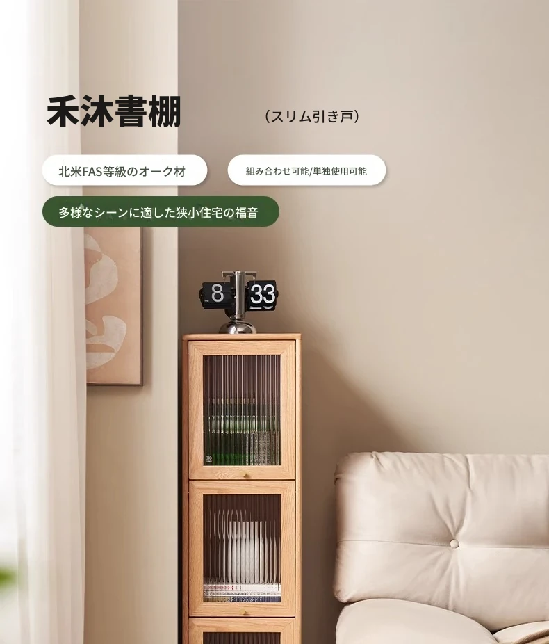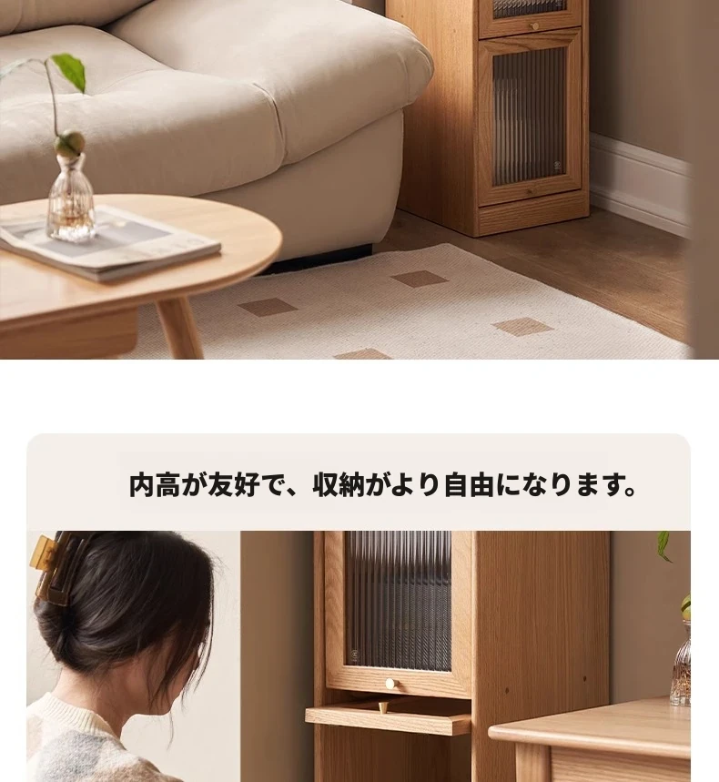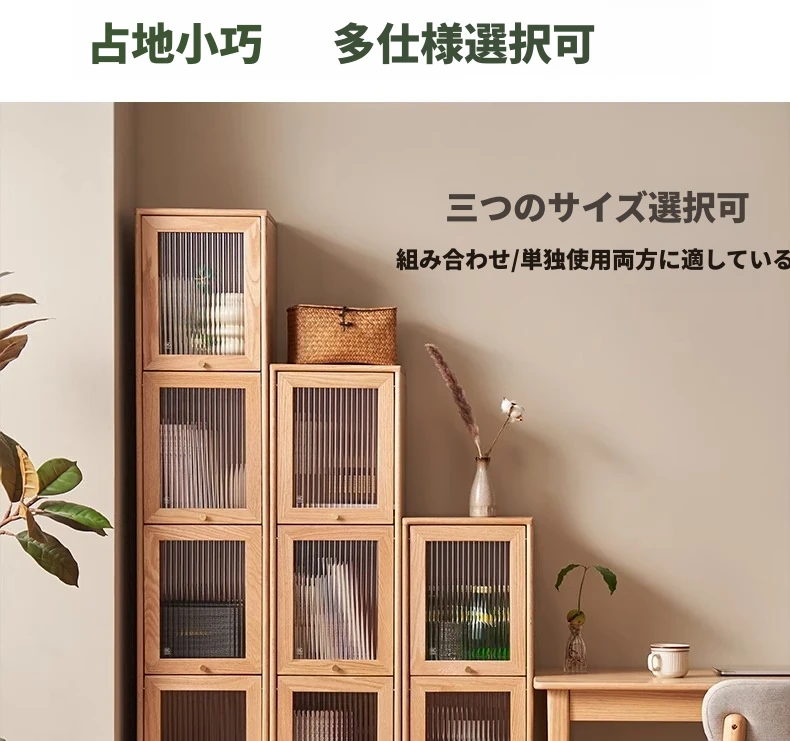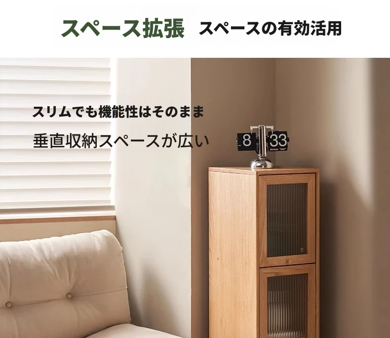 オリジナルエレメント 無垢材オーク製ナロー書棚コンビネーション サイドボード キャビネット スリム収納ボックス 省スペースの収納力でお部屋をスッキリ整頓!