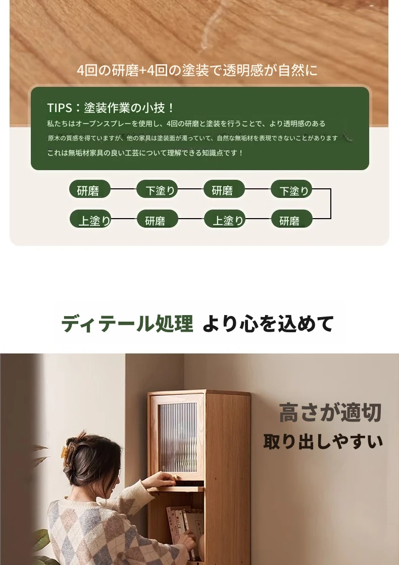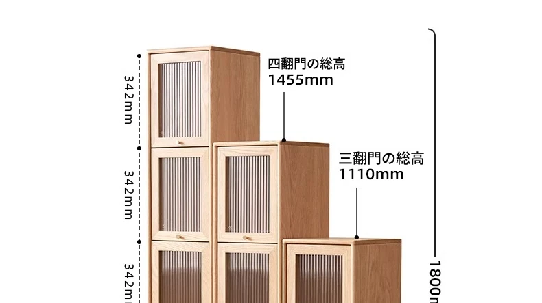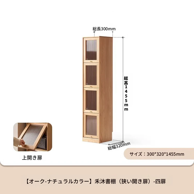 ナチュラルウッドカラー-0.3メートル幅の4扉書棚(300*320*1455mm)