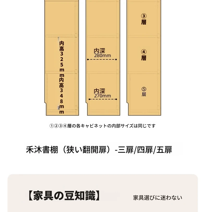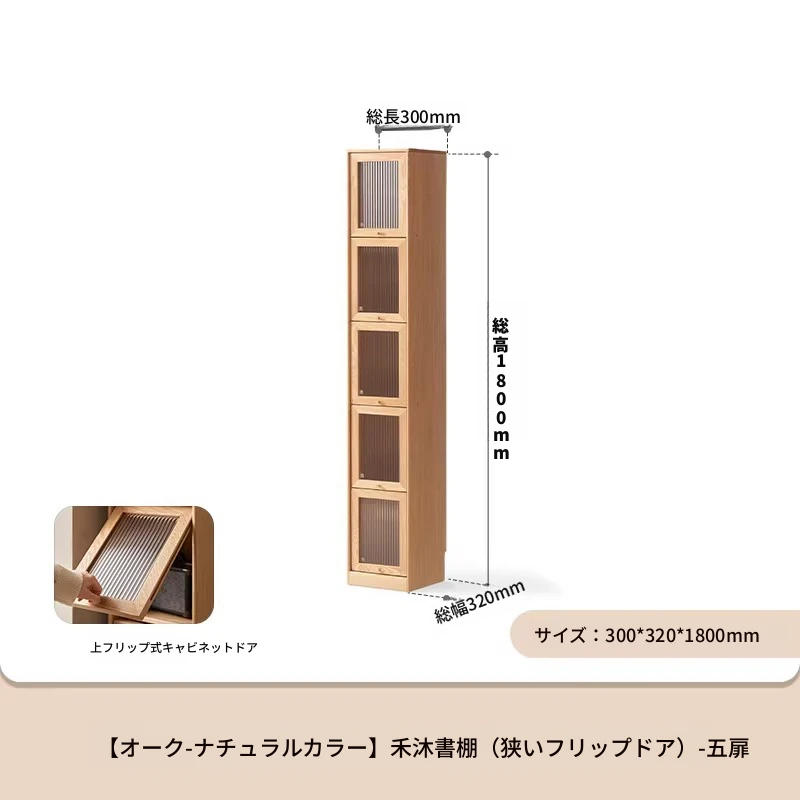 ナチュラルウッドカラー-0.3メートル幅の5扉書棚(300*320*1800mm)