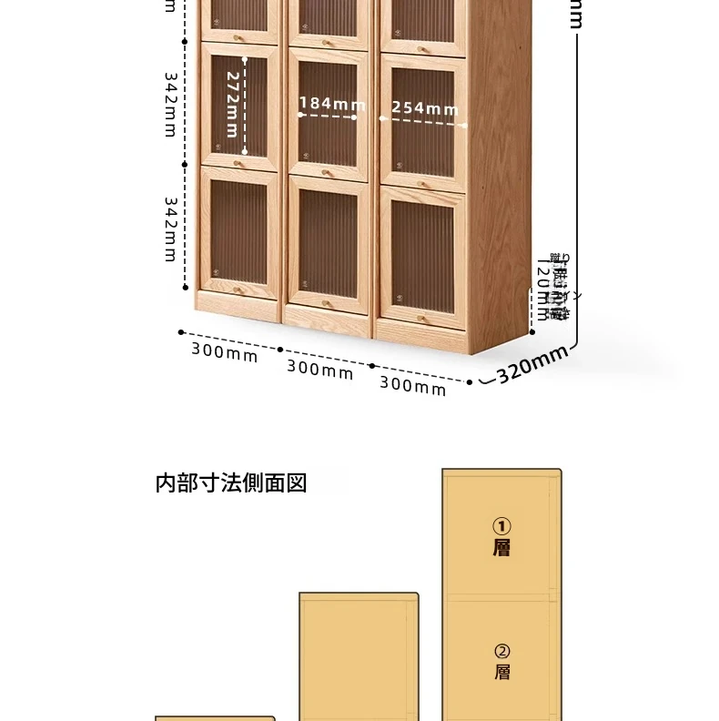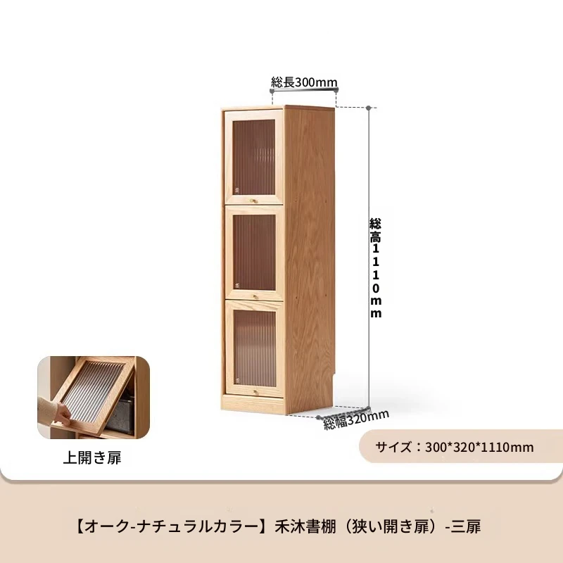 ナチュラルウッドカラー-0.3メートル幅の3扉書棚(300*320*1110mm)