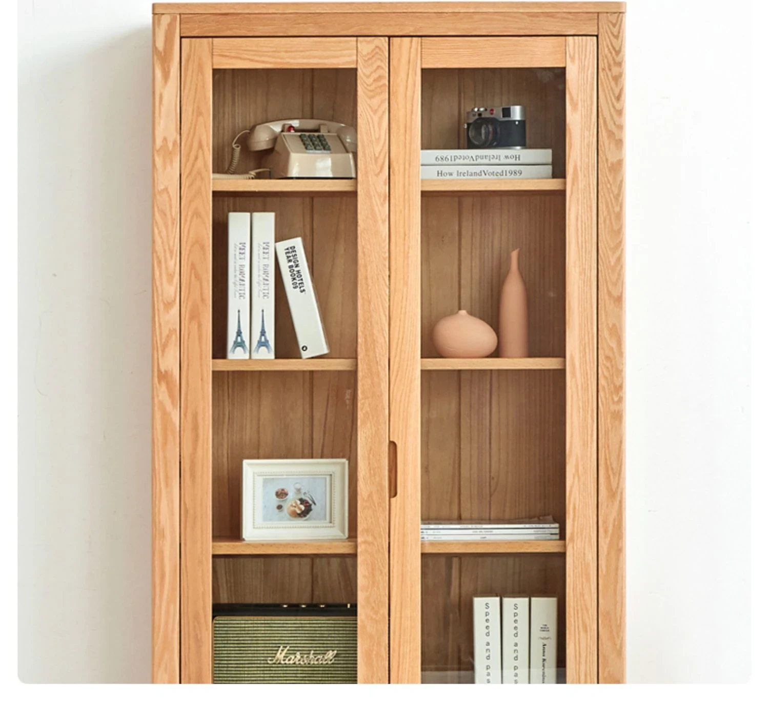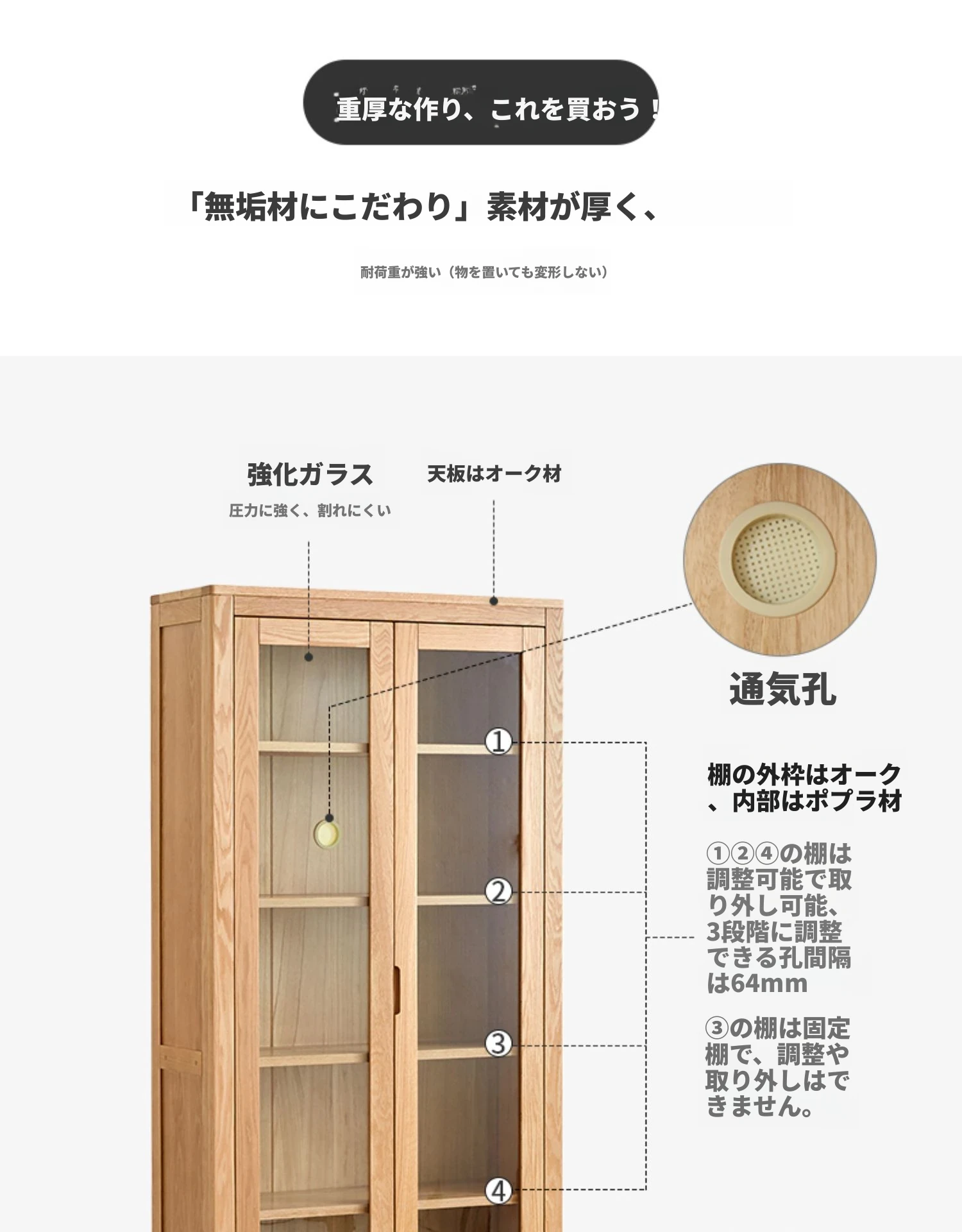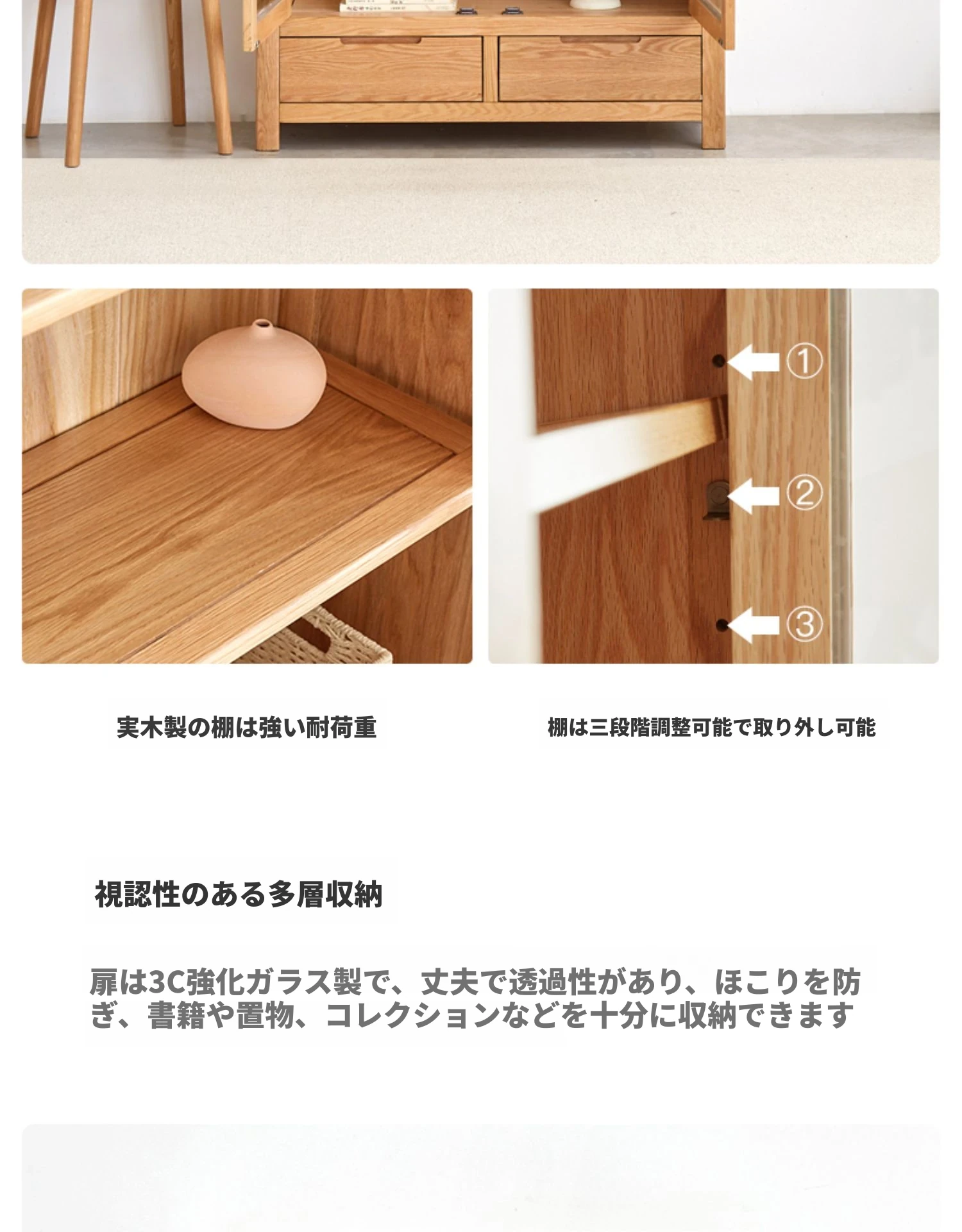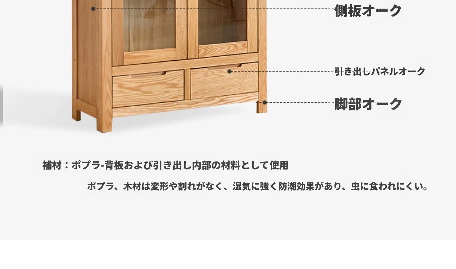 原材料にこだわった本格的無垢材製の書棚!北欧スタイルのオーク材とガラス扉で、シンプルで洗練された書斎に最適な展示キャビネット。あなたの本を美しく飾り、インテリアを引き立てます。