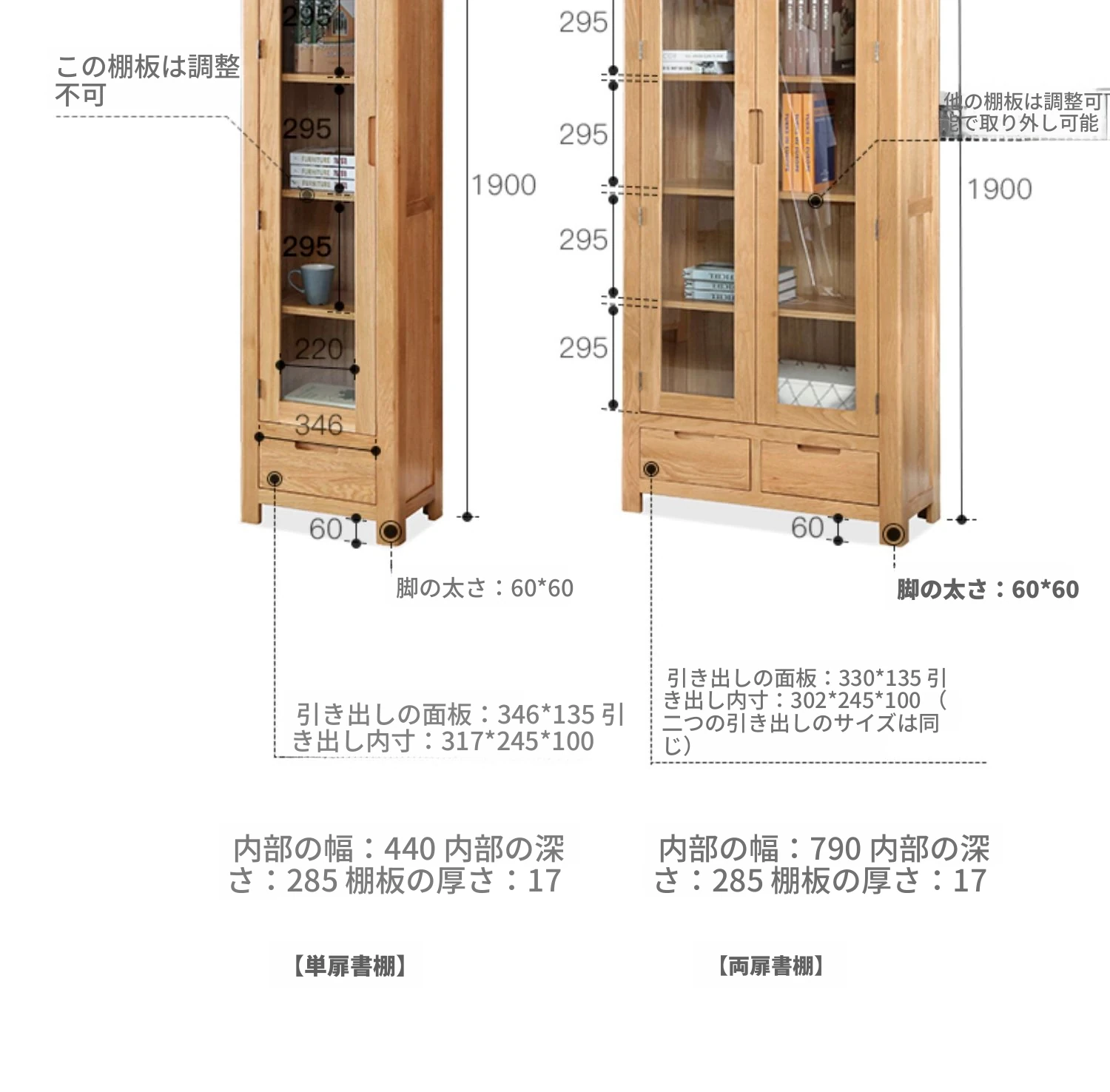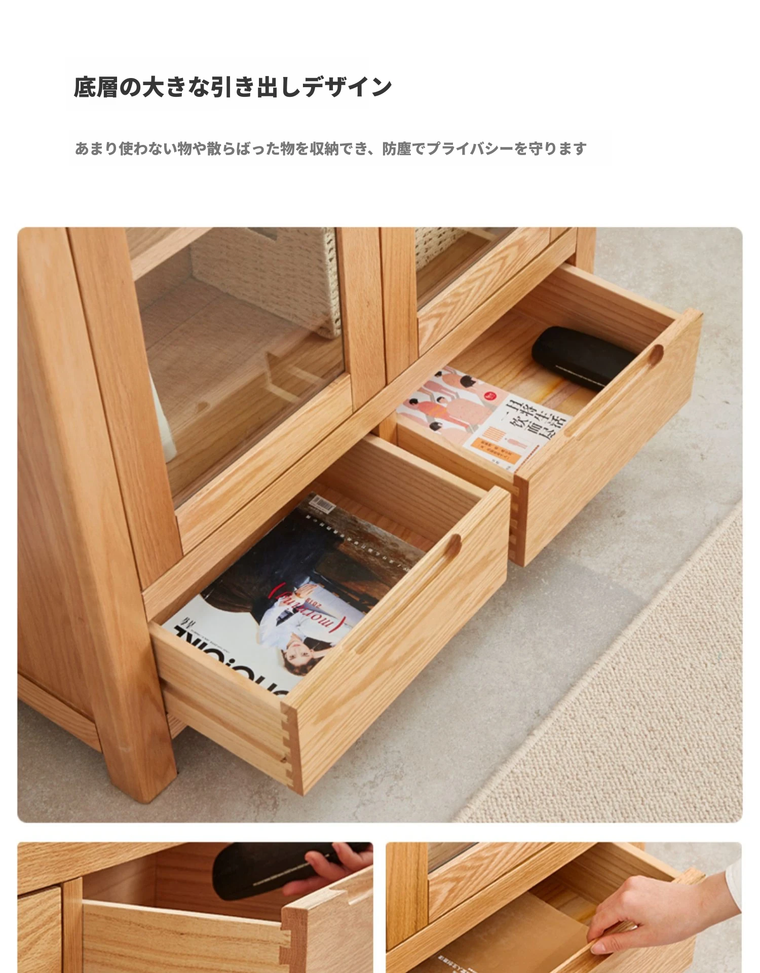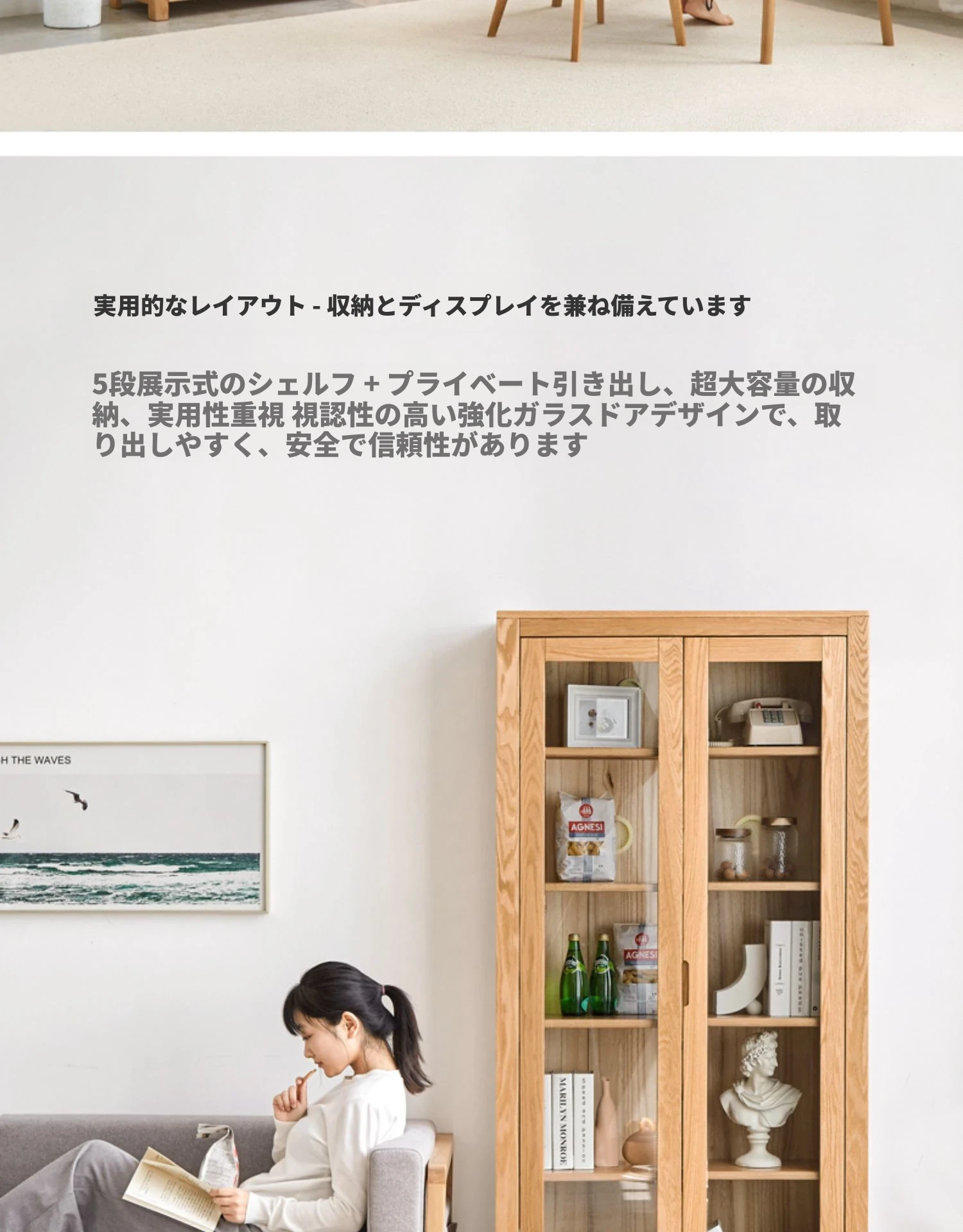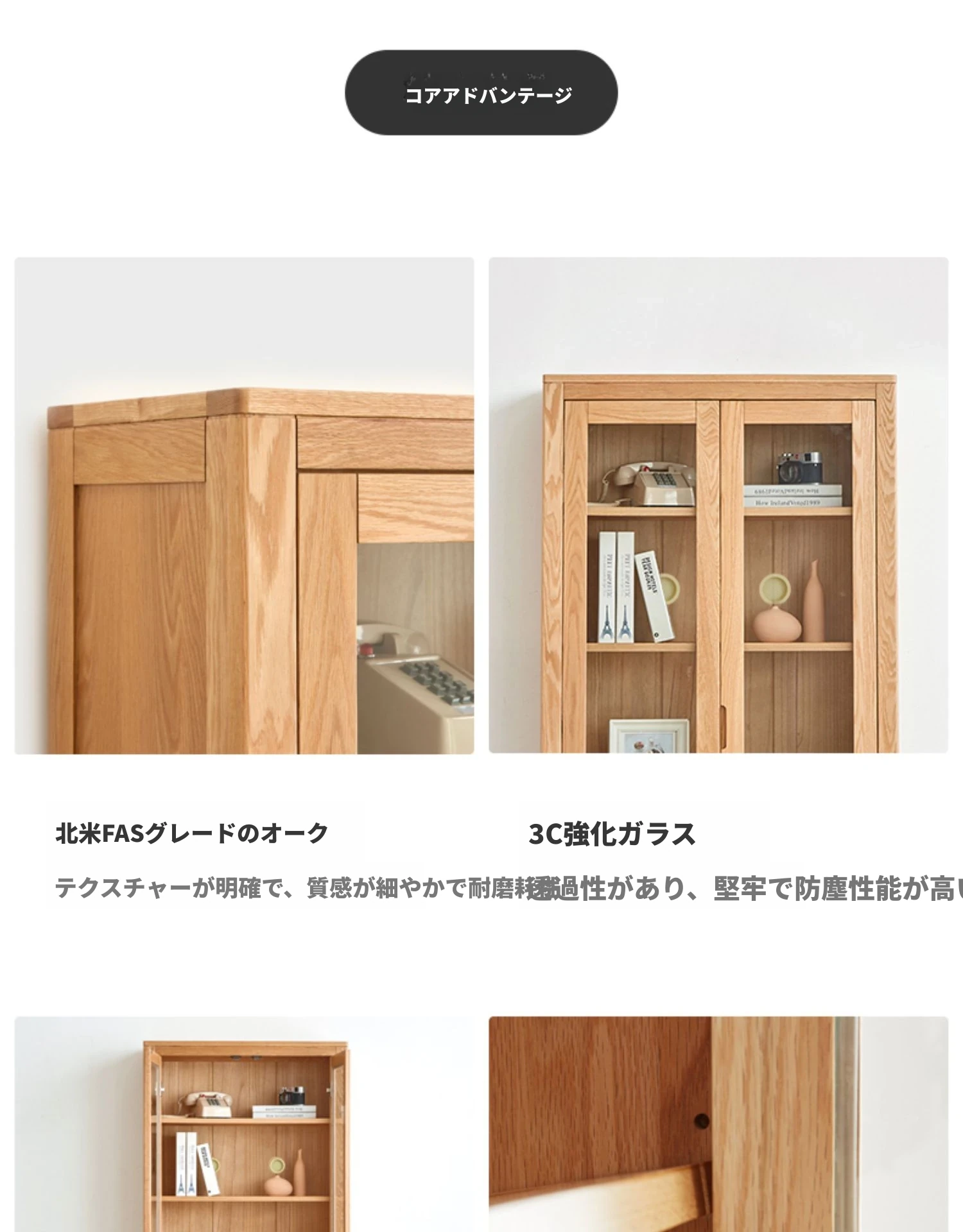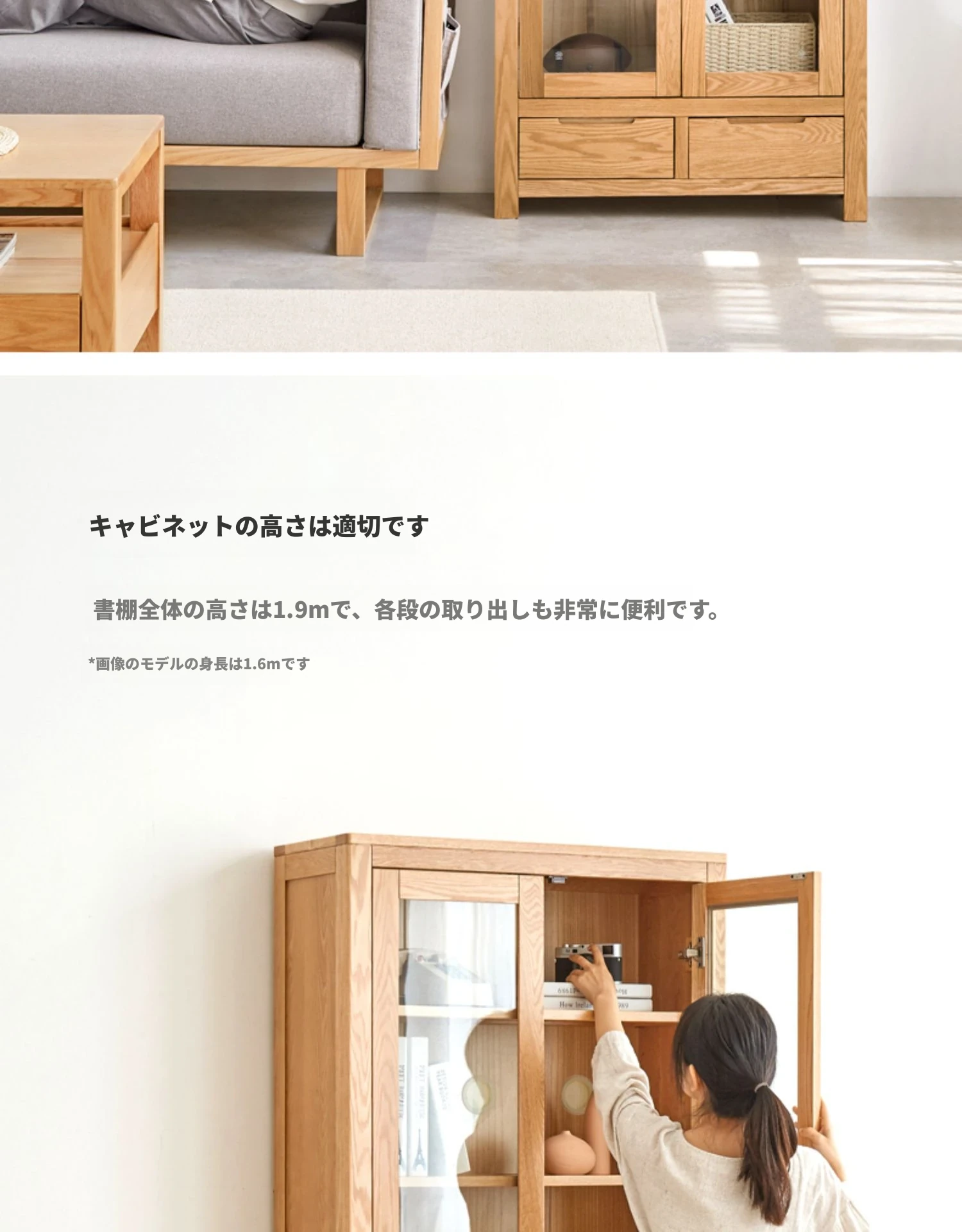 原材料にこだわった本格的無垢材製の書棚!北欧スタイルのオーク材とガラス扉で、シンプルで洗練された書斎に最適な展示キャビネット。あなたの本を美しく飾り、インテリアを引き立てます。