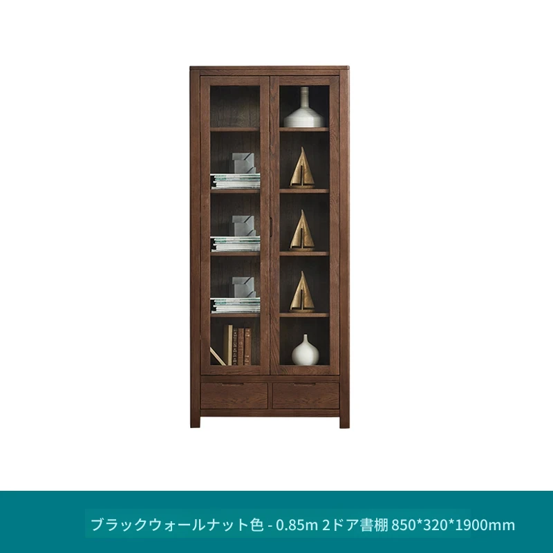 ブラックウッド色-0.85m二扉書棚