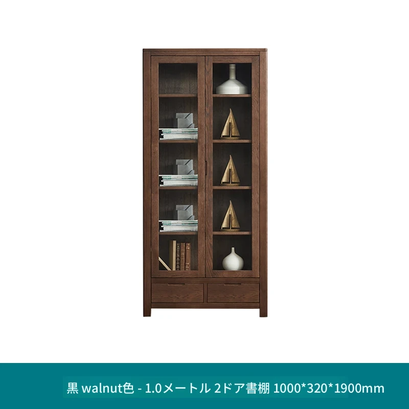 ブラックウッド色-1.0m二扉書棚