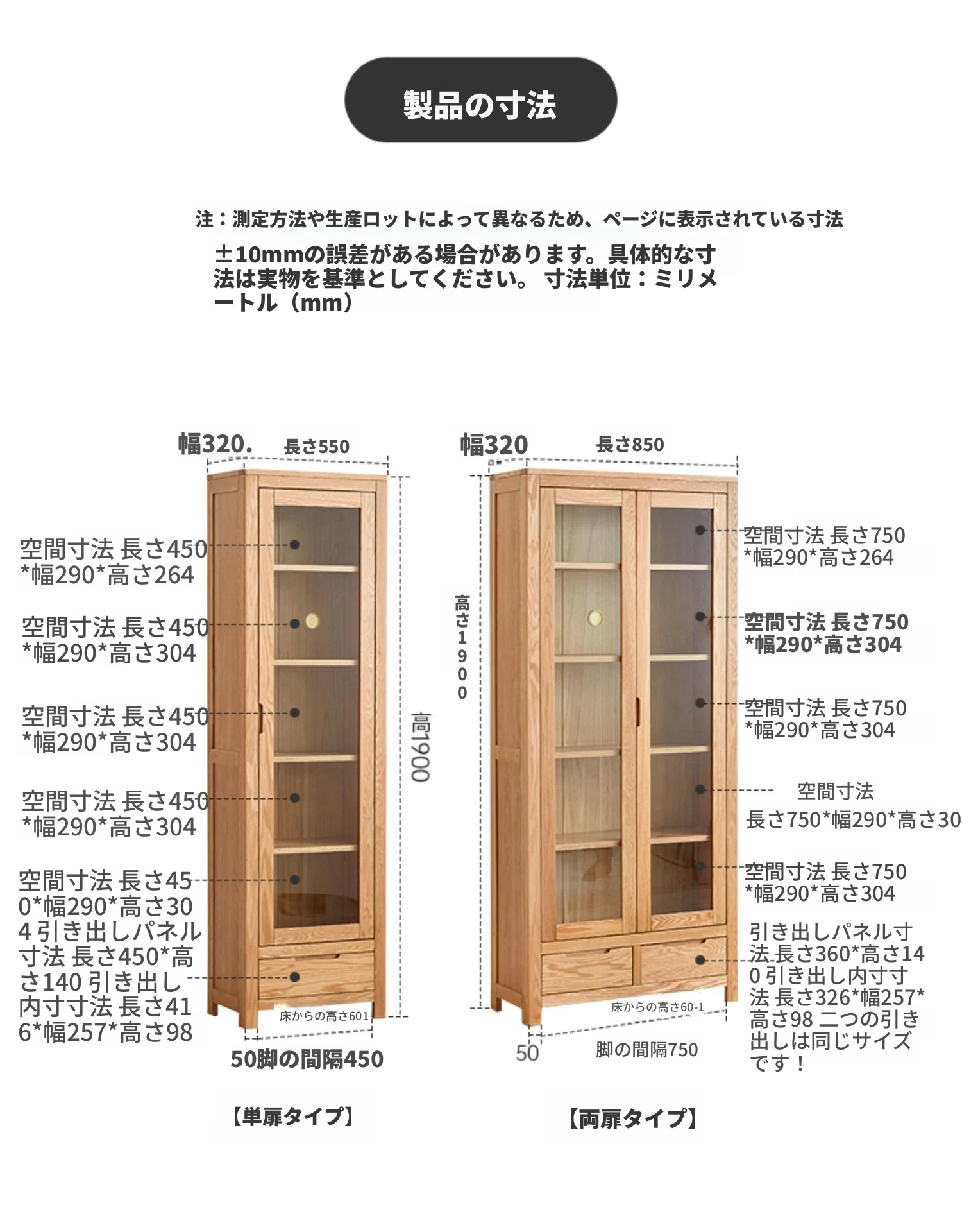 原木色-1.0m二扉書棚