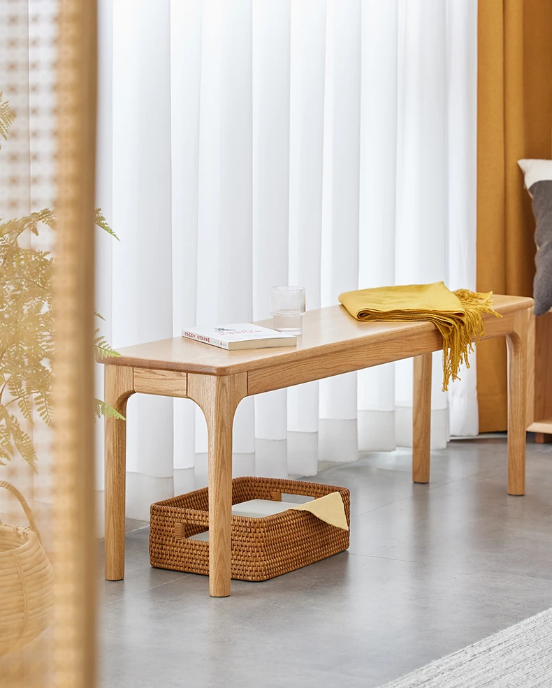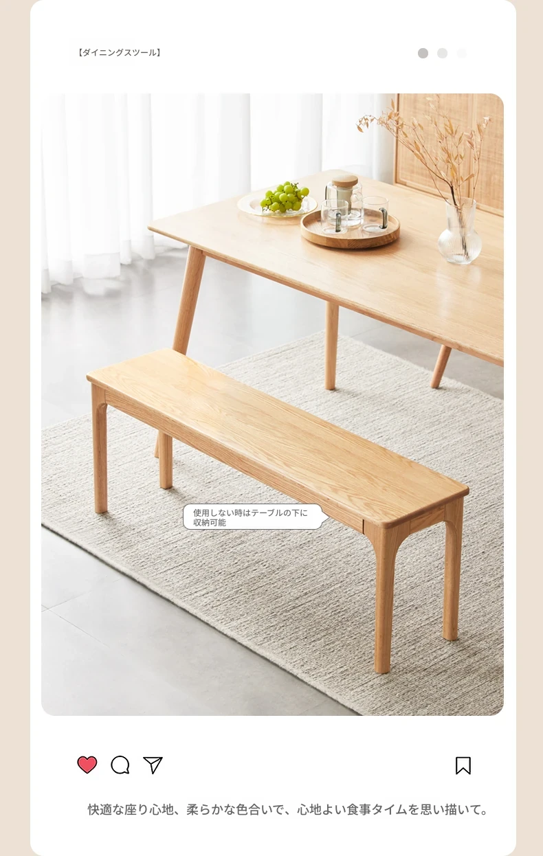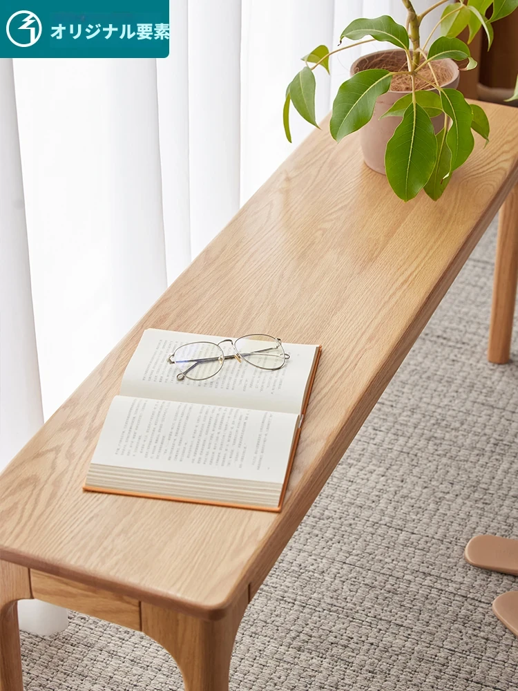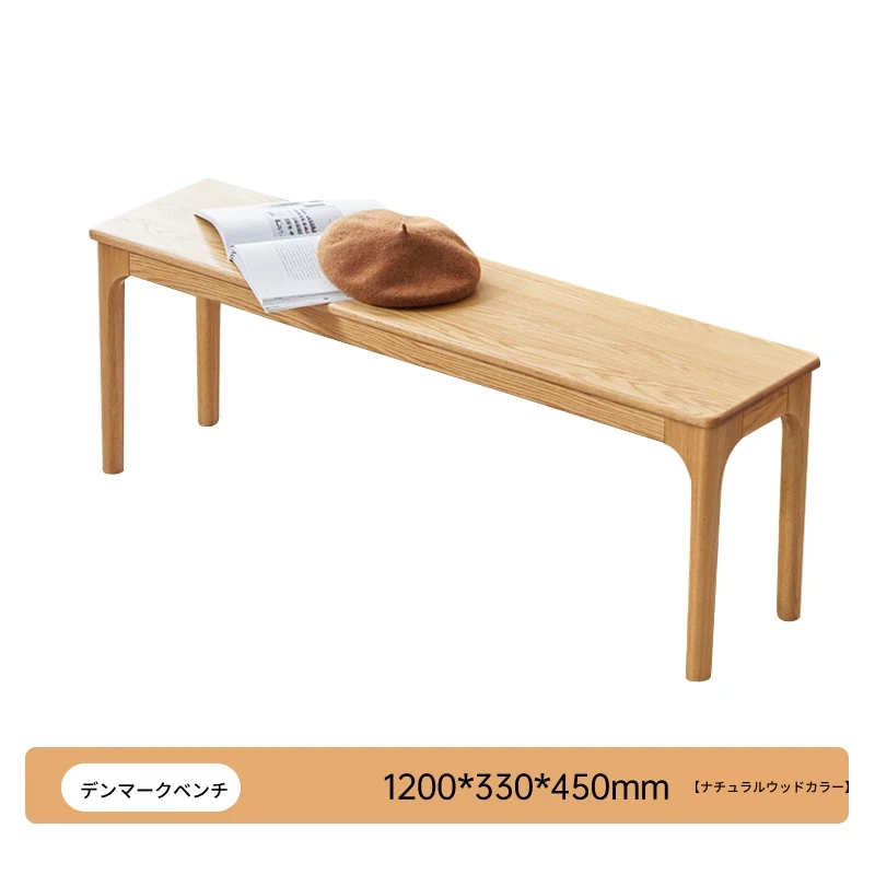 原木の本格的な全木製ロングベンチ - 北欧風デザイン、コンパクトな住まいに最適!オーク材を使用したシンプルでモダンなダイニングベンチ、ベッドサイドにもぴったり!
