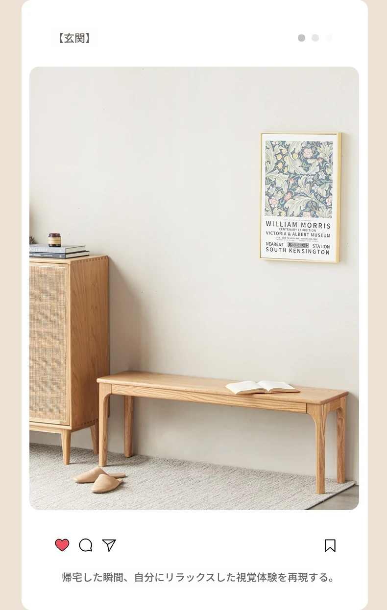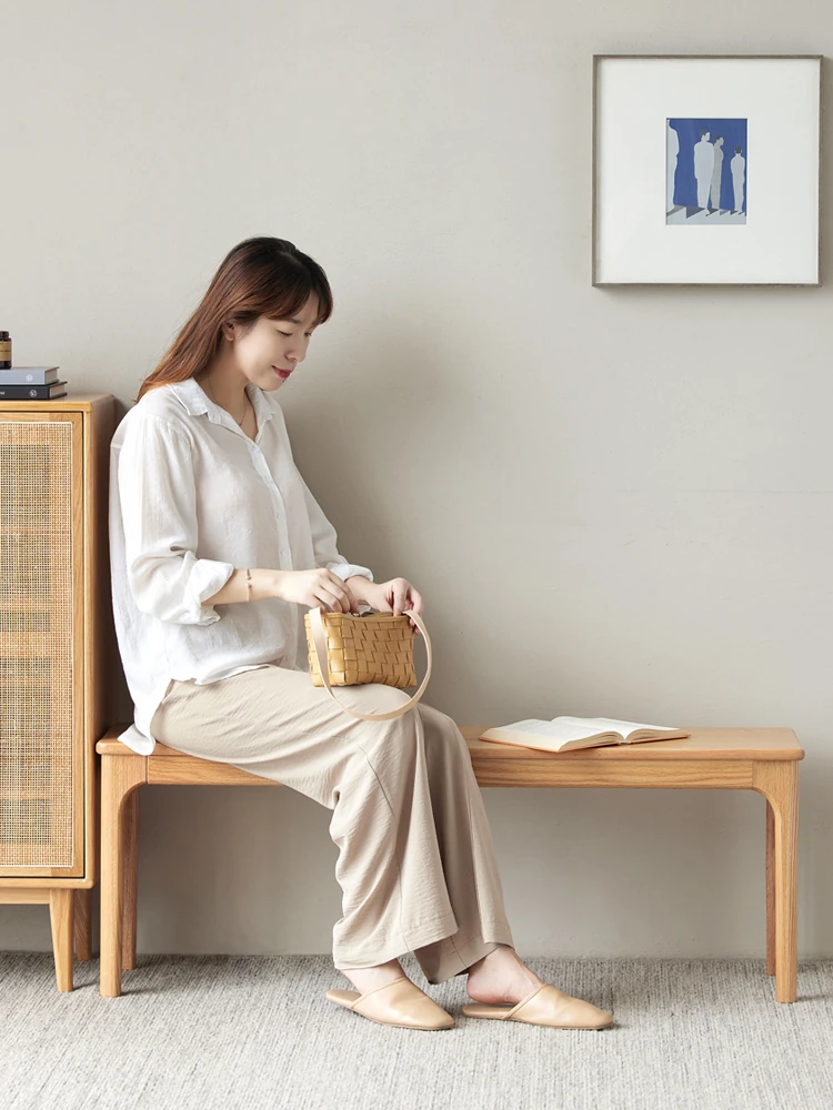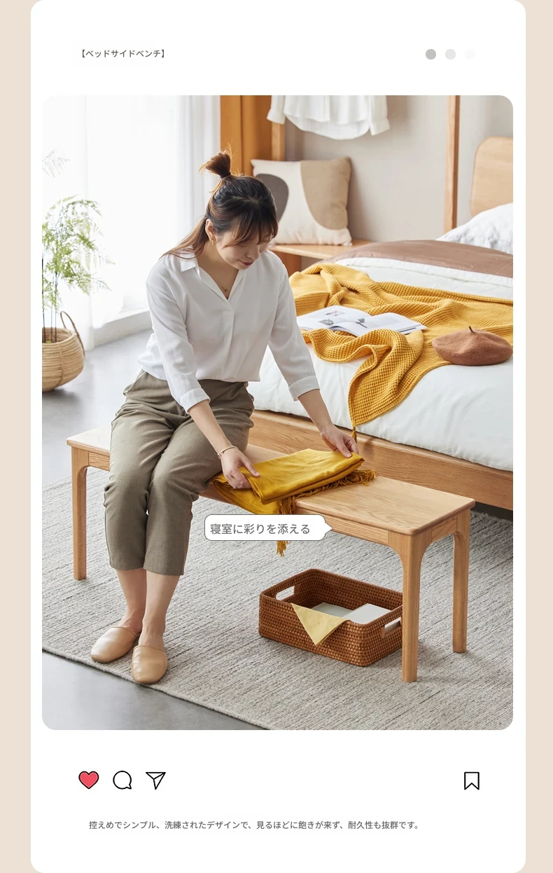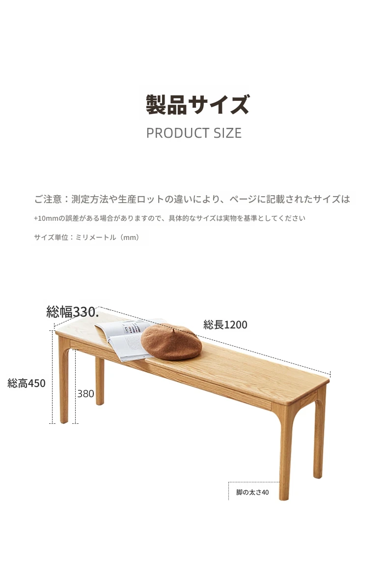 原木の本格的な全木製ロングベンチ - 北欧風デザイン、コンパクトな住まいに最適!オーク材を使用したシンプルでモダンなダイニングベンチ、ベッドサイドにもぴったり!