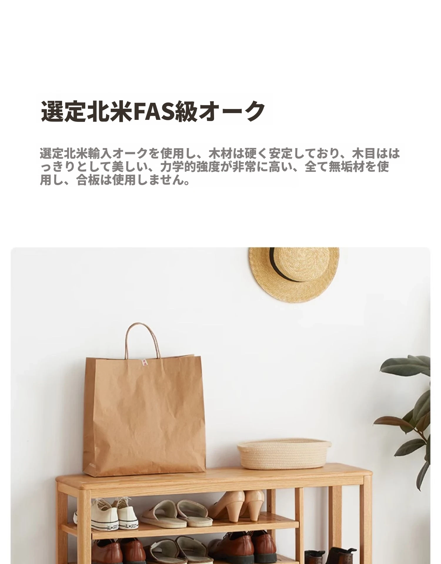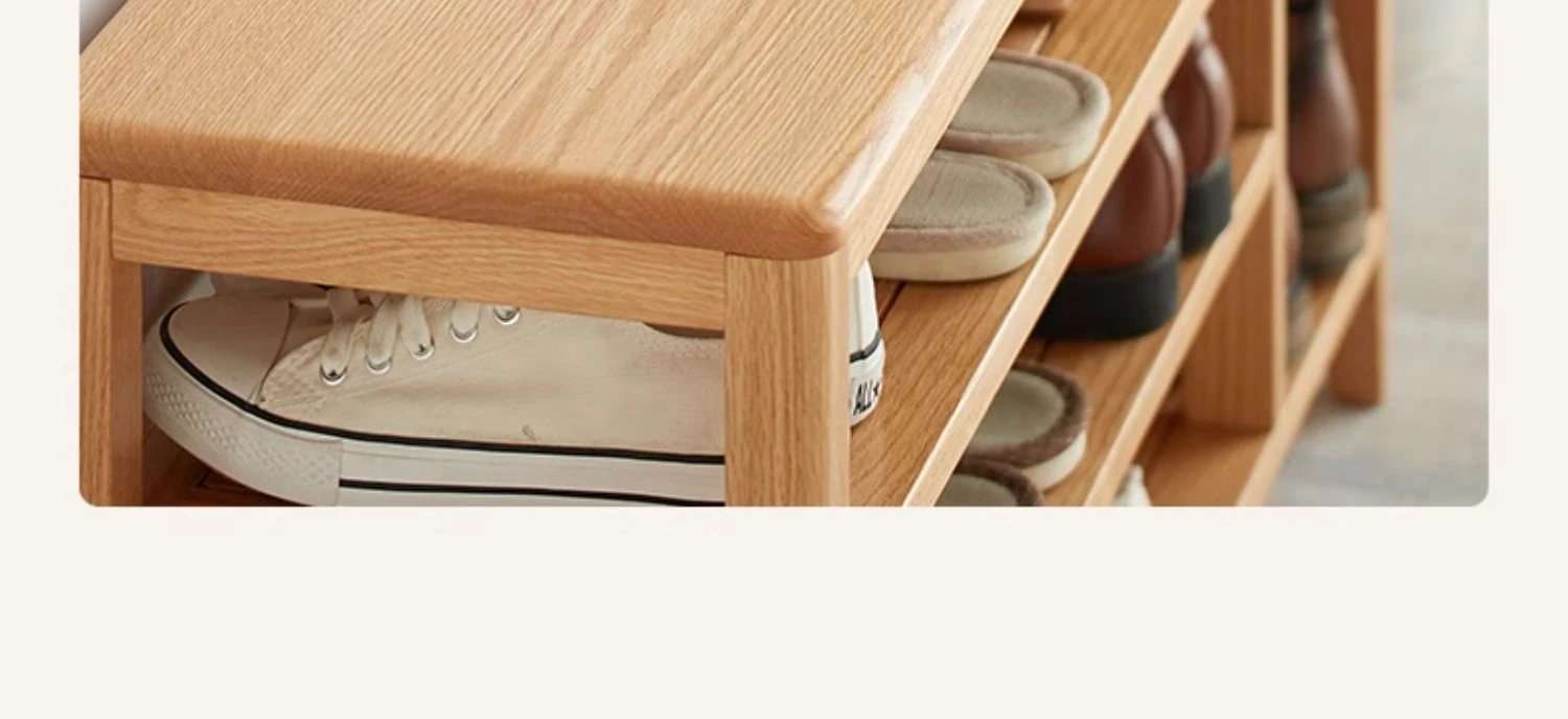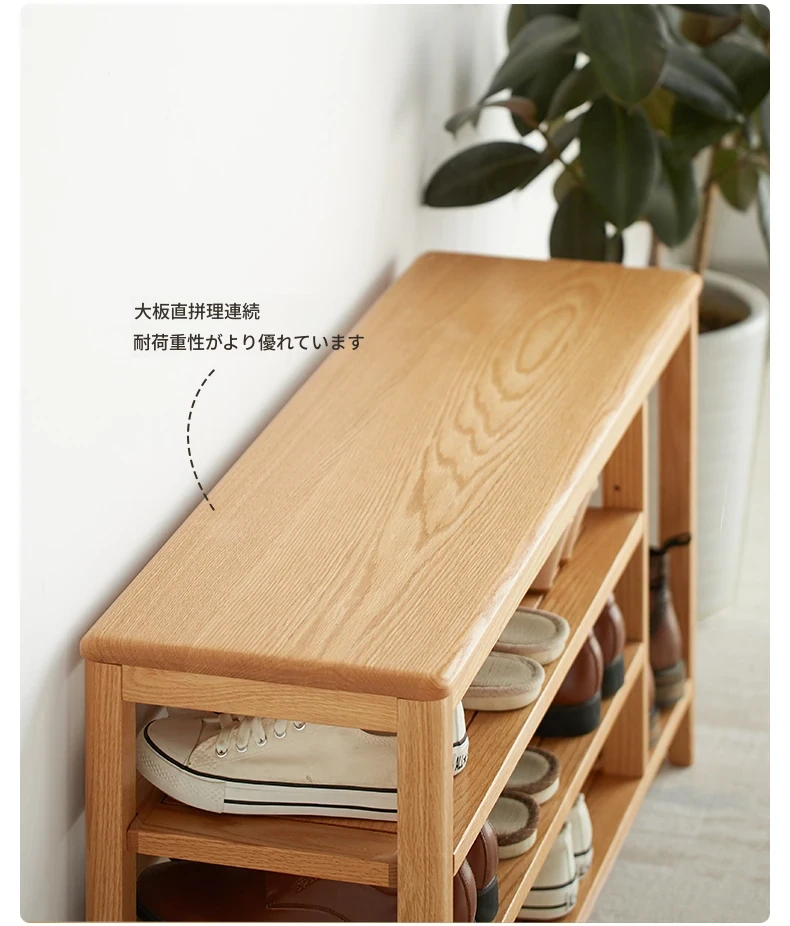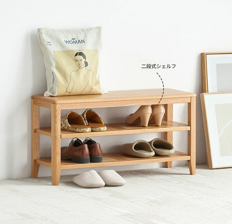 オリジナルエッセンス全木製シューズベンチ・北欧スタイル・オーク製のモダンでシンプルな収納スツール・玄関用シューズラックにも最適!おしゃれで実用的なデザインが魅力です!